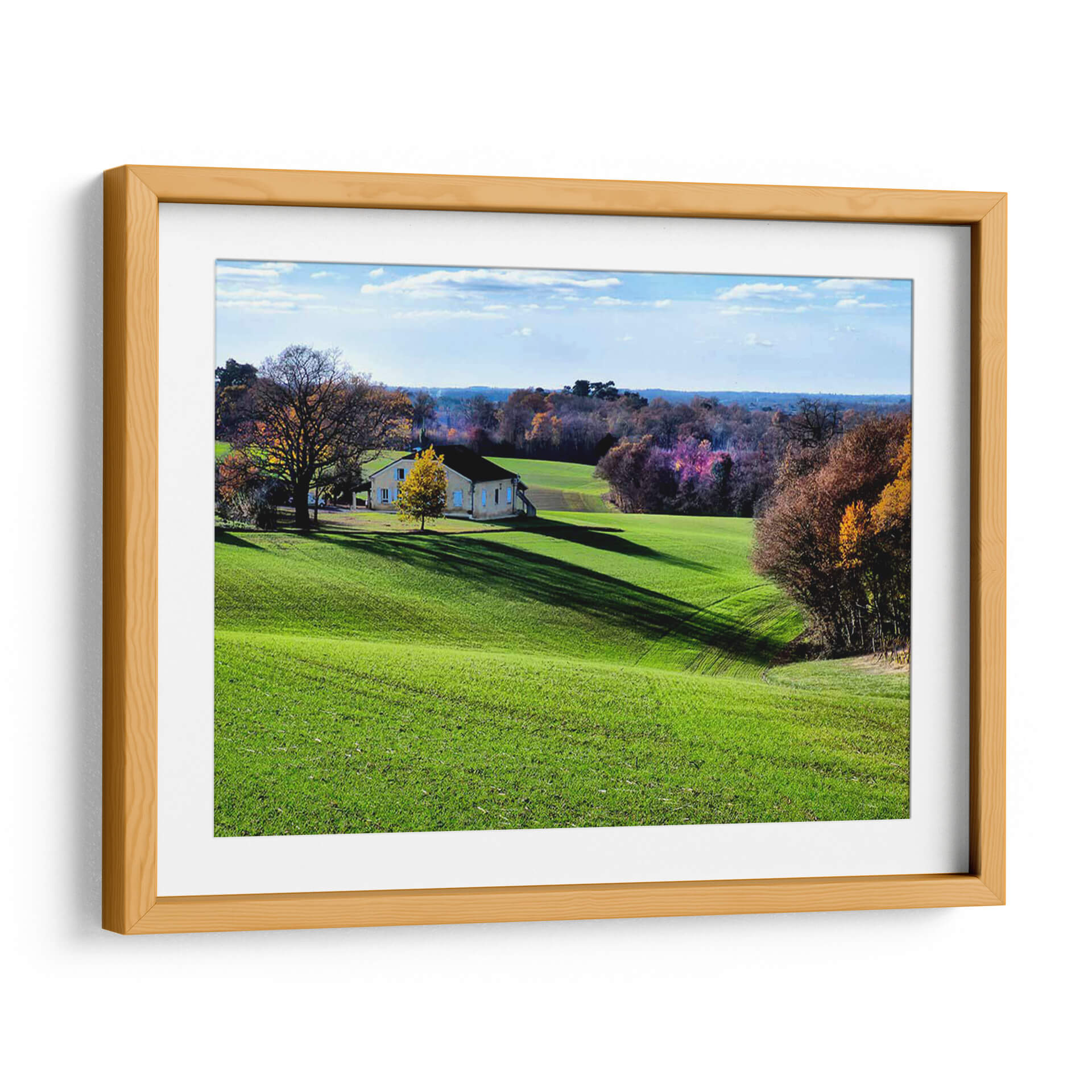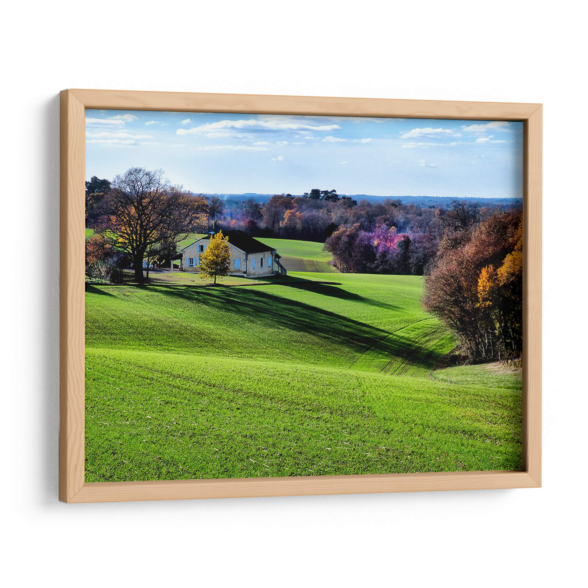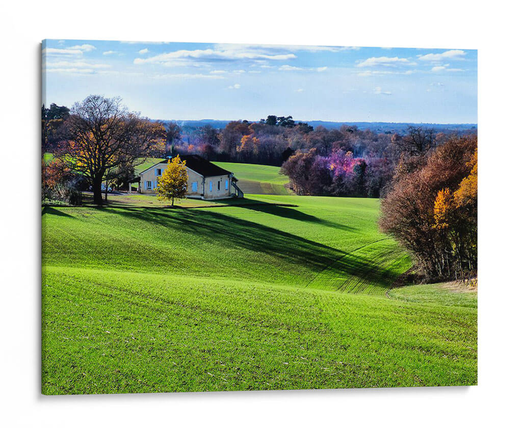 Sumérgete en la serenidad del 'Campo Pastoral XV', una obra de arte que captura la esencia de un idílico paisaje rural. Este cuadro decorativo te transporta a un rincón tranquilo de la naturaleza, donde una acogedora casa se alza entre ondulantes colinas de un verde vibrante. Los árboles, algunos cubiertos de hojas otoñales en tonos cálidos de marrón y naranja, otros aún verdes y frondosos, crean un contraste dinámico con el cielo azul salpicado de nubes blancas. Las sombras alargadas proyectadas sobre la hierba añaden profundidad y un sentido de quietud a la escena. La paleta de colores, dominada por el verde intenso del prado y los tonos terrosos y ocres del follaje y la edificación, evoca una sensación de paz y conexión con la tierra. El estilo pictórico, con un tratamiento detallado pero a la vez atmosférico, permite apreciar la belleza sutil del entorno. 'Campo Pastoral XV' es perfecto para añadir un toque de calma y naturaleza a tu sala de estar, dormitorio u oficina, creando un oasis de tranquilidad en tu hogar. Una pieza que invita a la contemplación y al disfrute de la vida campestre.