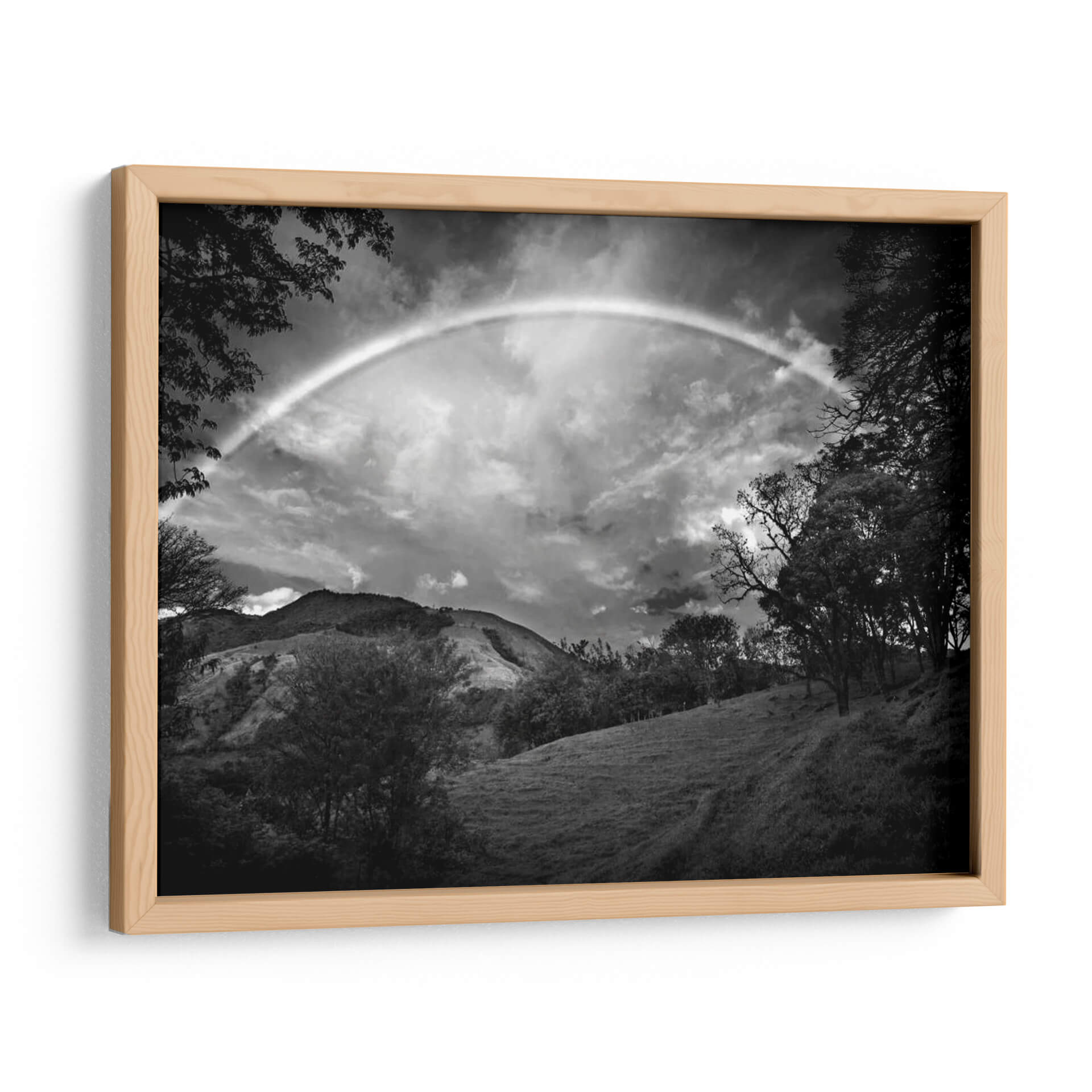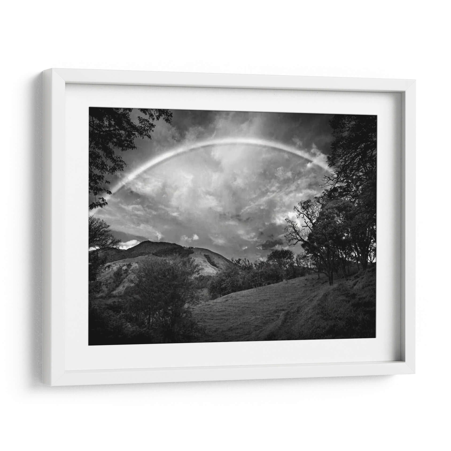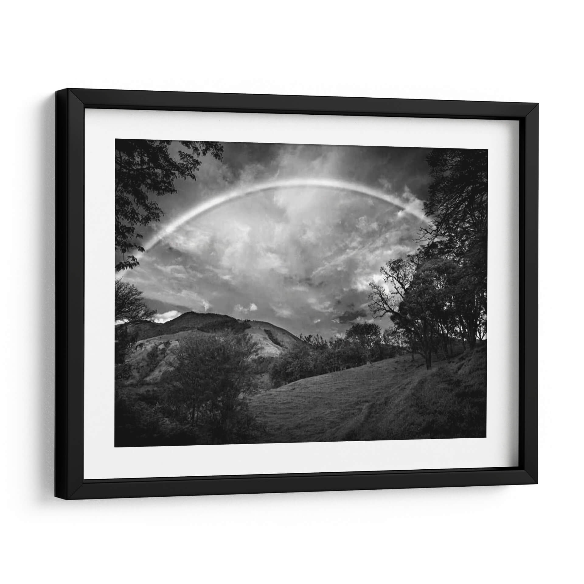 Sumérgete en la serenidad de la naturaleza con "Campo Verde Con Arco Iris", una obra maestra en blanco y negro del aclamado artista Nish Nalbandian. Esta impresionante pieza captura la fugaz belleza de un arcoíris que se cierne sobre un paisaje ondulado, enmarcado por la silueta dramática de árboles frondosos. La fotografía, convertida en un cuadro decorativo de alta calidad, evoca una sensación de asombro y tranquilidad, invitando a la contemplación. Los tonos de grises, desde las sombras profundas de la arboleda hasta las nubes cargadas de luz, crean una atmósfera etérea y profunda. Ideal para espacios que buscan un toque de magia natural y sofisticación, como una sala de estar moderna, un estudio tranquilo o un dormitorio acogedor. "Campo Verde Con Arco Iris" no es solo una imagen, es una ventana a un momento efímero de esplendor natural, transformado en arte para inspirar y calmar. Añade esta pieza única a tu colección y deja que su belleza atemporal eleve la decoración de tu hogar.