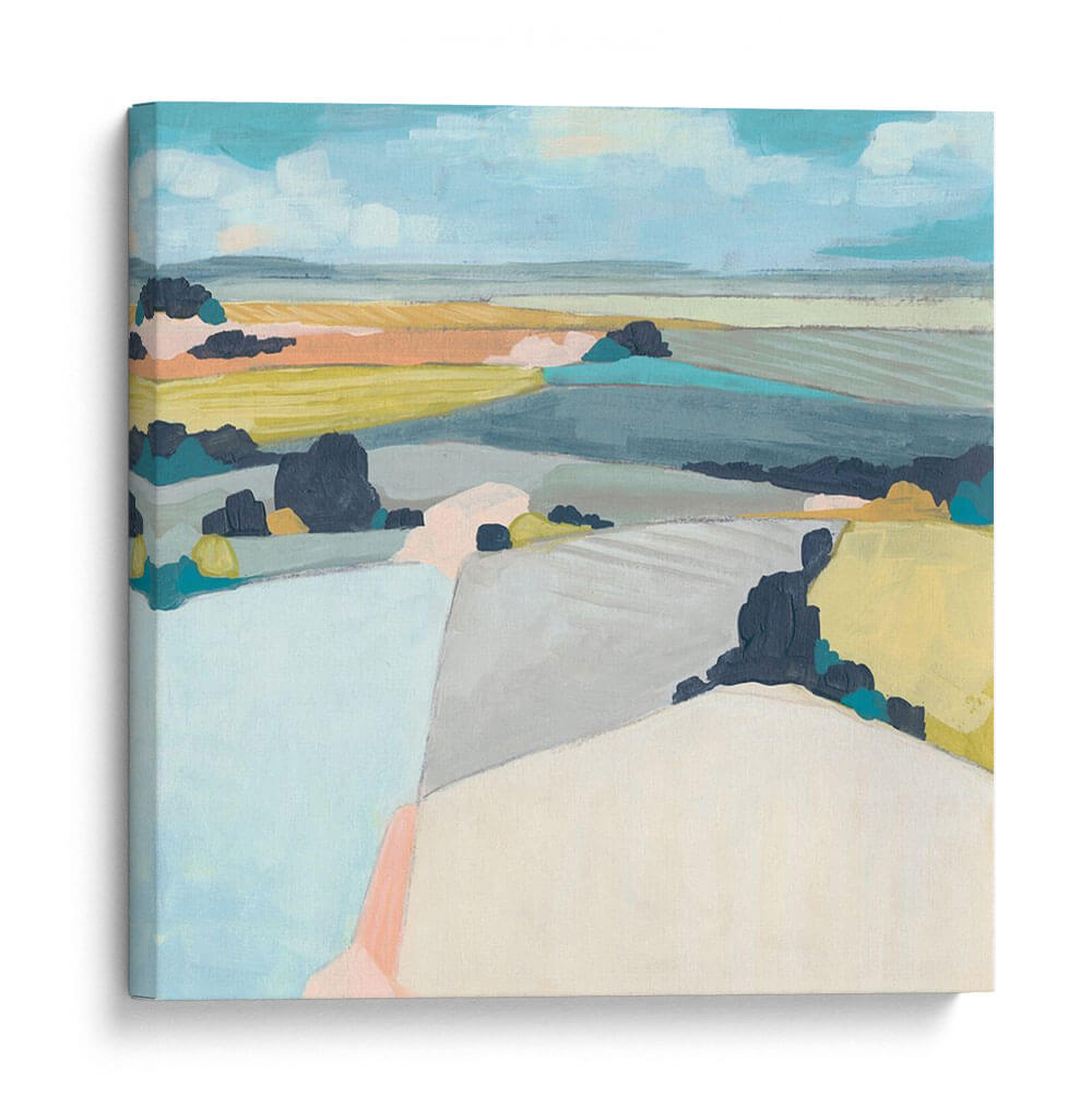 Sumérgete en la serenidad de "Campos Cromáticos I", una obra de arte abstracta que captura la esencia de un paisaje estilizado con una paleta de colores vibrante pero armoniosa. Junio Erica Vess nos presenta un lienzo donde las formas geométricas se entrelazan con pinceladas audaces, evocando la sensación de un campo abierto bajo un cielo nublado y expansivo. Los tonos pastel y terrosos se combinan con toques de azul turquesa y verde profundo, creando una atmósfera de calma y contemplación. Cada sección de color, delimitada con precisión, sugiere la profundidad y la textura de la tierra, invitando al espectador a perderse en sus matices. Este cuadro decorativo es perfecto para añadir un punto focal de tranquilidad y sofisticación a cualquier sala de estar, dormitorio u oficina. Su estilo moderno y abstracto lo convierte en una pieza versátil, capaz de complementar tanto decoraciones contemporáneas como rústicas, aportando una nota de color y arte que inspira paz y bienestar. "Campos Cromáticos I" es más que una simple decoración; es una ventana a un mundo de color y forma, una invitación a la reflexión y al disfrute del arte en su máxima expresión.