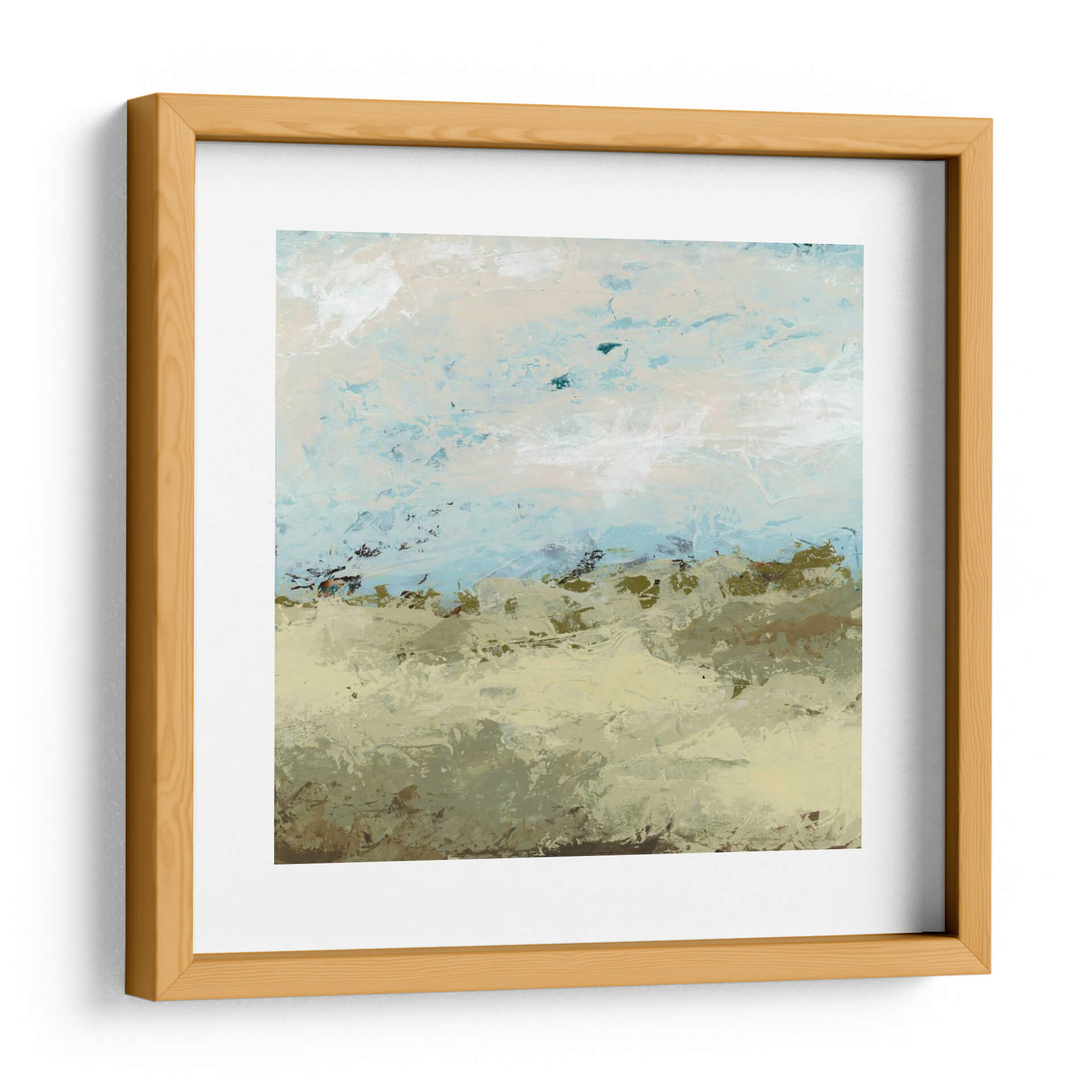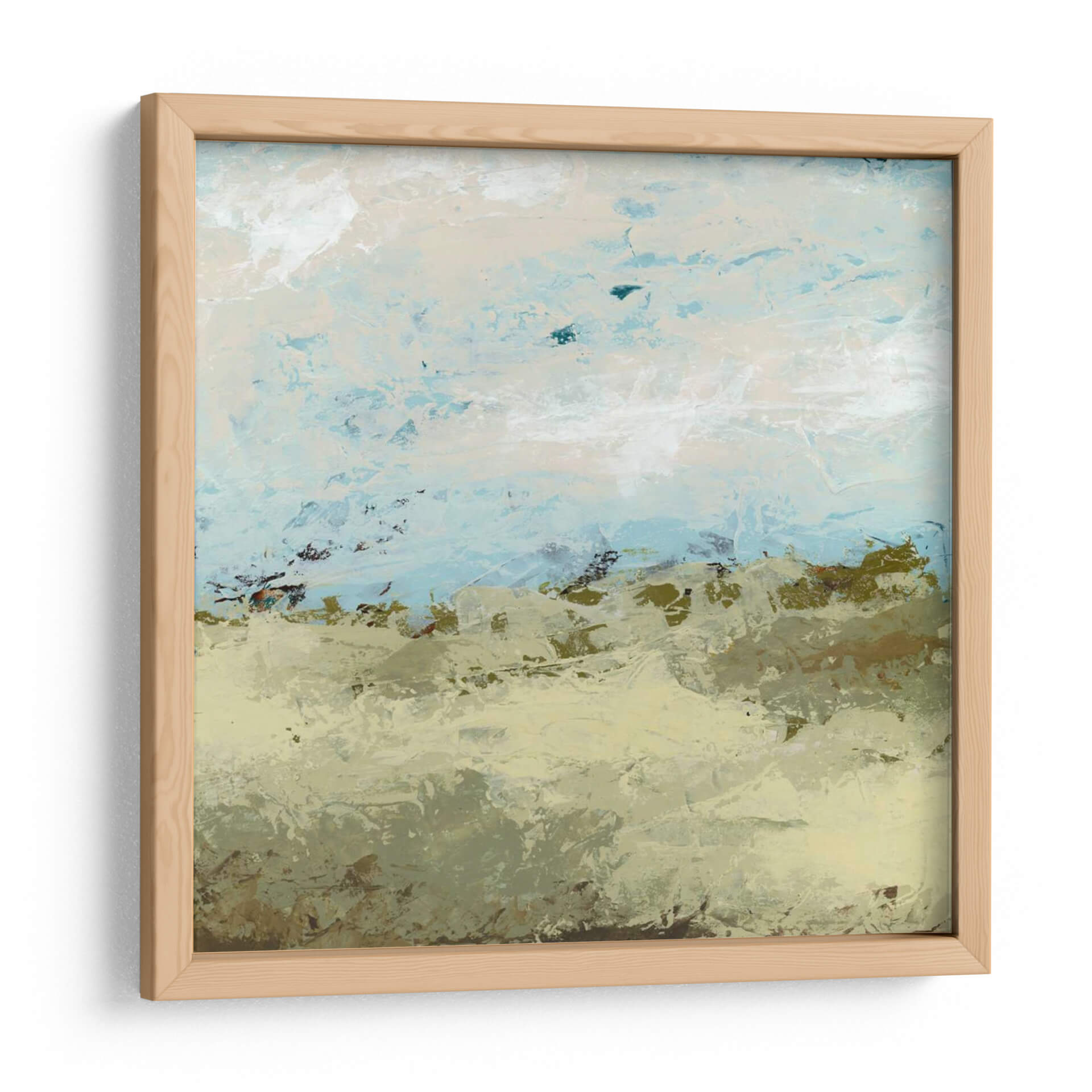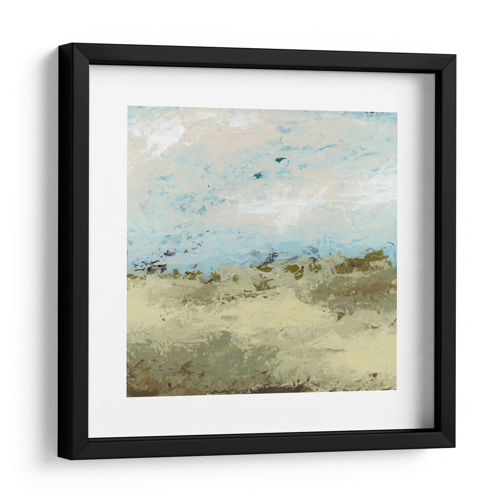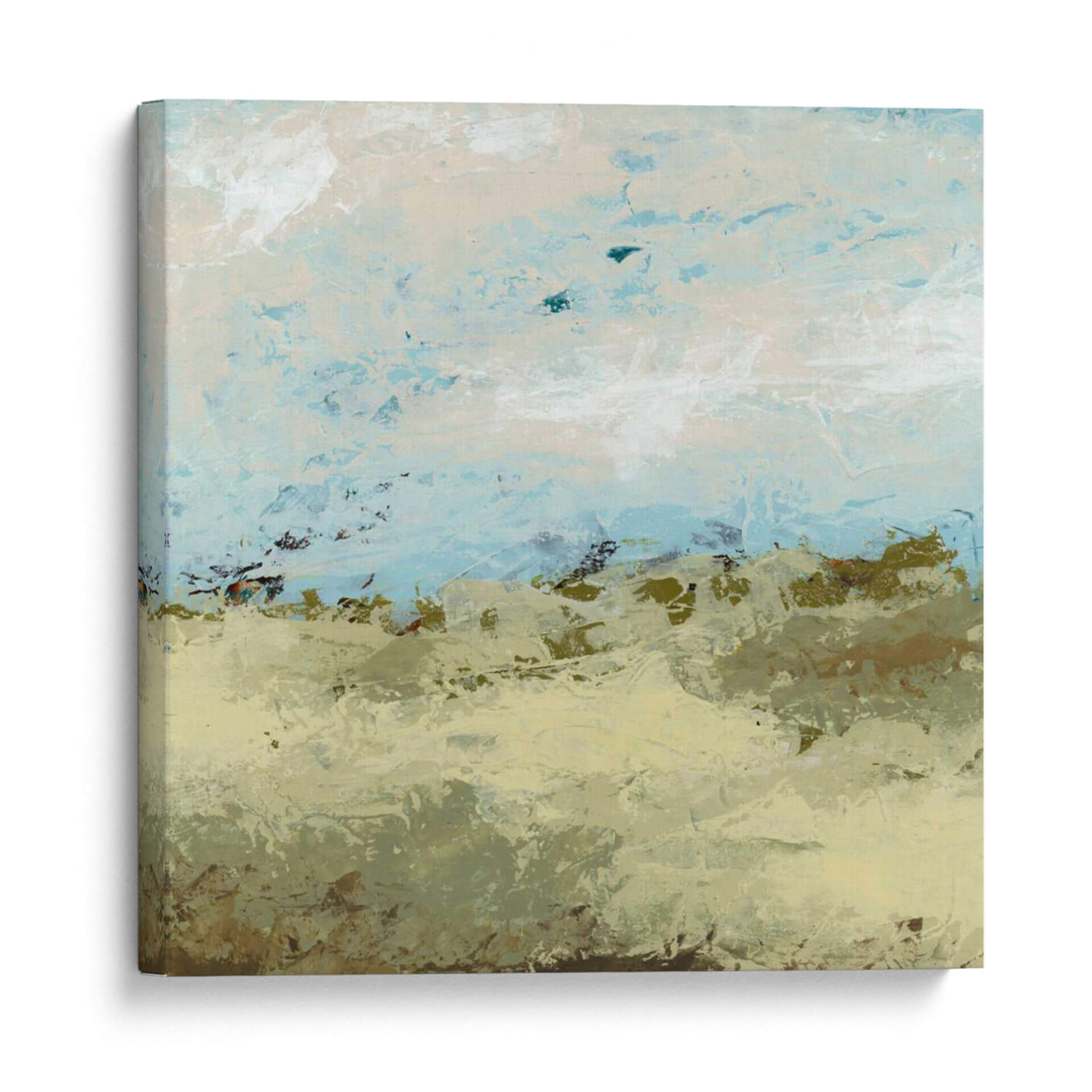 Sumérgete en la serenidad de "Campos Verdes II", una obra de arte contemporáneo que evoca la tranquilidad de un paisaje etéreo. La artista June Erica Vess crea una atmósfera pacífica a través de una paleta de colores suaves dominada por tonos tierra, verdes musgo y delicados azules celestes. Las pinceladas texturizadas y abstractas sugieren la vastedad de un campo abierto bajo un cielo expansivo, invitando a la contemplación y al descanso visual. Este cuadro decorativo es perfecto para infundir calma y naturalidad en cualquier espacio, desde un dormitorio acogedor hasta una sala de estar moderna o una oficina que busca un toque de serenidad. Su estilo abstracto pero evocador lo convierte en una pieza versátil que complementa una variedad de decoraciones interiores, añadiendo profundidad y una sensación de conexión con la naturaleza sin ser explícitamente figurativo. "Campos Verdes II" no es solo una imagen, es una invitación a desconectar y encontrar paz en tu propio hogar, convirtiéndose en un punto focal que respira tranquilidad y sofisticación.