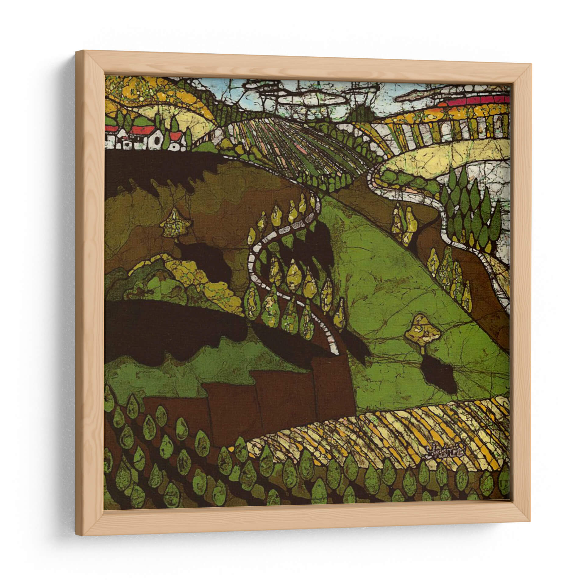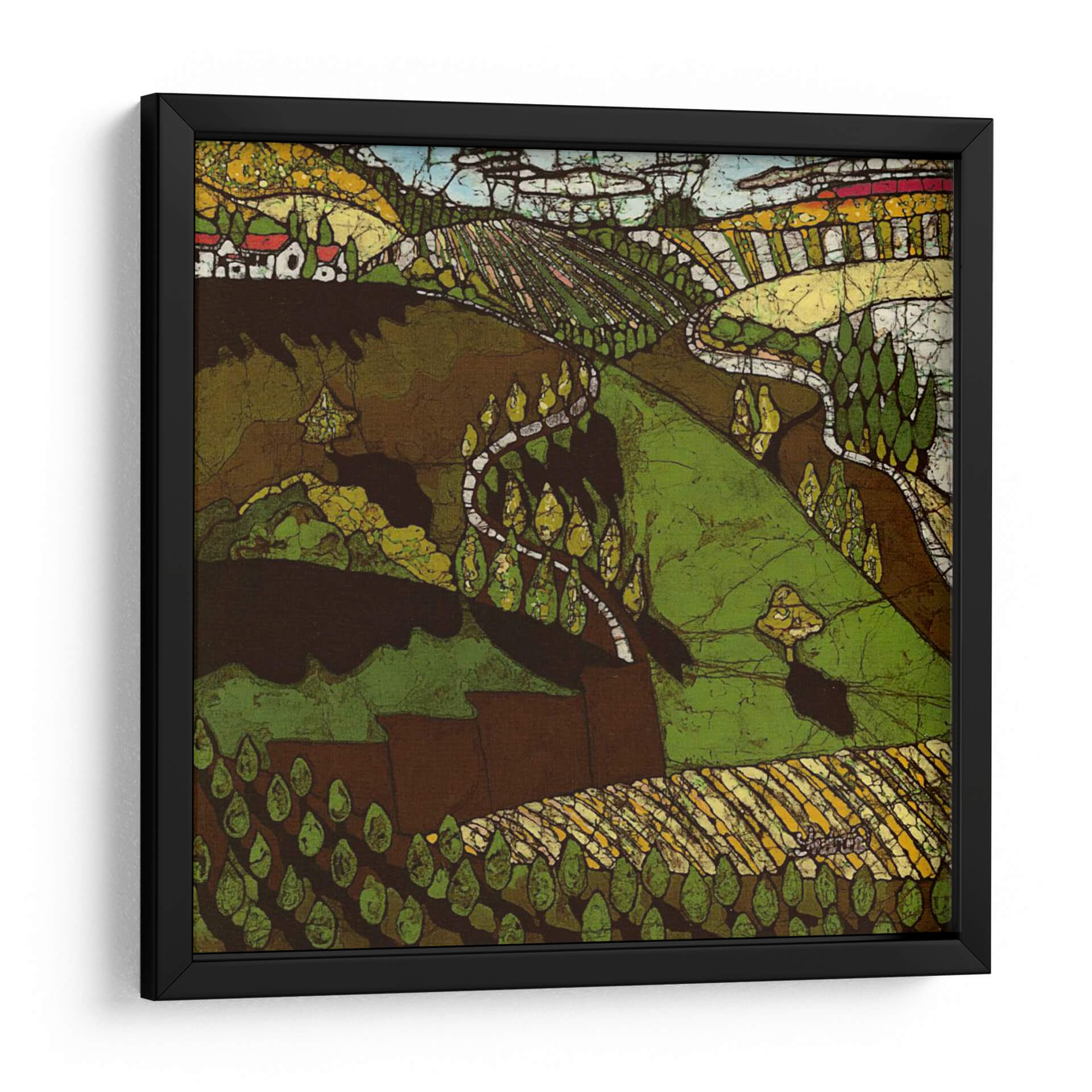 Sumérgete en la serena belleza del paisaje rural con "Carretera De Ciprés", una obra de arte que captura la esencia de la vida campestre con un estilo único y vibrante. Andrea Davis nos transporta a un mundo donde las colinas ondulantes se encuentran con campos cultivados y pequeños caseríos, todo ello representado a través de una paleta de colores tierra, verdes intensos y toques de amarillo y cielo azul. La técnica utilizada, que evoca la textura del batik, añade una profundidad y un carácter distintivo a la composición, creando un efecto visual cautivador. Esta pieza es perfecta para añadir un toque de naturaleza y tranquilidad a cualquier espacio, ya sea una sala de estar, un comedor o una oficina. La intrincada representación de la carretera serpenteante, flanqueada por cipreses estilizados y campos en perspectiva, invita a la contemplación y al sosiego. "Carretera De Ciprés" no es solo una decoración, es una ventana a un mundo pacífico y armonioso, ideal para aquellos que buscan infundir calma y conexión con la naturaleza en su hogar. Su estilo artístico distintivo la convierte en un punto focal interesante y una conversación para cualquier ambiente moderno o rústico.