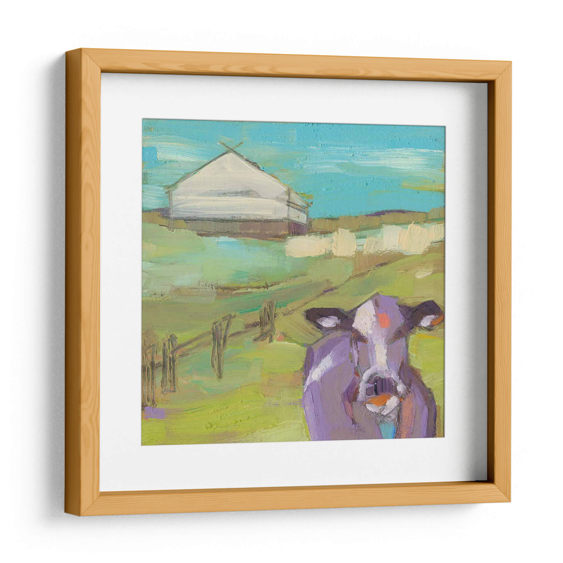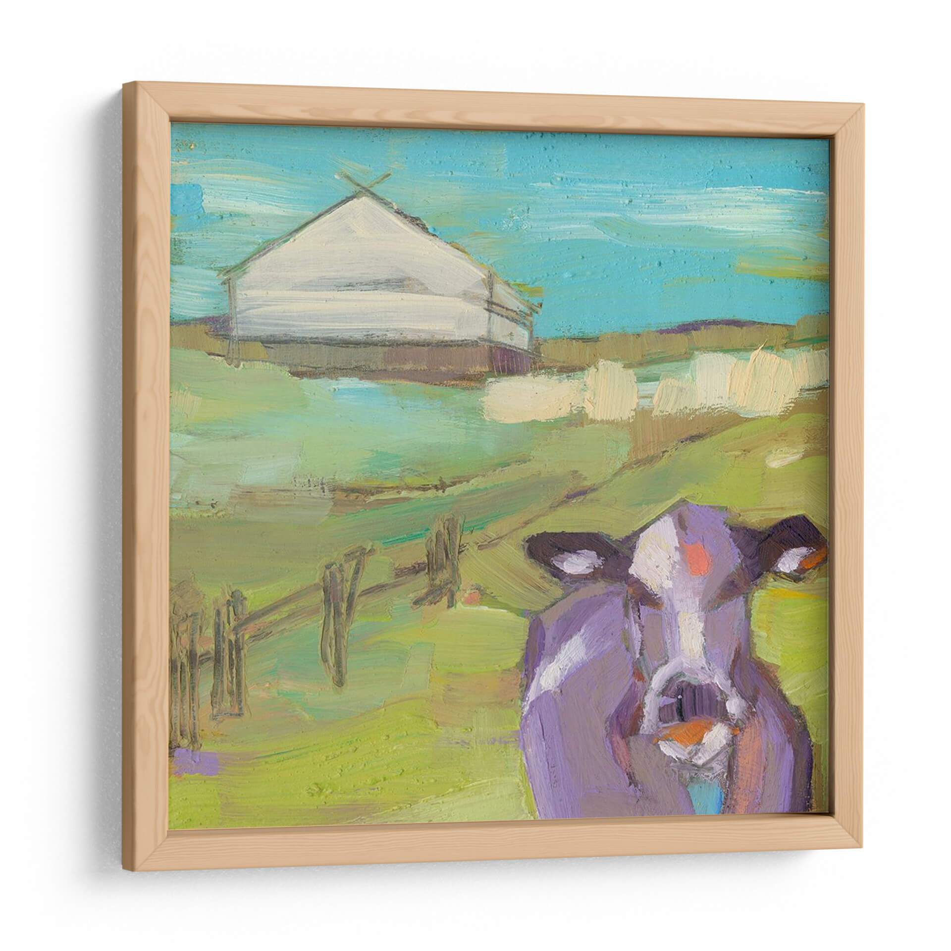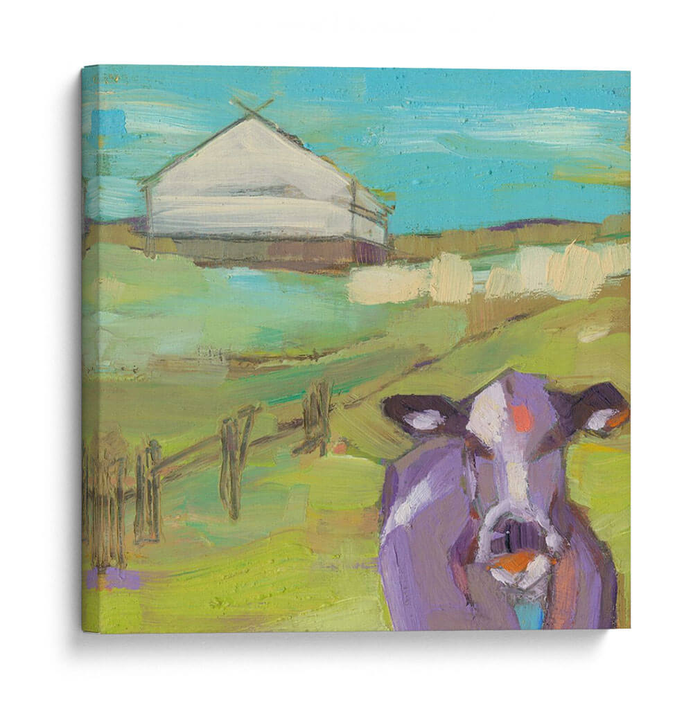 Aporta un toque rústico y vibrante a tu hogar con este cautivador cuadro decorativo inspirado en la vida rural. La obra maestra presenta una escena campestre con una granja blanca al fondo, rodeada de colinas verdes y un cielo azul brillante. En primer plano, una vaca morada y blanca, representada con pinceladas audaces y expresivas, se asoma con curiosidad, añadiendo un elemento de carácter y encanto. Los colores vivos y la textura de la pintura crean una atmósfera alegre y acogedora, perfecta para dar vida a cualquier espacio. Este cuadro es ideal para quienes buscan piezas únicas que evoquen la tranquilidad del campo pero con un toque contemporáneo y artístico. Su estilo distintivo, que mezcla elementos de impresionismo con una interpretación moderna, lo convierte en un punto focal fascinante para salas de estar, comedores o incluso estudios. Imagina este cuadro como el centro de atención en tu pared, transformando tu ambiente en un refugio de paz y estilo. Una obra que celebra la belleza de lo cotidiano con una perspectiva artística inigualable, invitando a la contemplación y al disfrute.
