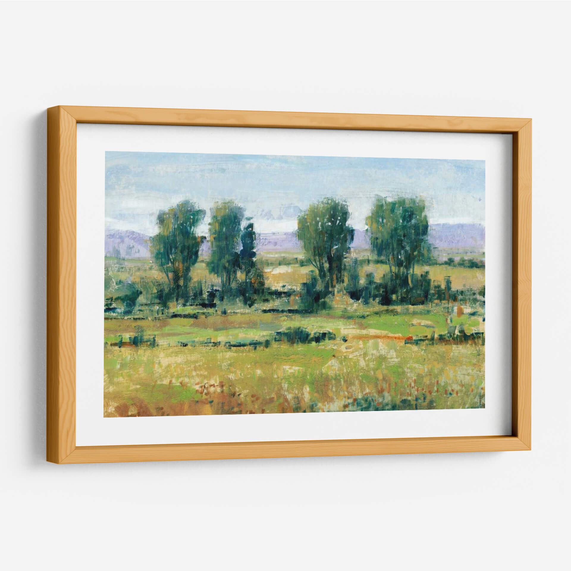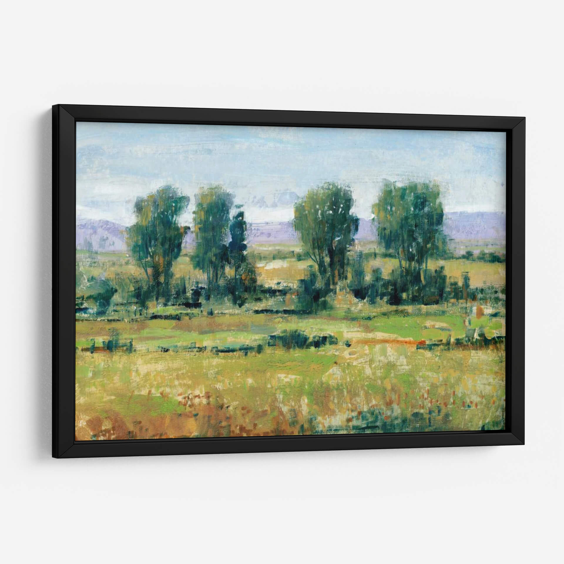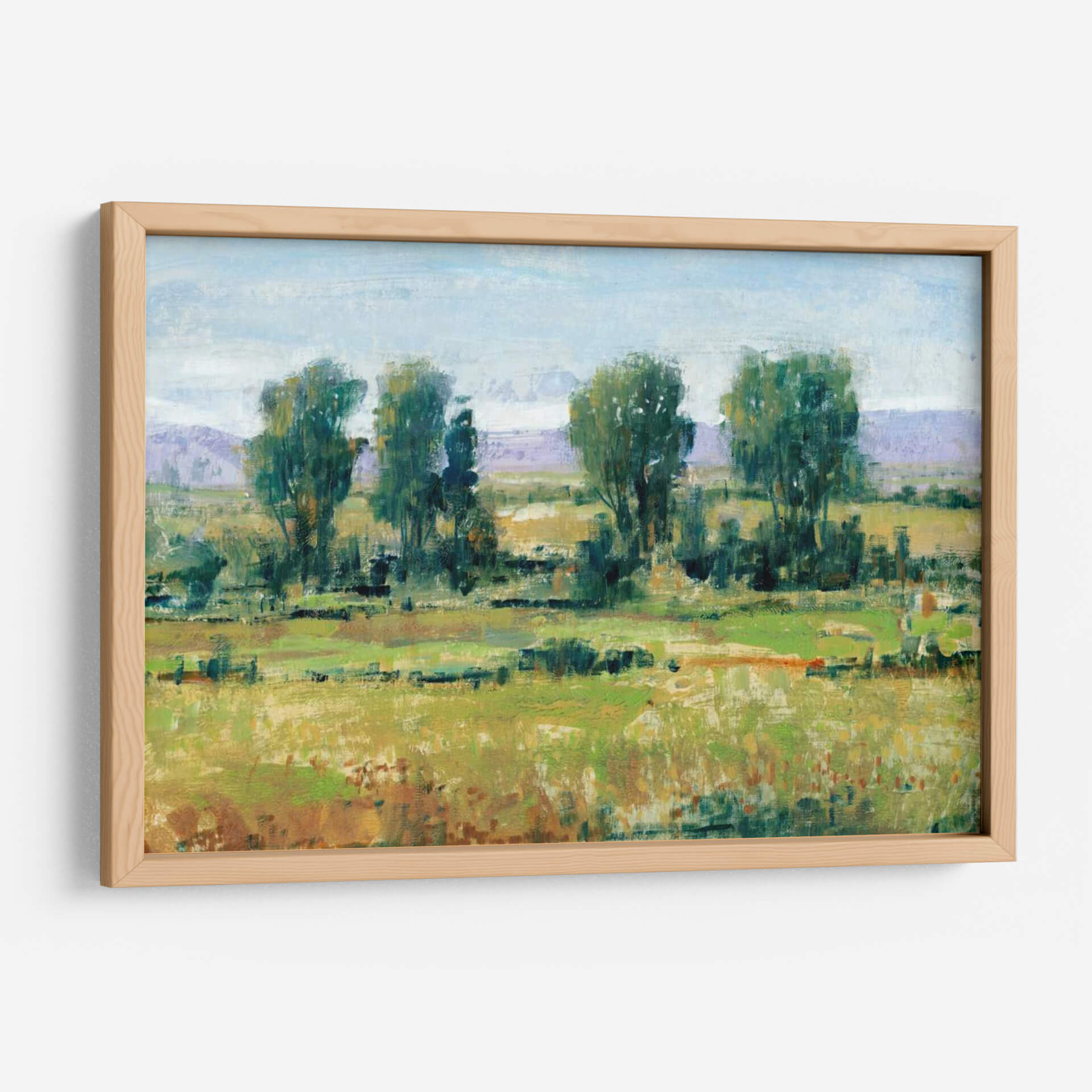 Sumérgete en la serena belleza del campo a mediodía con "Casi Mediodía Yo" de Tim O'Toole. Este evocador cuadro decorativo captura la esencia de un paisaje rural bañado por una luz suave y difusa. La obra presenta una línea de árboles frondosos en la distancia media, flanqueando un campo abierto que se extiende hacia el horizonte. La paleta de colores se centra en tonos tierra, verdes vibrantes y sutiles matices de lavanda en las colinas lejanas, creando una atmósfera de tranquilidad y conexión con la naturaleza. El estilo impresionista, con pinceladas visibles y una composición que sugiere profundidad, invita a la contemplación y aporta una sensación de paz al espacio. "Casi Mediodía Yo" es ideal para añadir un toque de serenidad y calidez a salones, comedores o estudios, transformando cualquier ambiente en un refugio de calma y belleza natural. La calidad artística de Tim O'Toole se refleja en cada trazo, haciendo de esta pieza una adición valiosa a cualquier colección de arte contemporáneo, perfecta para quienes buscan decorar con arte que inspira la reflexión y el bienestar.