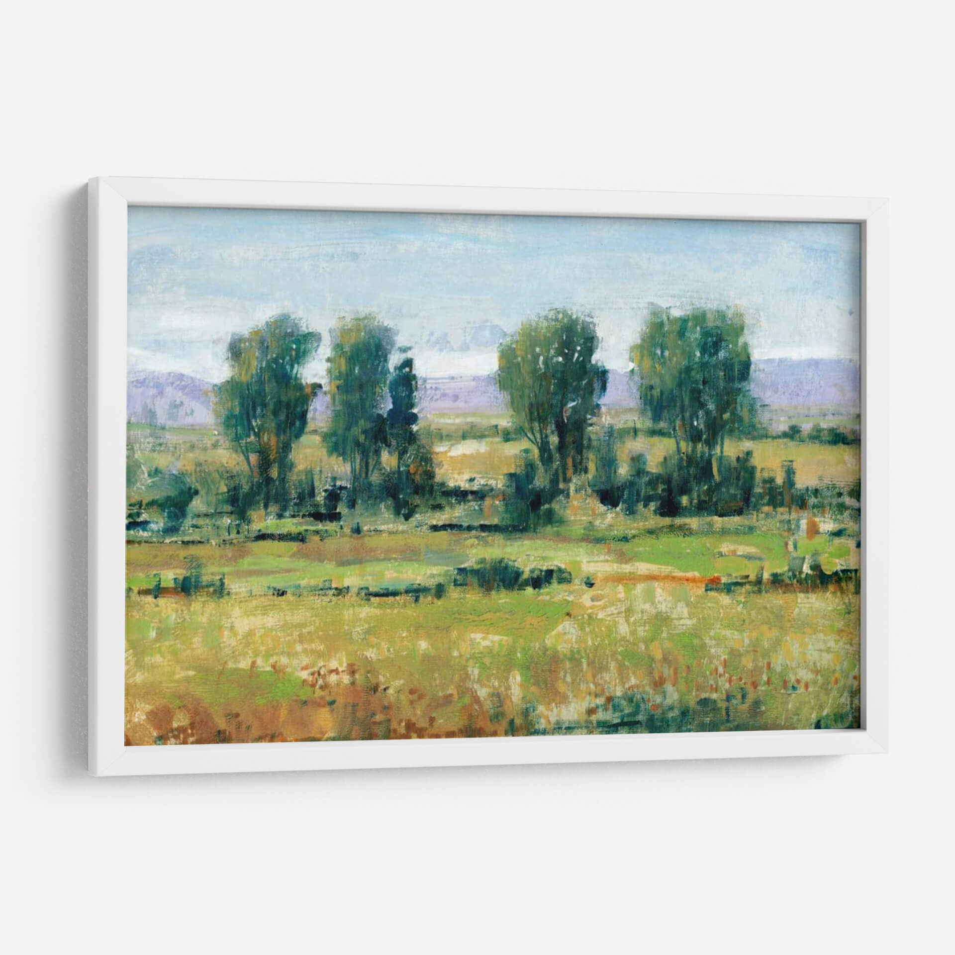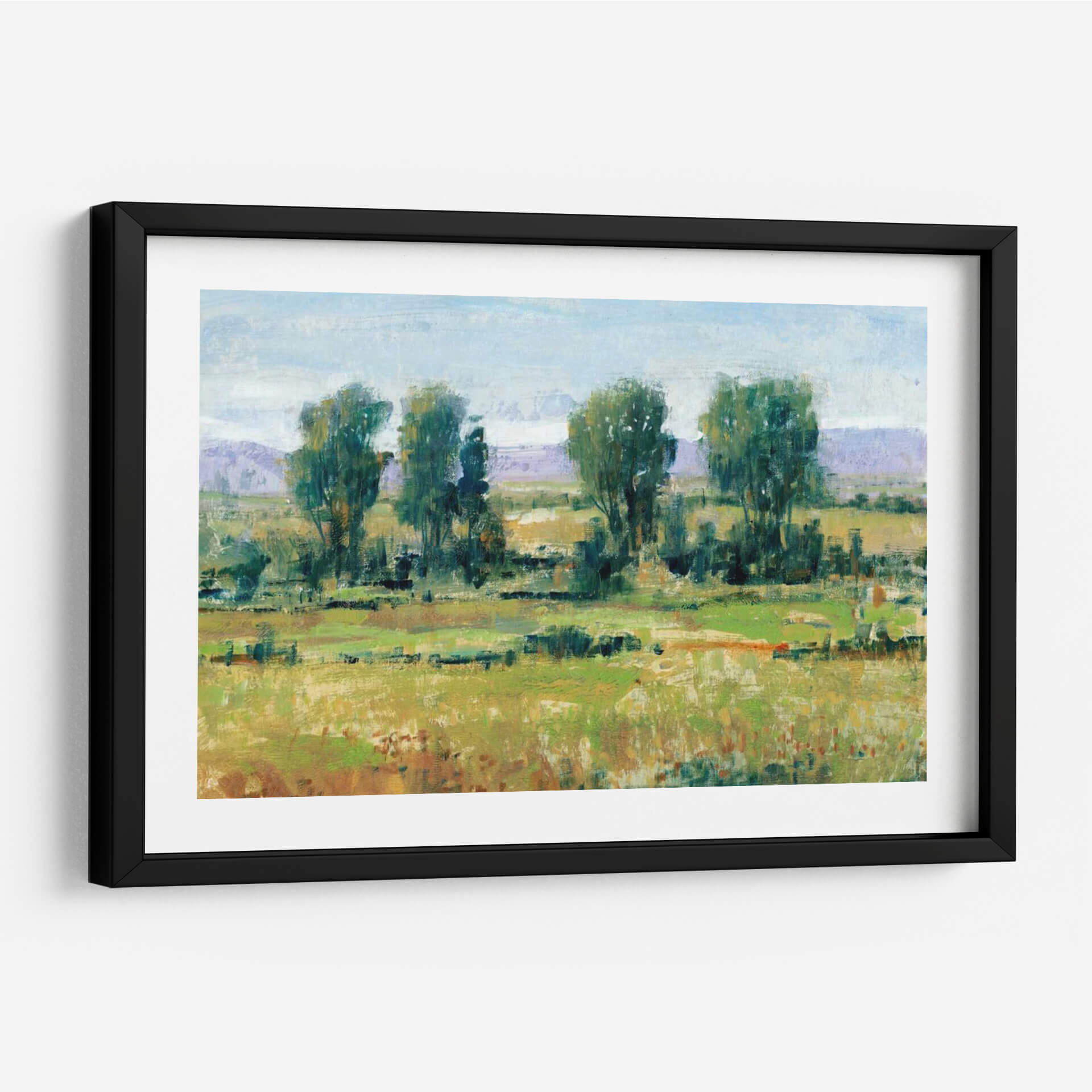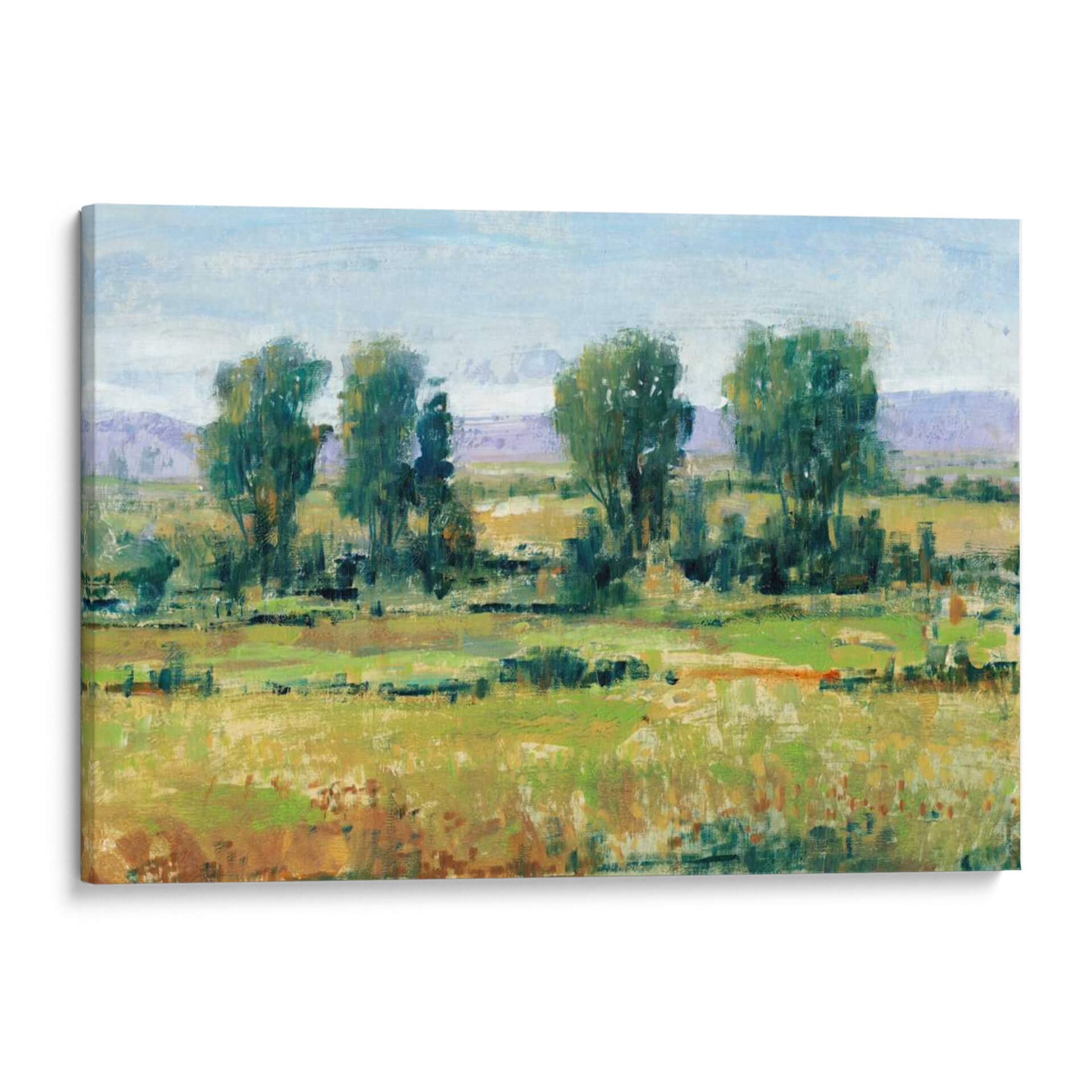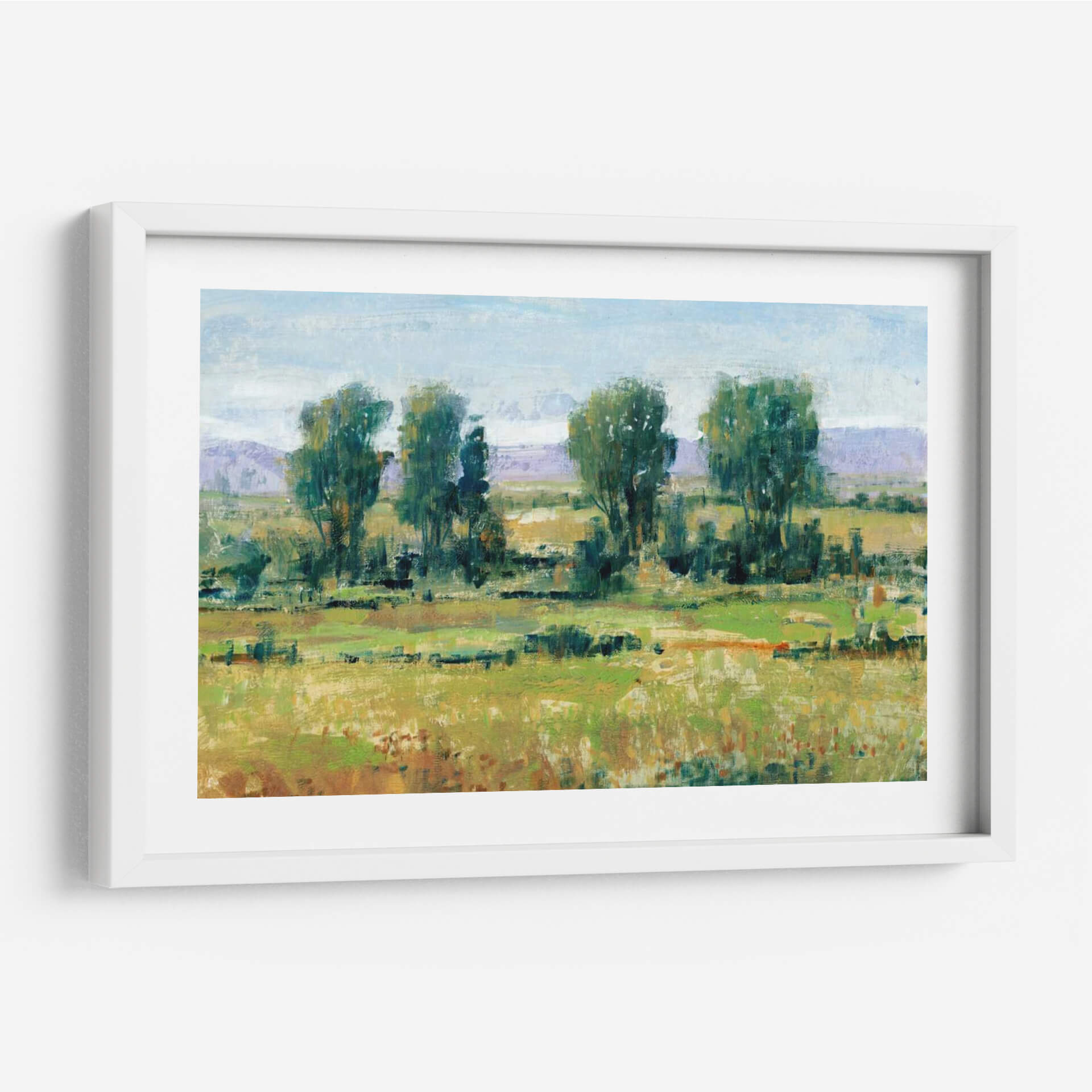 Sumérgete en la serena belleza del campo a mediodía con "Casi Mediodía Yo" de Tim O'Toole. Este evocador cuadro decorativo captura la esencia de un paisaje rural bañado por una luz suave y difusa. La obra presenta una línea de árboles frondosos en la distancia media, flanqueando un campo abierto que se extiende hacia el horizonte. La paleta de colores se centra en tonos tierra, verdes vibrantes y sutiles matices de lavanda en las colinas lejanas, creando una atmósfera de tranquilidad y conexión con la naturaleza. El estilo impresionista, con pinceladas visibles y una composición que sugiere profundidad, invita a la contemplación y aporta una sensación de paz al espacio. "Casi Mediodía Yo" es ideal para añadir un toque de serenidad y calidez a salones, comedores o estudios, transformando cualquier ambiente en un refugio de calma y belleza natural. La calidad artística de Tim O'Toole se refleja en cada trazo, haciendo de esta pieza una adición valiosa a cualquier colección de arte contemporáneo, perfecta para quienes buscan decorar con arte que inspira la reflexión y el bienestar.