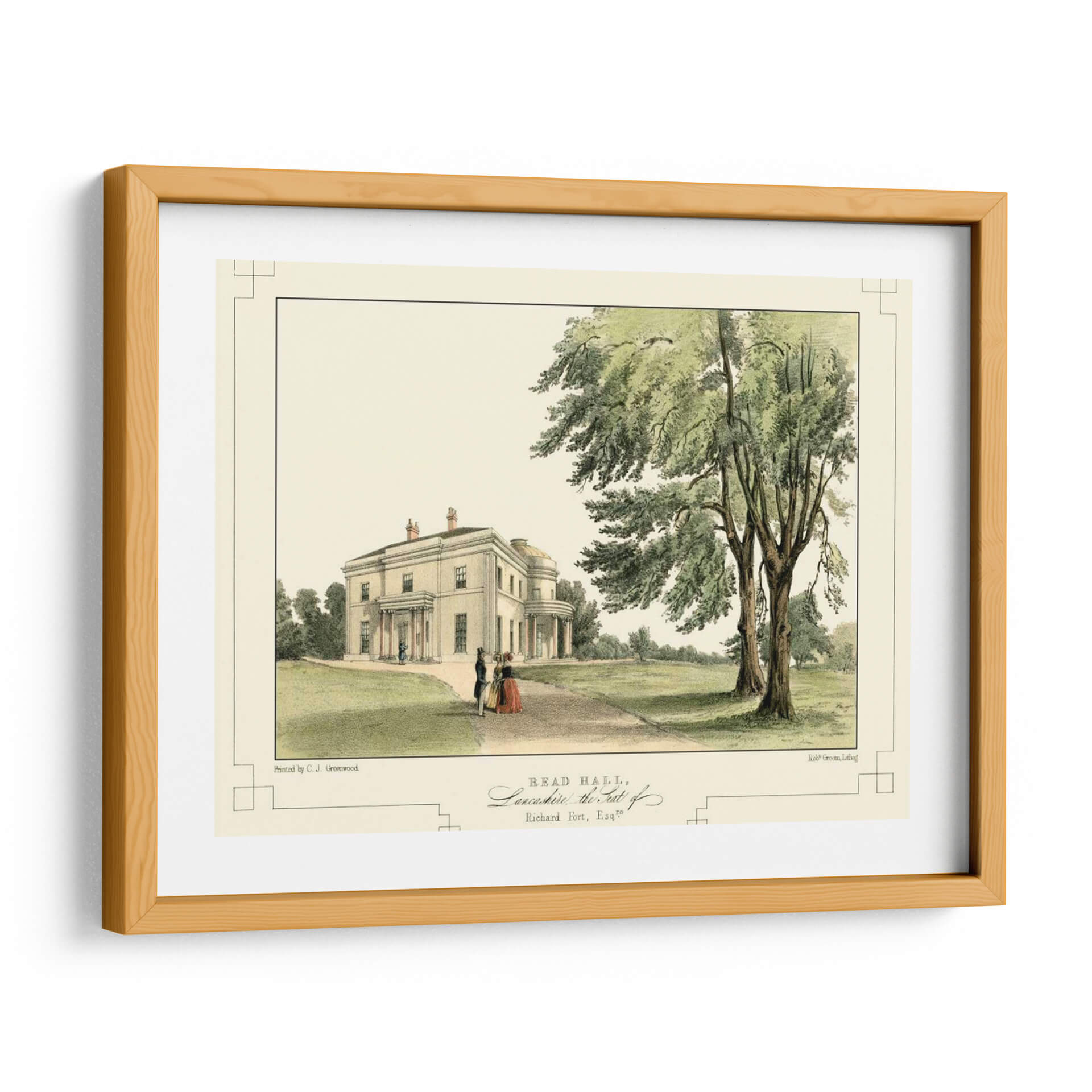 Sumérgete en la elegancia histórica con este cautivador cuadro decorativo que representa "Castillos De Lancashire Ii" por C.J. Greenwood. Esta obra transporta al espectador a una época de esplendor arquitectónico y paisajes serenos. La pieza presenta una majestuosa casa señorial de estilo neoclásico, con imponentes columnas y un diseño simétrico que evoca tranquilidad y orden. Rodeada por exuberantes árboles de hojas verdes y un césped cuidado, la escena se completa con la presencia de dos figuras vestidas con atuendos de época, añadiendo un toque de vida y narración a la composición. Los colores, predominantemente pasteles y tonos tierra, crean una atmósfera apacible y nostálgica, ideal para complementar espacios que buscan una sensación de calma y refinamiento. Su estilo de grabado o ilustración detallada, con sutiles toques de color, lo convierte en una pieza de arte de pared perfecta para salones clásicos, estudios o cualquier rincón donde se desee infundir un aire de sofisticación y un vínculo con la historia. Este cuadro decorativo no solo embellece, sino que también cuenta una historia, invitando a la contemplación y al aprecio por la arquitectura y la naturaleza.