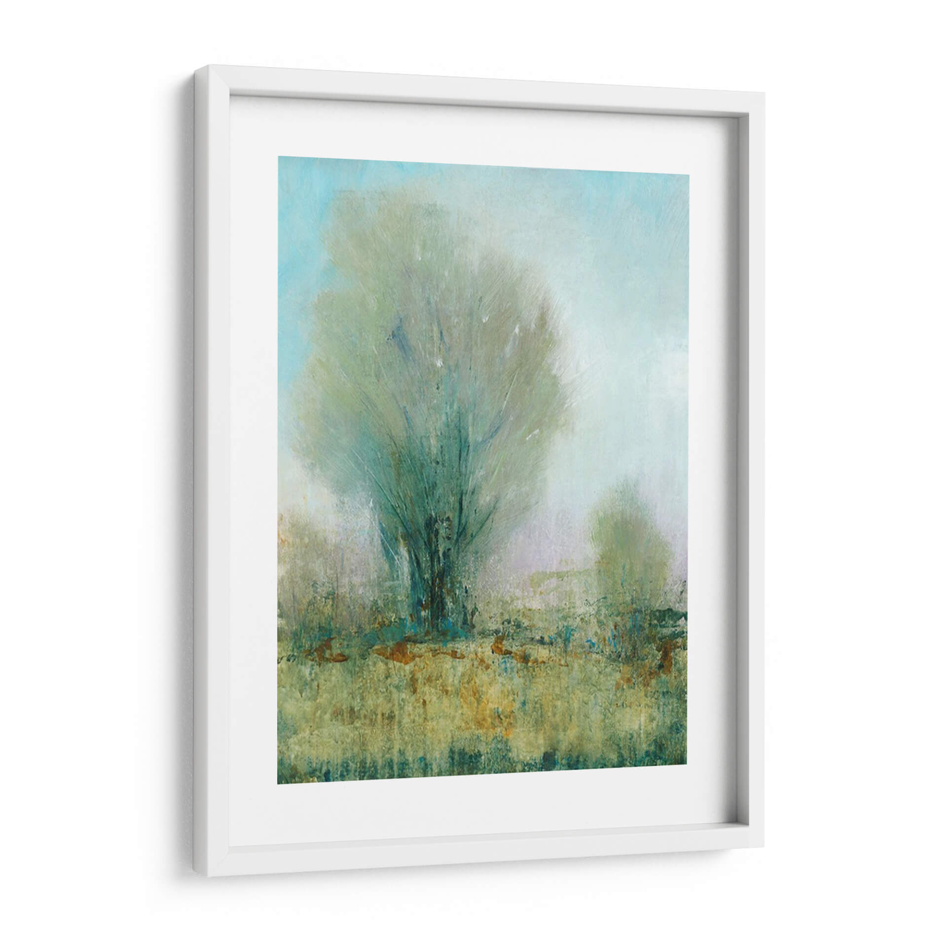 Sumérgete en la serenidad y la belleza etérea de "Cenador I", una obra de arte contemporáneo del aclamado artista Tim OToole. Este cuadro decorativo abstracto captura la esencia de un paisaje natural bañado en una luz suave y difusa, con un árbol imponente como protagonista. La paleta de colores, dominada por tonos celestes, verdes empolvados y toques terrosos, crea una atmósfera de calma y contemplación, invitando a la reflexión. La técnica pictórica, con pinceladas sueltas y texturas evocadoras, confiere a la pieza una profundidad y un dinamismo sutiles. "Cenador I" es más que una simple imagen; es una ventana a un mundo de tranquilidad, ideal para espacios que buscan transmitir paz y elegancia. Transforma tu sala de estar, dormitorio o estudio en un santuario personal con este lienzo que evoca la conexión con la naturaleza y la introspección. Su estilo abstracto y su composición armoniosa lo convierten en el punto focal perfecto para ambientes que valoran la sutileza y la emotividad en la decoración.