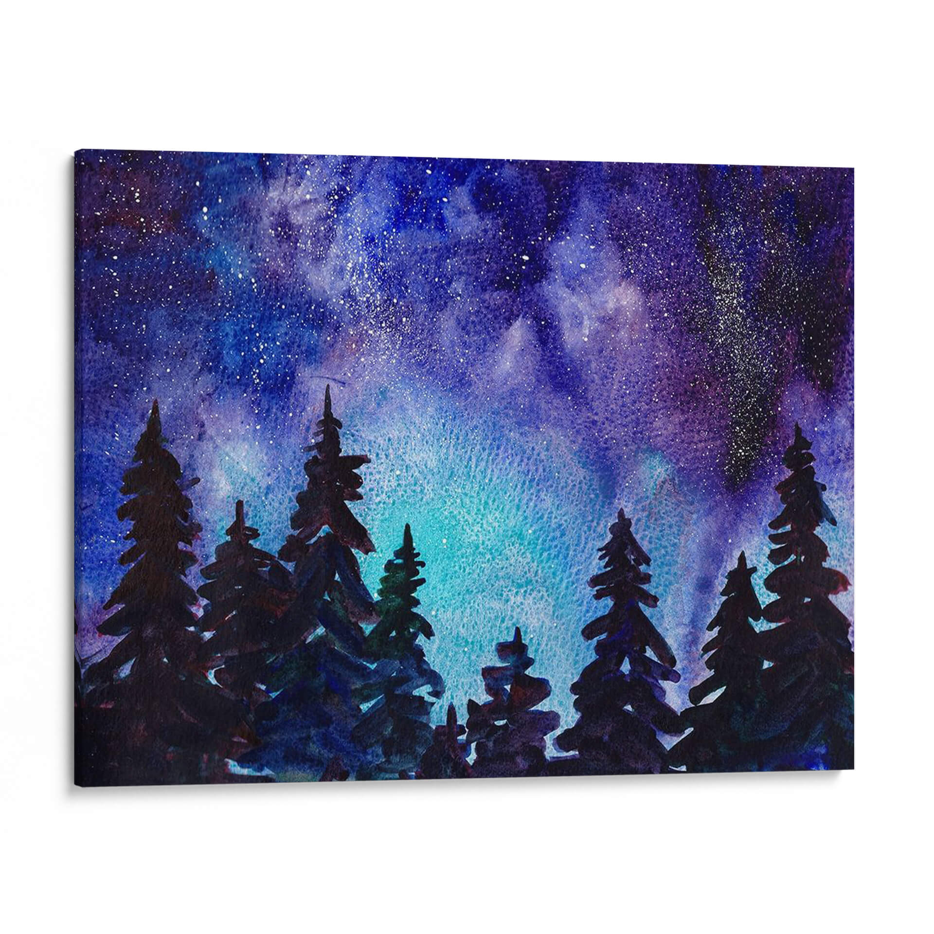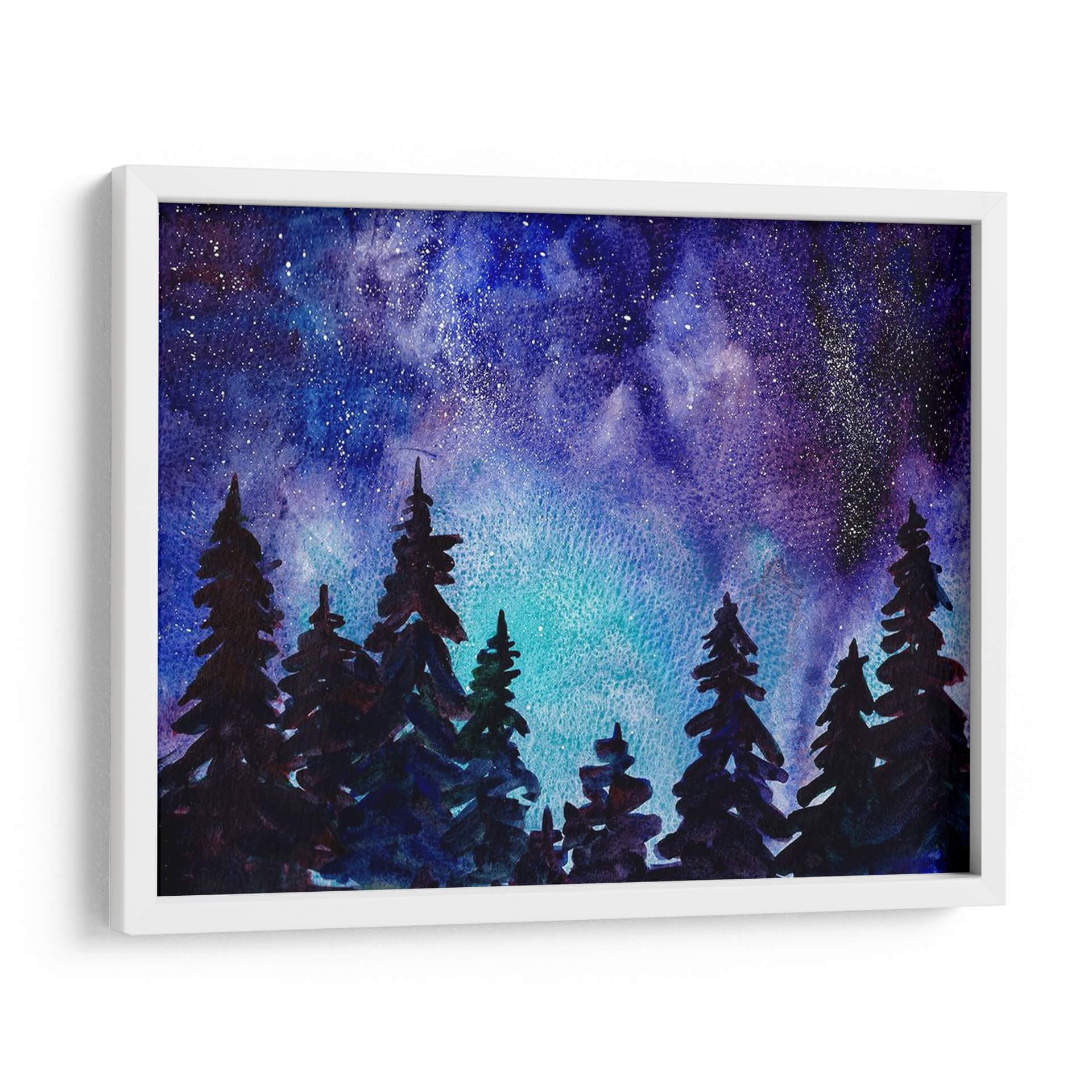 Sumérgete en la inmensidad del cosmos con 'Cielo Nocturno III', una obra de arte que captura la magia y el misterio de la noche estrellada. El artista Scherrer Finch nos transporta a un paisaje onírico donde siluetas oscuras de árboles se alzan contra un firmamento vibrante y lleno de luz. La técnica de acuarela utilizada aporta una textura etérea y fluida, permitiendo que los profundos azules y púrpuras del cielo nocturno se mezclen con destellos de luz que simulan estrellas lejanas y nebulosas celestiales. La paleta de colores, que transita desde el índigo más intenso hasta un turquesa brillante en el centro, crea un contraste hipnótico con las formas oscuras y definidas de los pinos que enmarcan la escena. Esta pieza es ideal para añadir un toque de serenidad y asombro a cualquier espacio, ya sea un dormitorio que busca tranquilidad, una sala de estar que anhela un punto focal evocador, o una oficina que necesita inspiración. 'Cielo Nocturno III' no es solo una decoración de pared, sino una ventana a la contemplación, invitando a la reflexión sobre la belleza del universo. Su estilo contemporáneo y su atmósfera enigmática la convierten en una adición perfecta para quienes aprecian el arte abstracto y los paisajes que invitan a soñar.