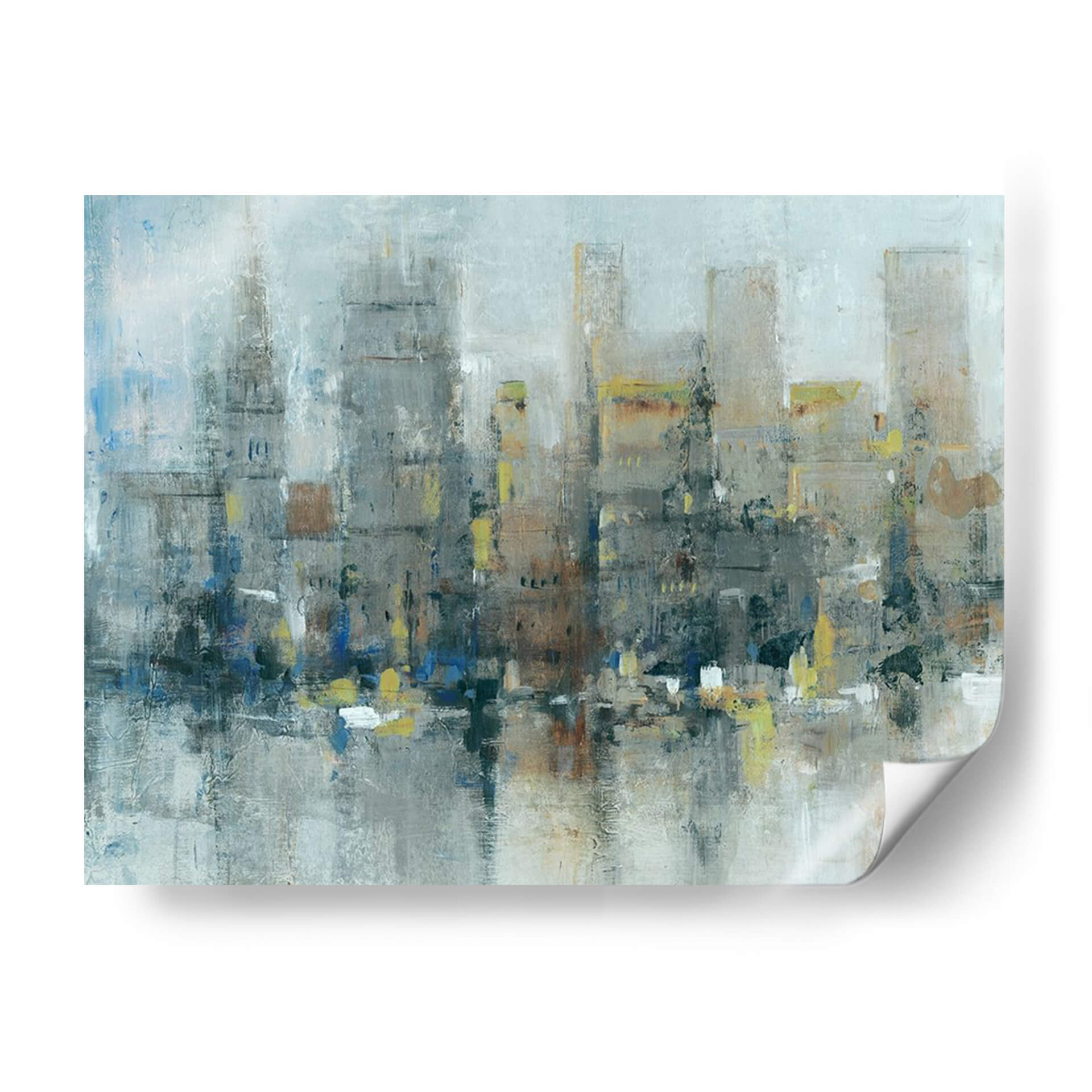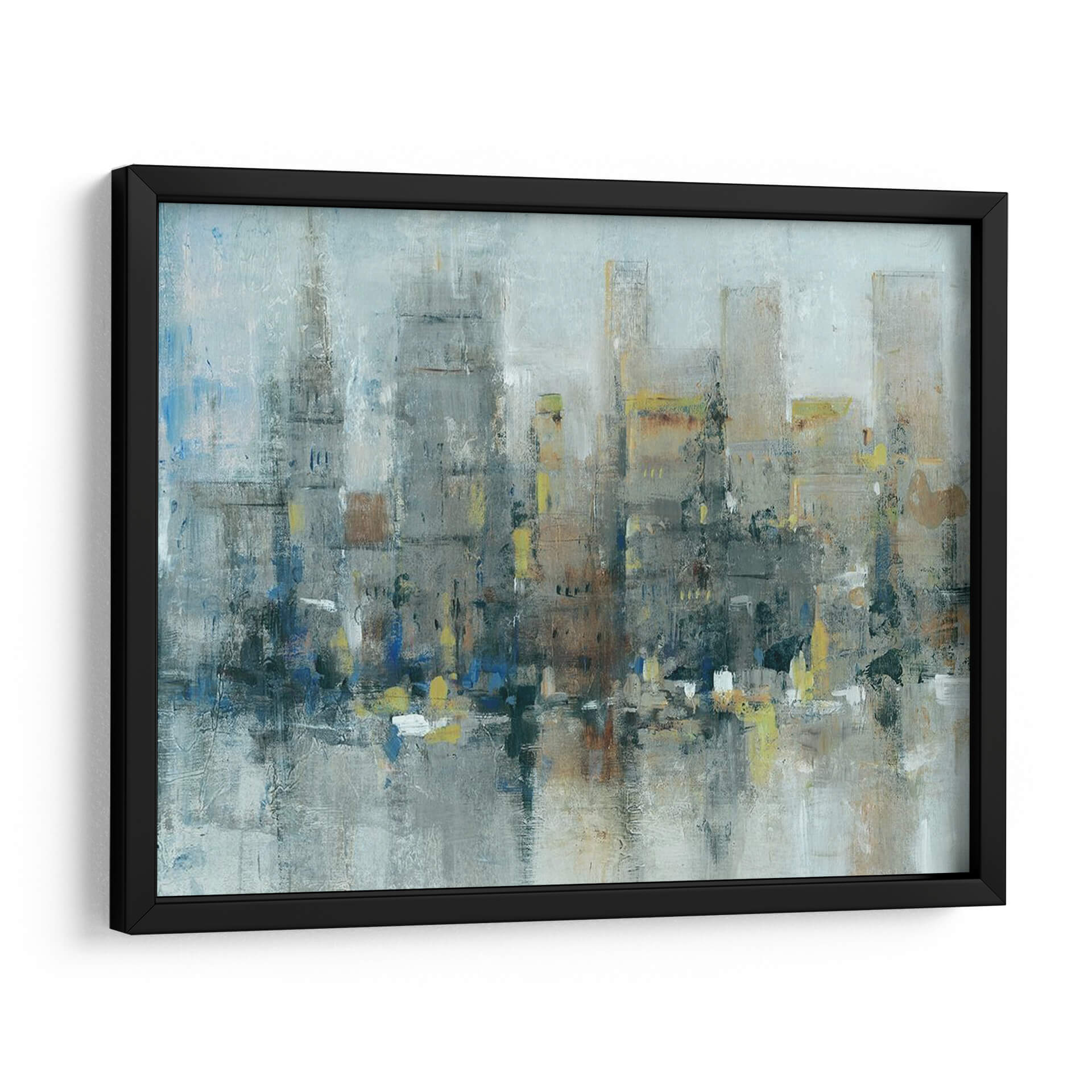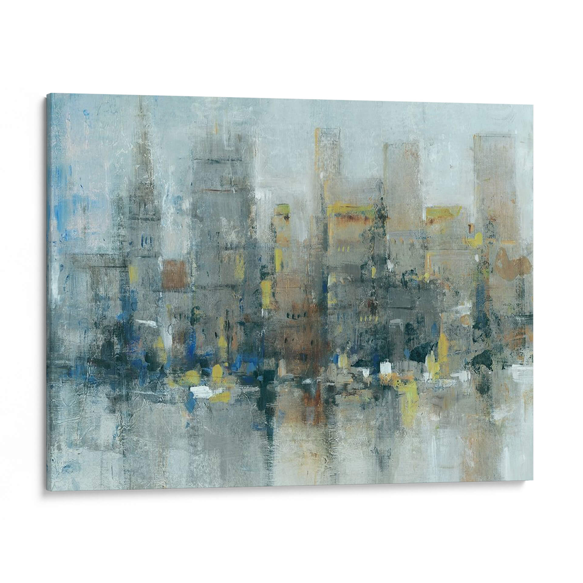 Sumérgete en la atmósfera urbana de "Ciudad Propiamente", una obra de arte abstracto contemporáneo que captura la esencia de la vida metropolitana con una paleta de colores evocadora y texturas ricas. Este cuadro decorativo presenta una interpretación estilizada de un horizonte urbano, donde los edificios se alzan como siluetas imponentes, difuminadas por una neblina etérea o el reflejo del agua. Los tonos grises y azules dominan la composición, aportando una sensación de calma y profundidad, mientras que sutiles toques de amarillo y ocre añaden vitalidad y puntos de interés visual. La pincelada suelta y gestual del artista Tim OToole confiere a la pieza una energía dinámica y una calidad expresiva, invitando a la contemplación. Ideal para espacios que buscan un toque de sofisticación moderna y un aire de misterio urbano. Este cuadro es perfecto para salones, oficinas o recibidores, transformando cualquier ambiente en una galería de arte personal. "Ciudad Propiamente" no es solo una decoración, sino una ventana a la contemplación de la belleza inherente en la complejidad de la ciudad.