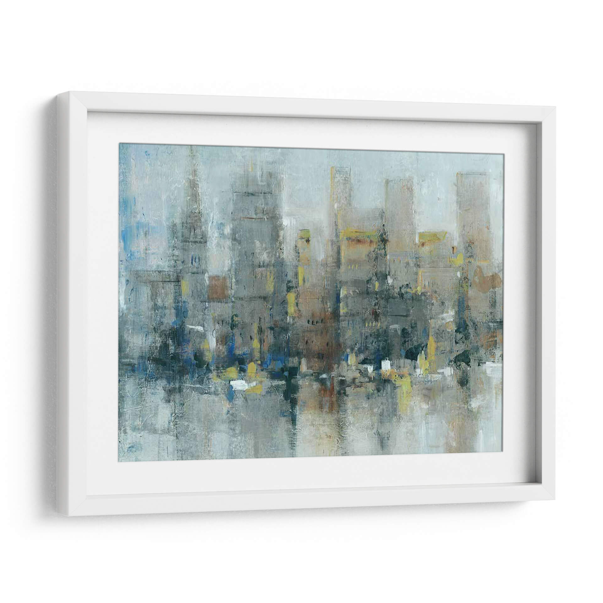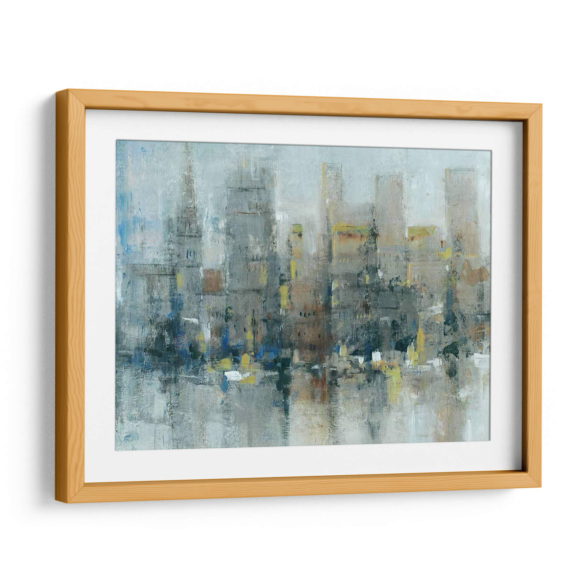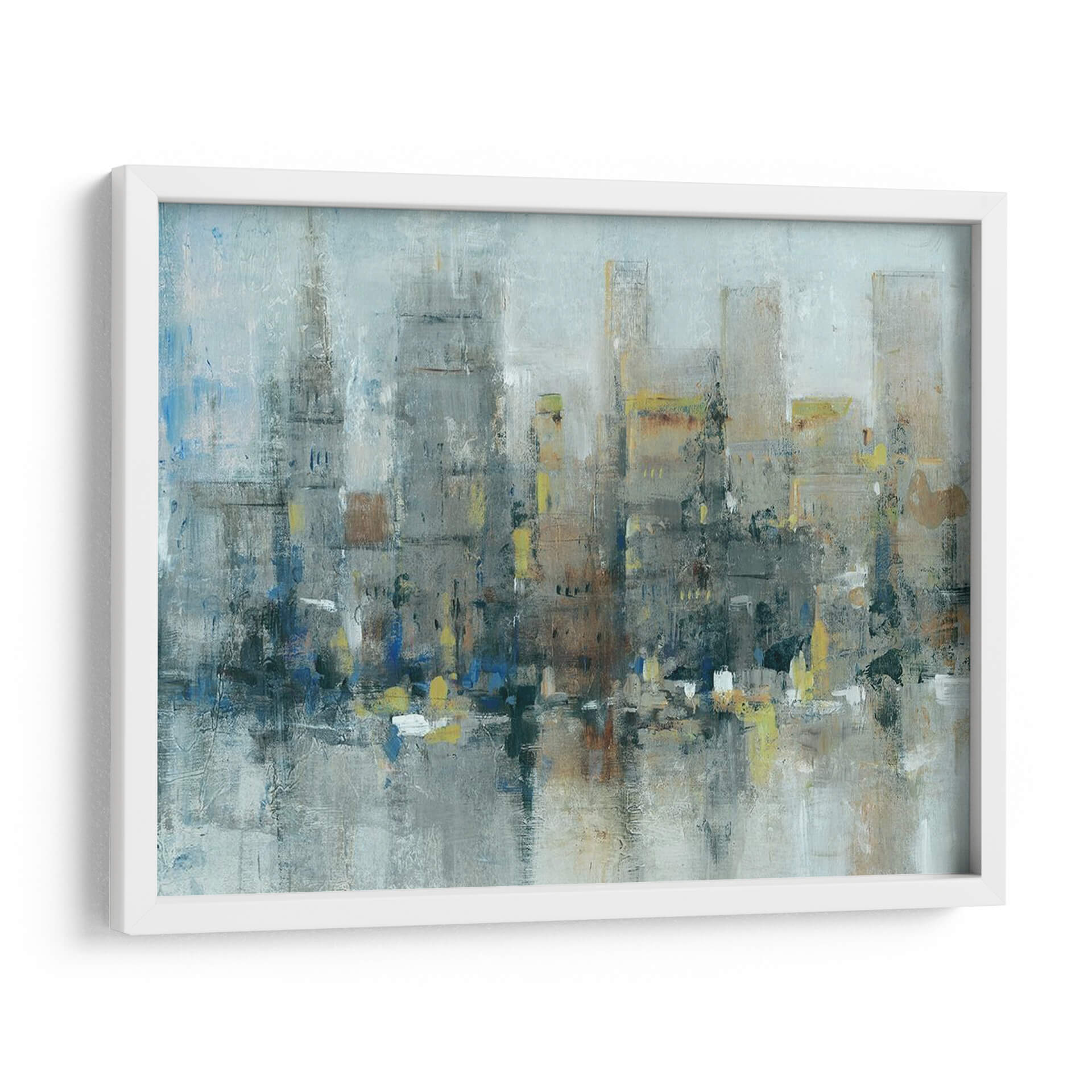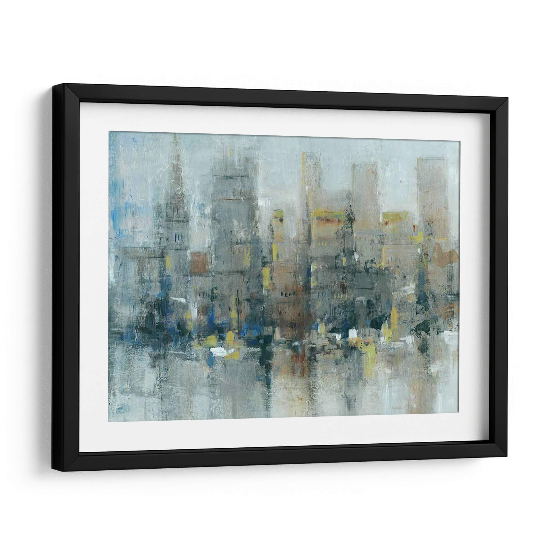 Sumérgete en la atmósfera urbana de "Ciudad Propiamente", una obra de arte abstracto contemporáneo que captura la esencia de la vida metropolitana con una paleta de colores evocadora y texturas ricas. Este cuadro decorativo presenta una interpretación estilizada de un horizonte urbano, donde los edificios se alzan como siluetas imponentes, difuminadas por una neblina etérea o el reflejo del agua. Los tonos grises y azules dominan la composición, aportando una sensación de calma y profundidad, mientras que sutiles toques de amarillo y ocre añaden vitalidad y puntos de interés visual. La pincelada suelta y gestual del artista Tim OToole confiere a la pieza una energía dinámica y una calidad expresiva, invitando a la contemplación. Ideal para espacios que buscan un toque de sofisticación moderna y un aire de misterio urbano. Este cuadro es perfecto para salones, oficinas o recibidores, transformando cualquier ambiente en una galería de arte personal. "Ciudad Propiamente" no es solo una decoración, sino una ventana a la contemplación de la belleza inherente en la complejidad de la ciudad.