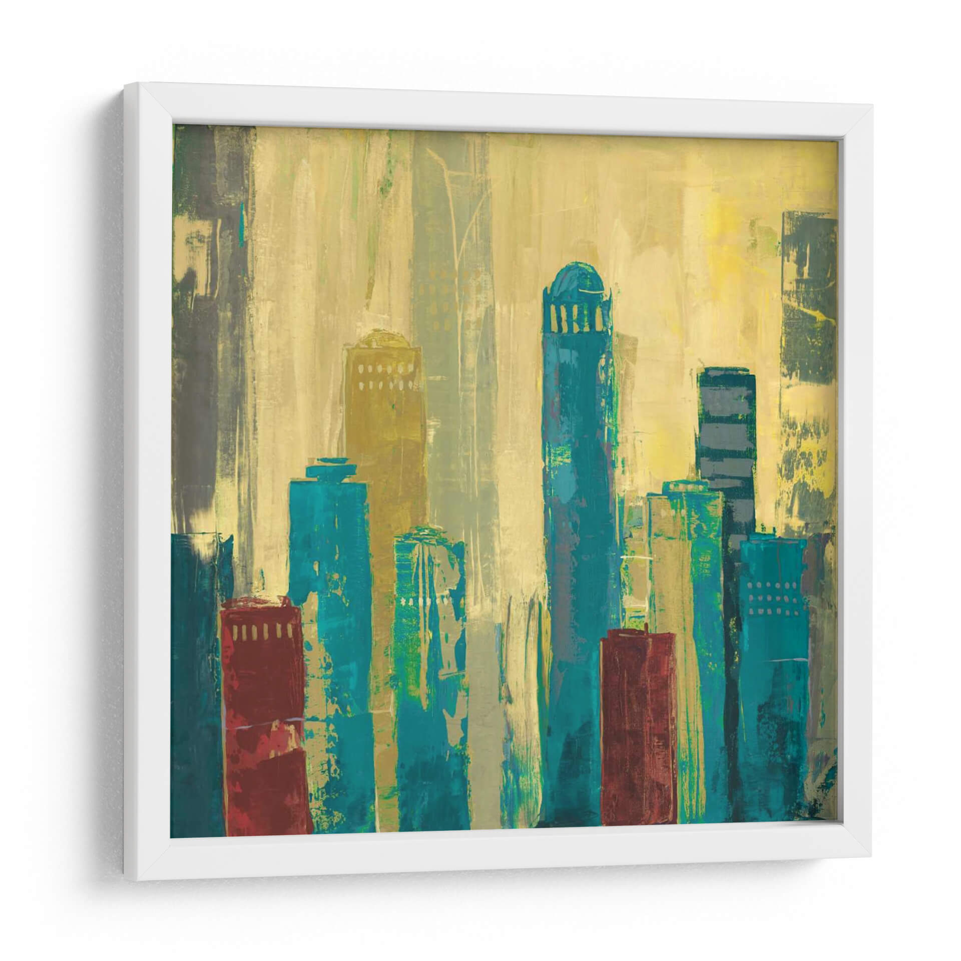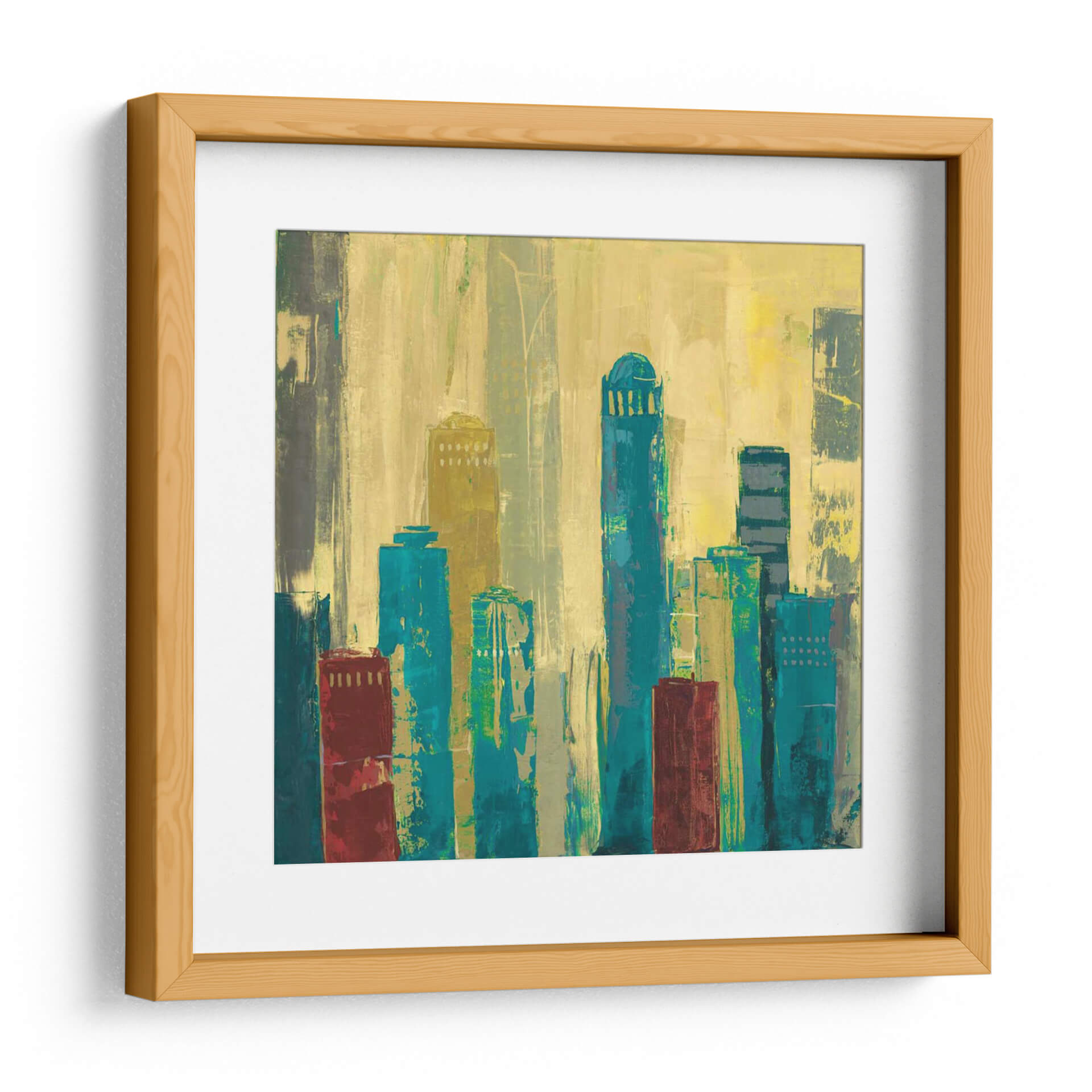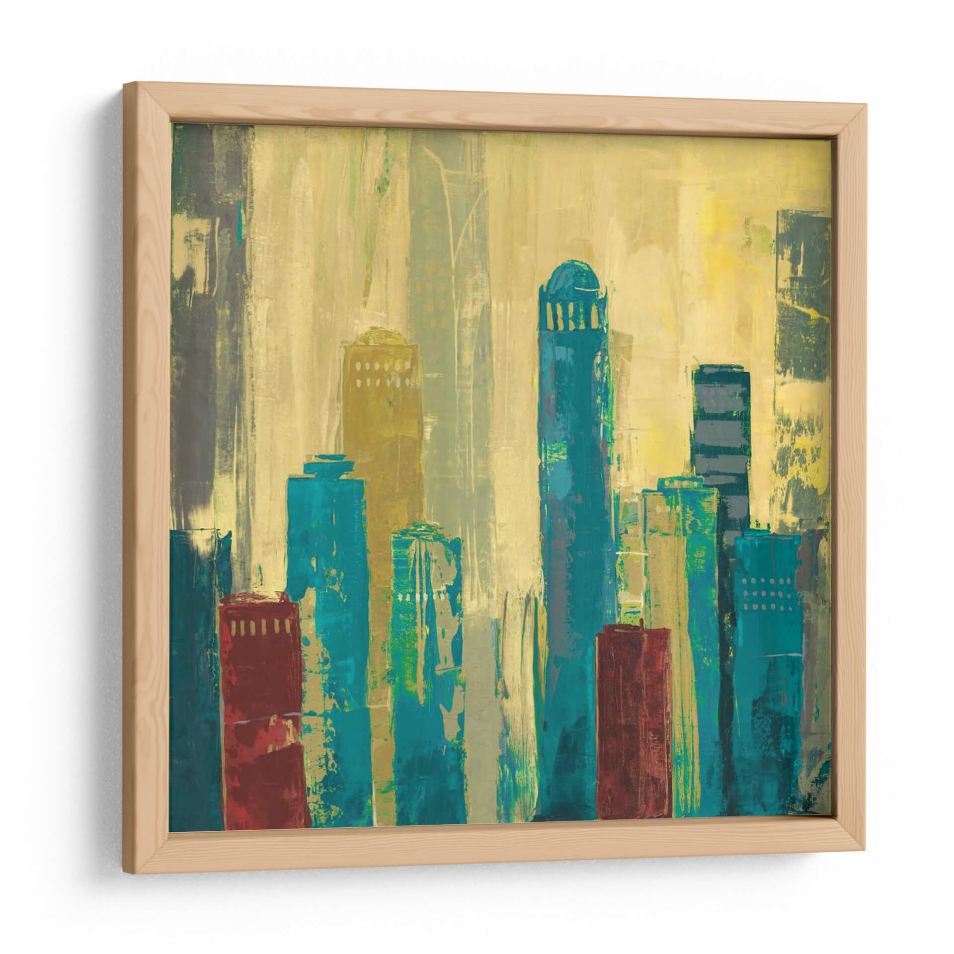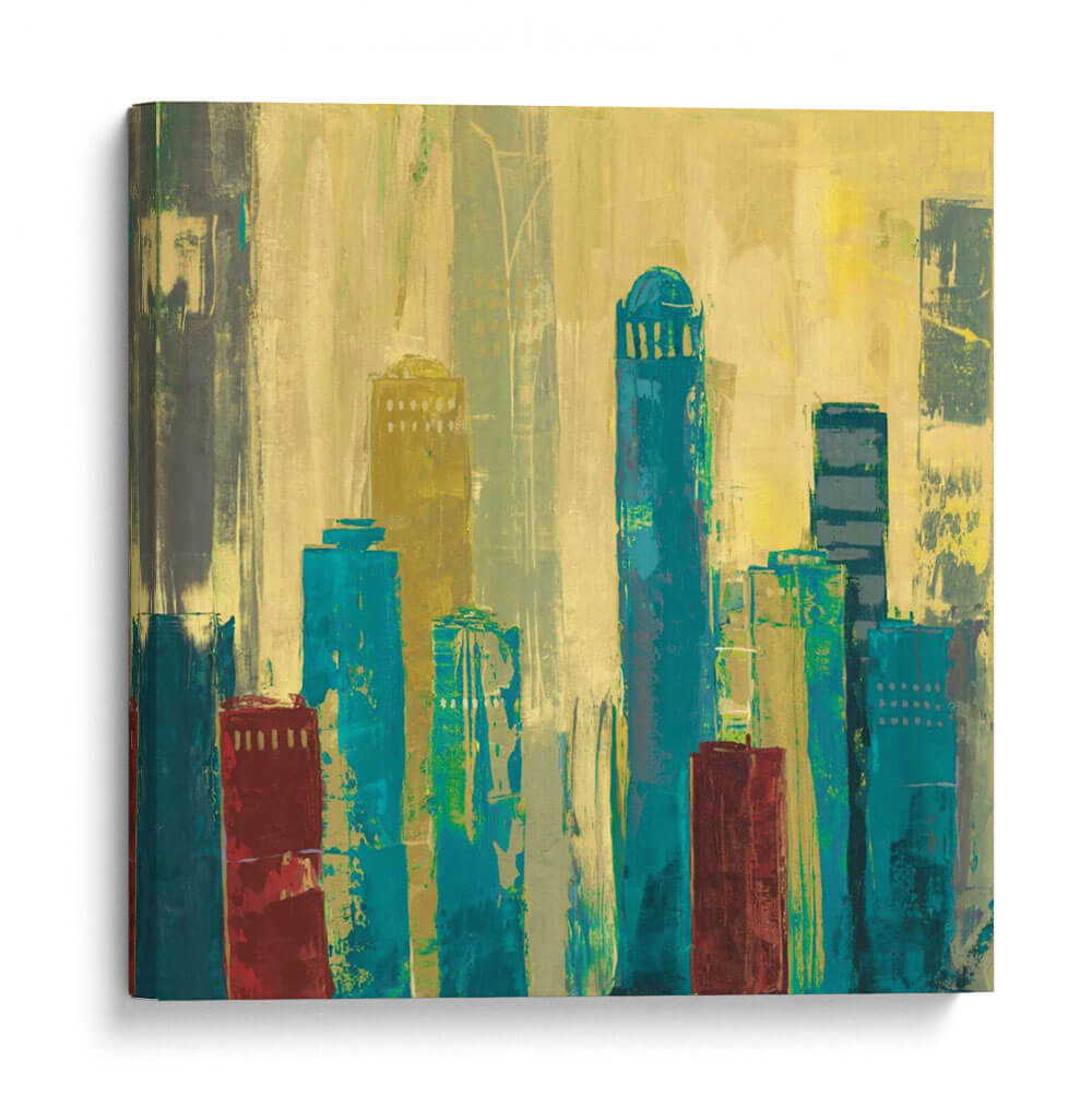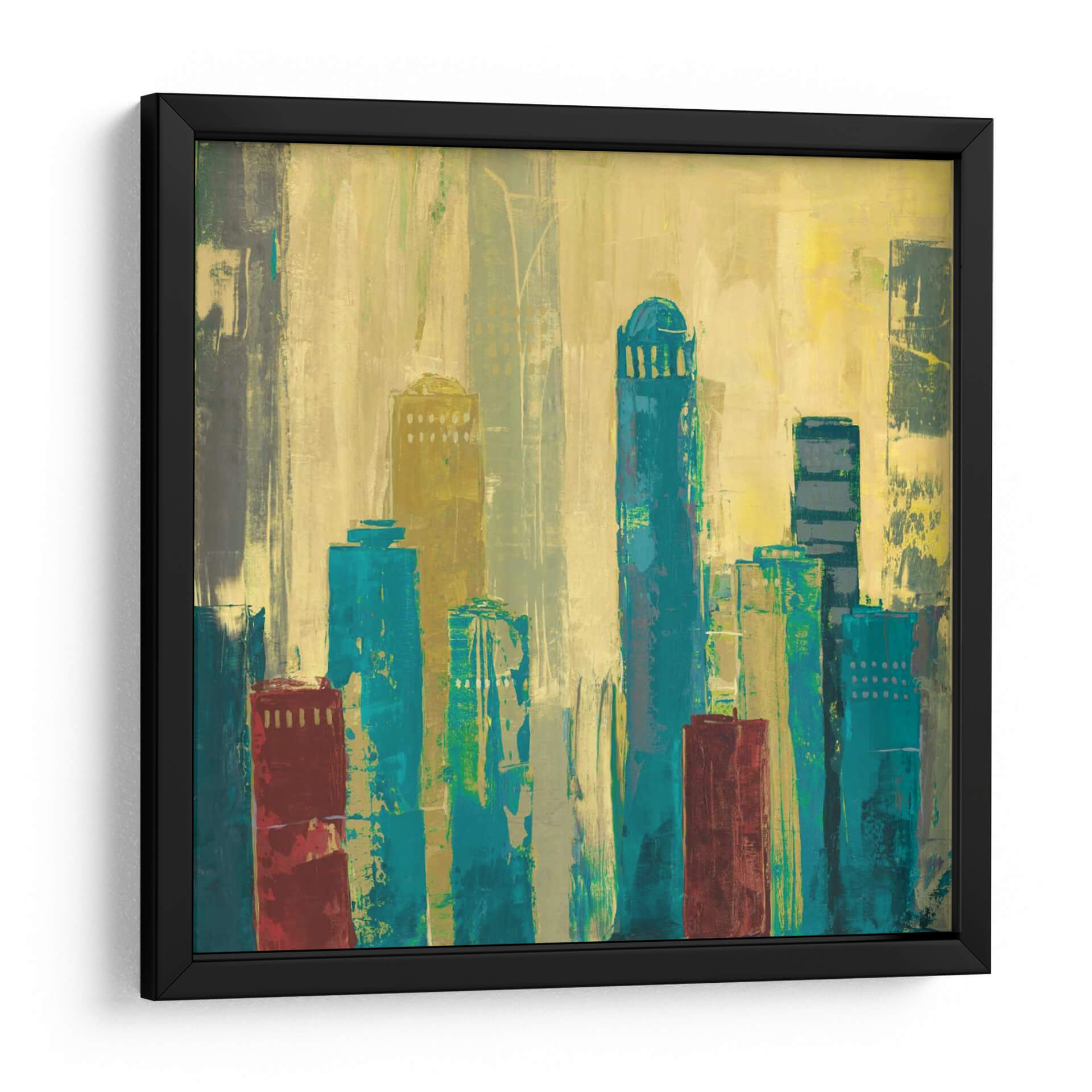 Sumérgete en la energía urbana y la abstracción moderna con "Conexión de la Ciudad I" de Julie Joy. Esta cautivadora obra de arte de pared captura la esencia de un paisaje urbano vibrante a través de pinceladas audaces y una paleta de colores rica y contrastante. Predominan los tonos turquesas profundos y ocres cálidos, salpicados por acentos de rojo terracota, creando una composición dinámica que evoca el pulso de la vida metropolitana. Las formas estilizadas de los rascacielos se elevan sobre un fondo texturizado, sugiriendo la grandiosidad y la interconexión de una ciudad en constante movimiento. El estilo abstracto y expresionista de Joy permite una interpretación personal, invitando al espectador a sentir la atmósfera de la ciudad. Ideal para añadir un toque de sofisticación contemporánea a tu sala de estar, oficina o cualquier espacio que necesite un punto focal vibrante y lleno de carácter. "Conexión de la Ciudad I" es más que una simple decoración; es una declaración de estilo que infunde vitalidad y una perspectiva artística única a tu hogar.