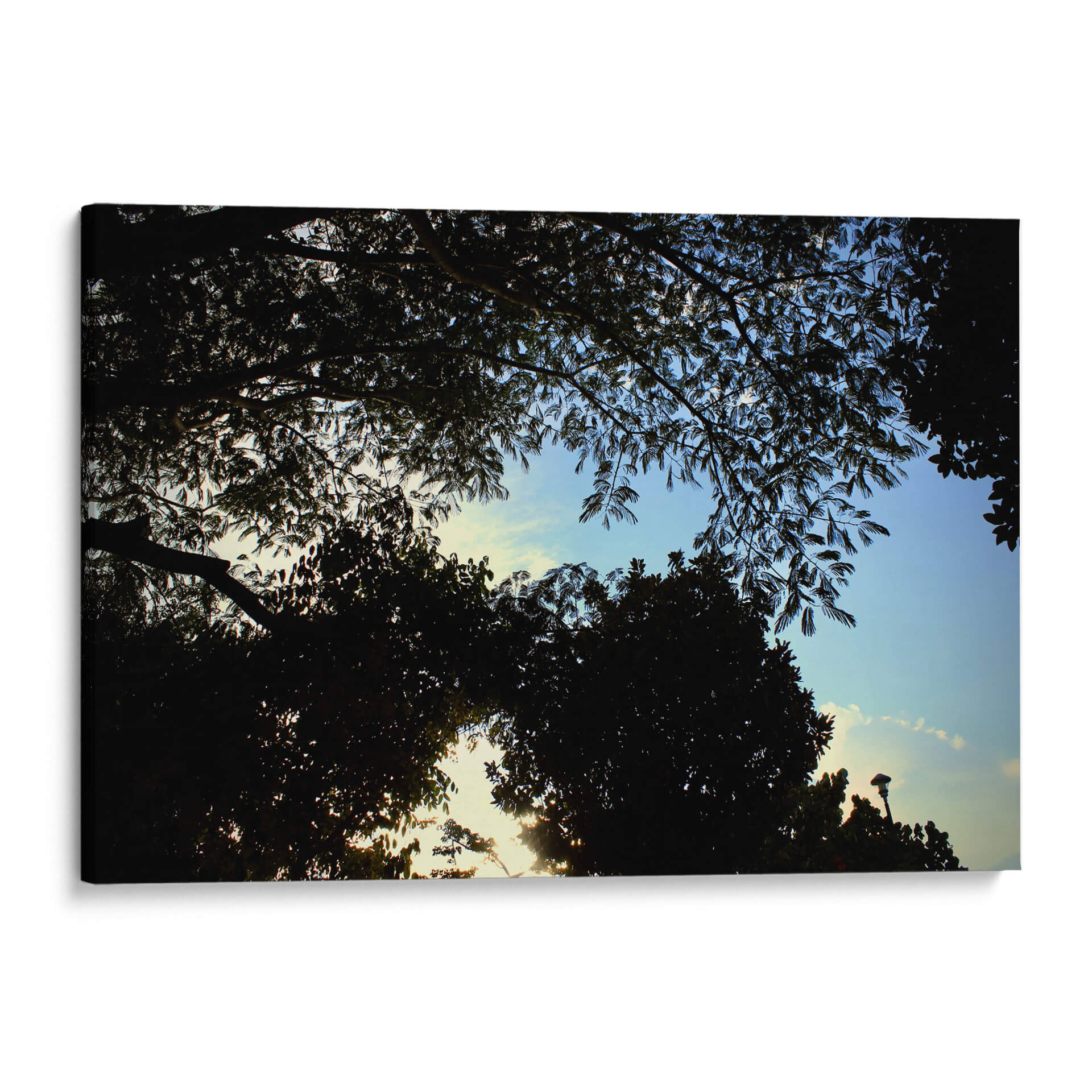 Captura la serenidad de un atardecer filtrándose a través de un dosel frondoso con este cautivador cuadro decorativo. La obra "Contraluz Sereno" del artista ECO presenta un juego de luces y sombras que evoca una profunda sensación de paz y conexión con la naturaleza. La paleta de colores, dominada por el azul sereno del cielo y los tonos oscuros de la vegetación silueteada, crea un ambiente relajante y contemplativo. Las delicadas ramas y hojas se dibujan contra el cielo, invitando a la mirada a perderse en la profundidad y la textura de la escena. Este cuadro decorativo minimalista y evocador es ideal para añadir un toque de calma y sofisticación a cualquier espacio, desde una sala de estar moderna hasta un dormitorio acogedor u oficina. Su composición asimétrica y el contraste entre la luz cálida del sol poniente y las sombras profundas de los árboles generan un punto focal interesante que invita a la reflexión. Transforma tu hogar u oficina en un santuario de tranquilidad con esta pieza de arte de pared que celebra la belleza efímera de la naturaleza y la luz.