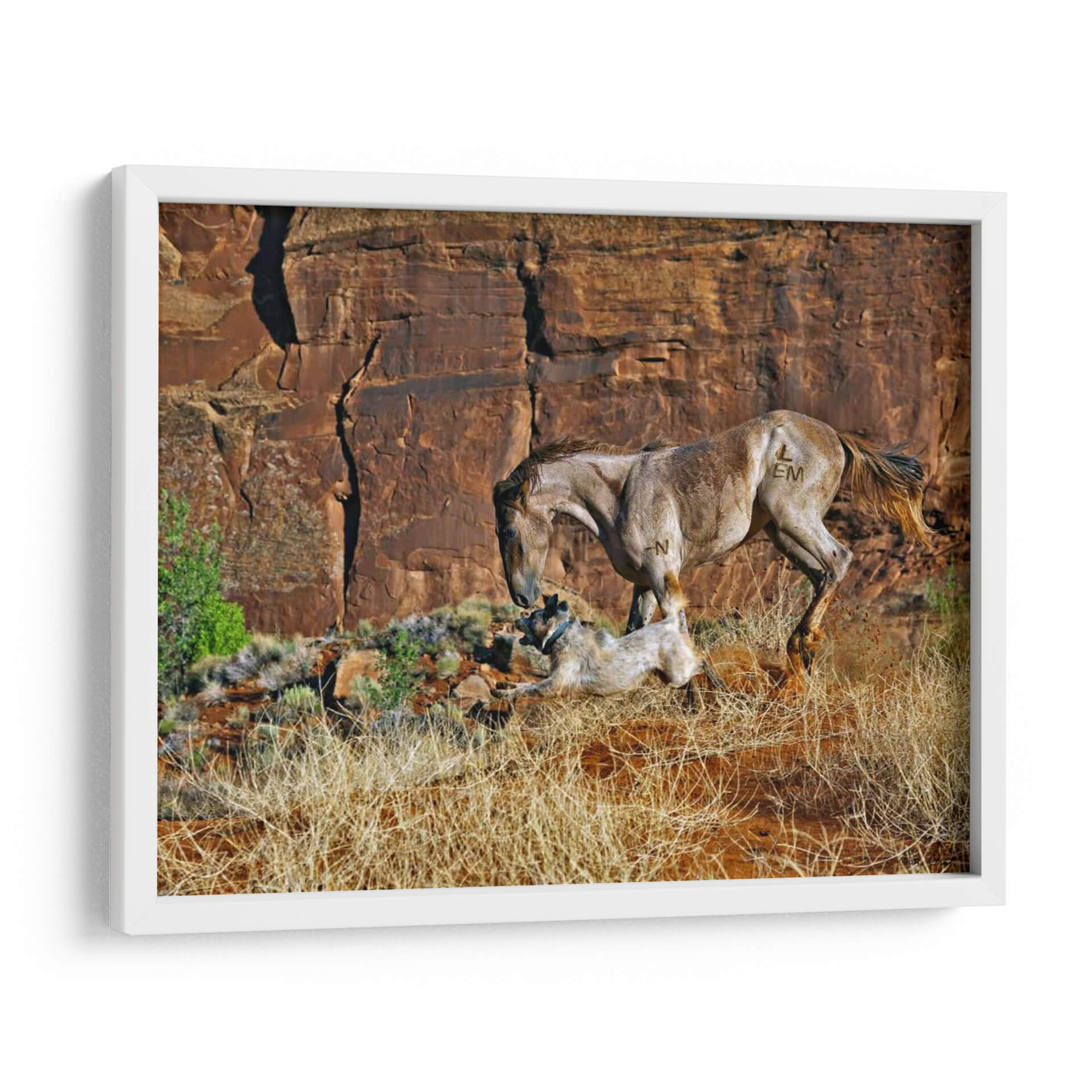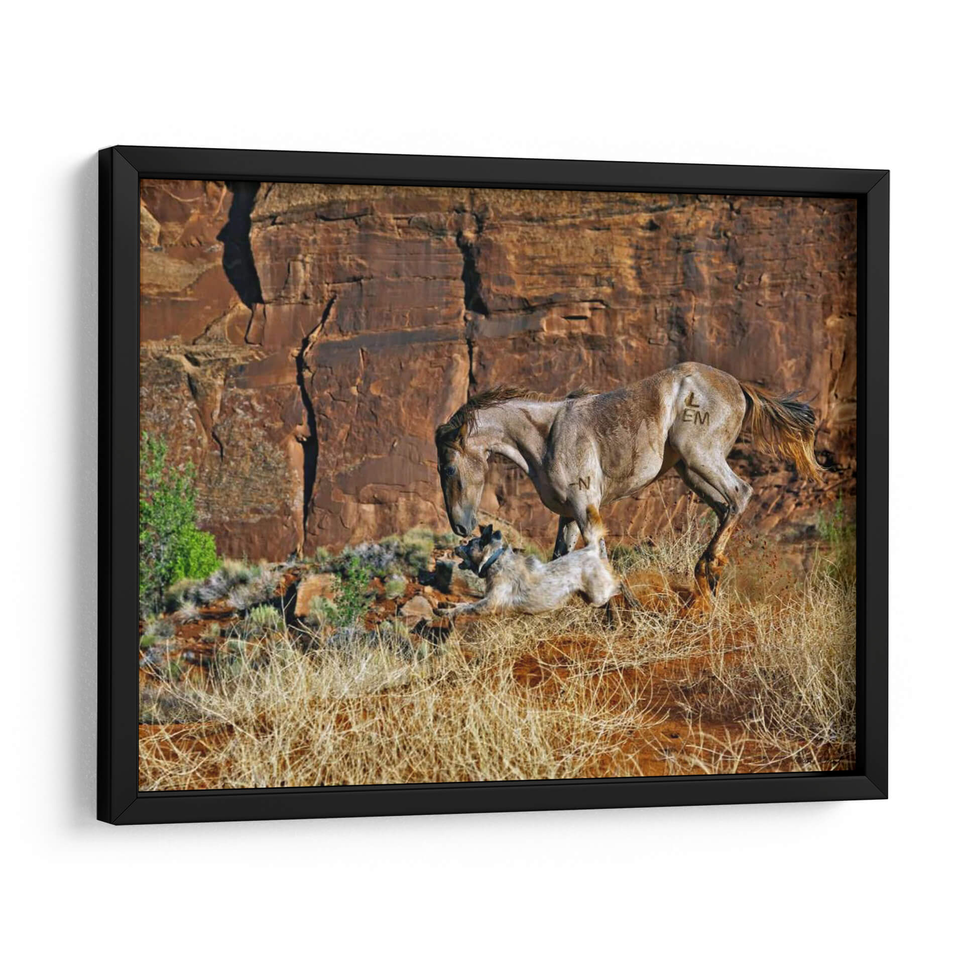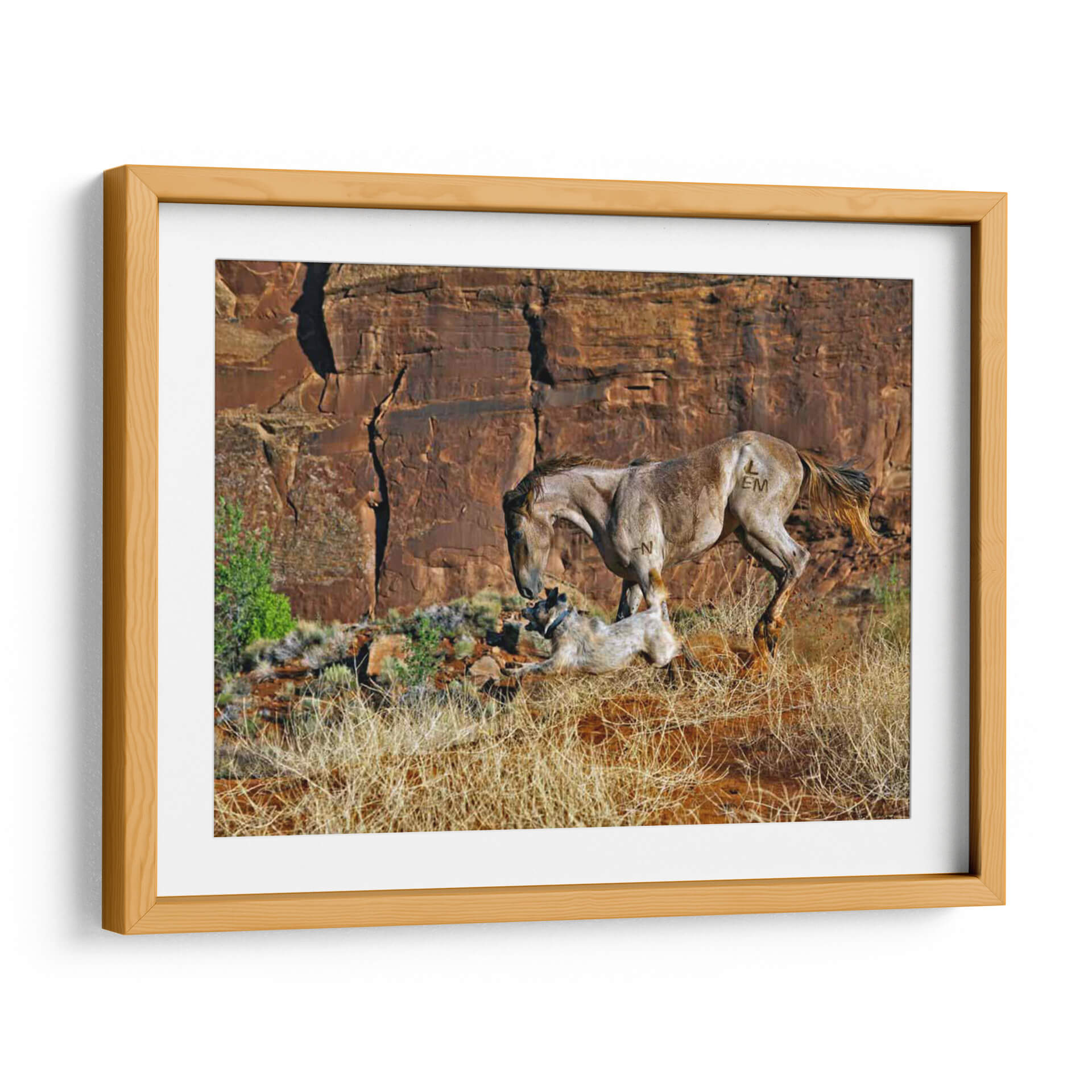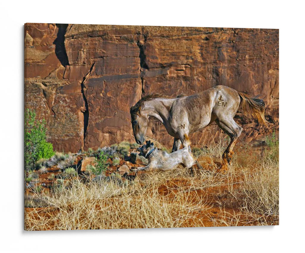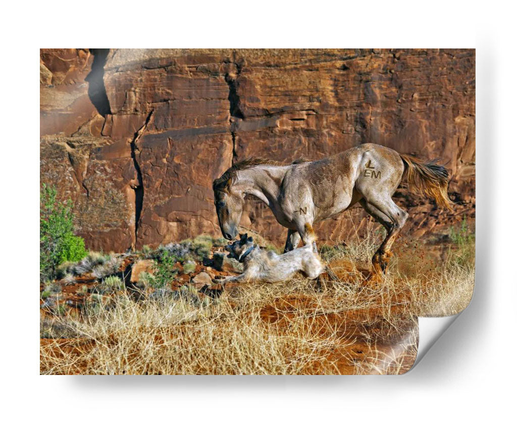 Captura la esencia indómita de la naturaleza con "Corriendo Caballos I" de David Drost, una obra de arte que evoca la fuerza y la libertad del espíritu ecuestre. Esta pieza maestra presenta un majestuoso caballo en pleno movimiento, su pelaje detallado y su musculatura definida transmiten una energía palpable. El entorno árido, con sus imponentes formaciones rocosas de tonos terrosos y la vegetación escasa y dorada por el sol, añade una atmósfera de resistencia y belleza salvaje. La composición dinámica, centrada en la interacción entre el caballo y el paisaje, invita a la contemplación de la conexión entre los animales y su hábitat natural. La paleta de colores, dominada por ocres, marrones y verdes secos, crea un ambiente cálido y terroso, perfecto para añadir un toque de carácter rústico y natural a cualquier espacio. Ideal para salones, estudios o entradas que busquen una declaración visual potente y evocadora, este cuadro decorativo es una ventana a la majestuosidad de la vida salvaje. Integra elementos naturales y una narrativa visual que resonará con los amantes de los animales y la estética contemporánea.
