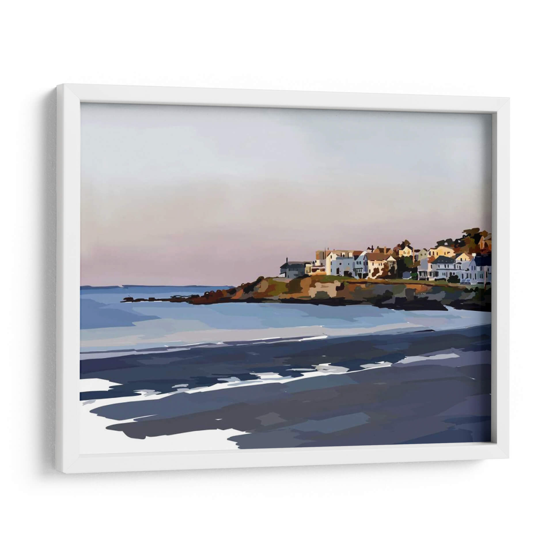 Sumérgete en la serena belleza de "Costa Pacífica", una obra de arte contemporáneo que captura la esencia de un idílico pueblo costero. Emily Kalina nos transporta a un paisaje costero donde el océano se encuentra con la tierra en una explosión de colores y formas. La paleta de colores se centra en tonos azules profundos del mar y los contrastes con los blancos puros de las casas, creando una atmósfera de tranquilidad y paz. El estilo semi-abstracto de Kalina invita a la contemplación, permitiendo que cada observador interprete la escena a través de su propia perspectiva. Las pinceladas audaces y la composición equilibrada hacen de este cuadro decorativo una pieza versátil, perfecta para añadir un toque de sofisticación y calma a cualquier hogar u oficina. Imagina este cuadro como el punto focal de tu sala de estar o un oasis de serenidad en tu dormitorio. "Costa Pacífica" no es solo una obra de arte, es una invitación a soñar con brisas marinas y atardeceres tranquilos, un recordatorio visual de la belleza serena que nos rodea. Ideal para amantes del arte costero, paisajes estilizados y decoraciones que buscan evocar emociones positivas y relajación.