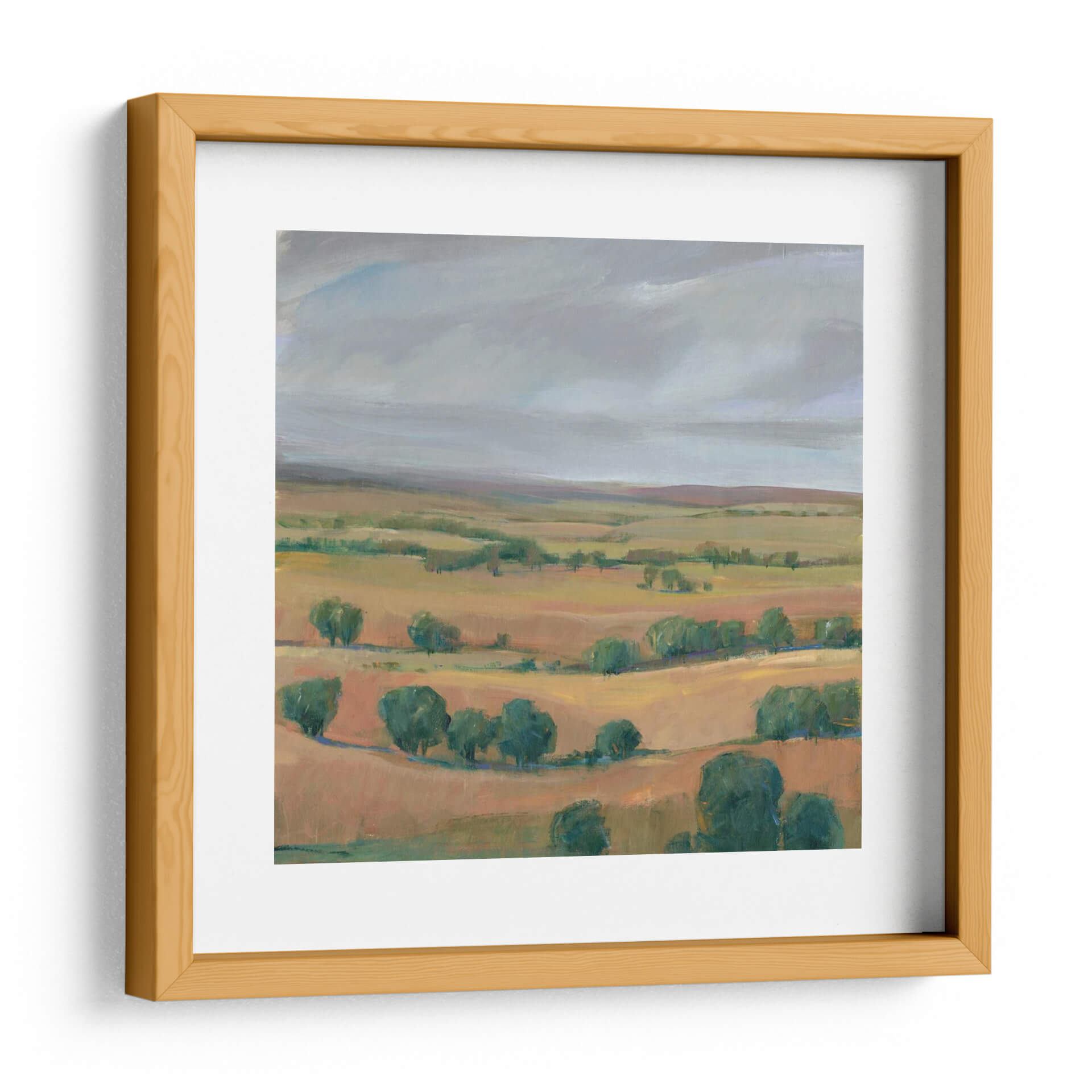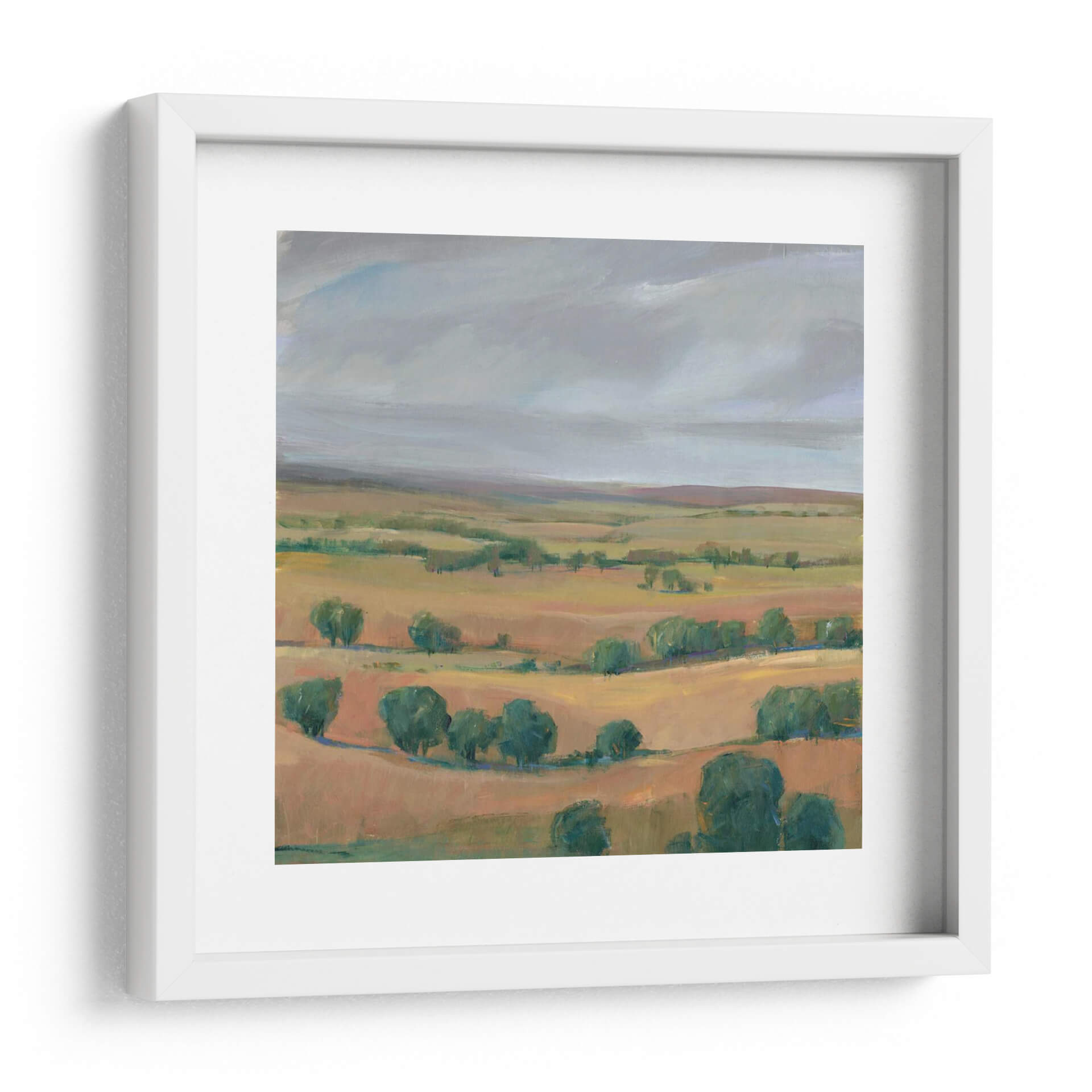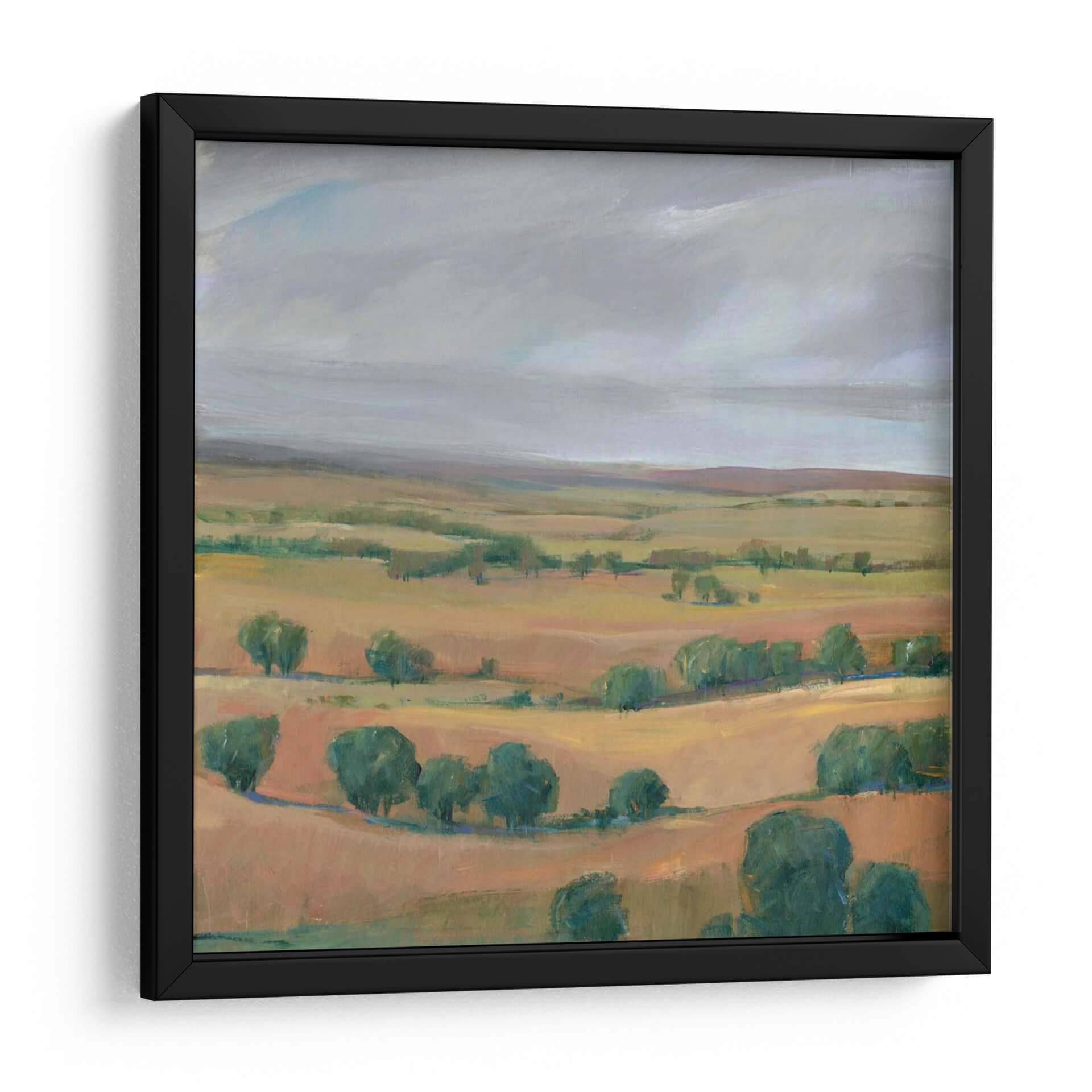 Sumérgete en la serena belleza de "Crianza de la Tormenta II", una cautivadora obra de arte de Tim O'Toole que captura la esencia de un paisaje rural bañado por la luz. Esta pieza evoca una atmósfera de calma y contemplación, con sus suaves ondulaciones de tierra en tonos ocres y verdes, salpicadas por la presencia pintoresca de árboles frondosos. La paleta de colores, dominada por cálidos ocres, terrosos y toques de verde, se complementa con un cielo nublado en tonos grises y azules pálidos, creando un ambiente introspectivo y a la vez esperanzador, como si la calma siguiera a la tormenta. El estilo impresionista, con pinceladas sueltas y expresivas, confiere a la obra una vitalidad única, invitando al espectador a perderse en la profundidad y la textura. Ideal para añadir un toque de naturaleza y tranquilidad a tu salón, dormitorio u oficina, este cuadro decorativo se convierte en un punto focal que respira serenidad y conexión con el entorno. "Crianza de la Tormenta II" es más que una simple imagen; es una ventana a un momento de paz y reflexión, perfecta para quienes buscan un arte que inspire y eleve su espacio vital. Descubre la magia de los paisajes que invitan a la introspección.