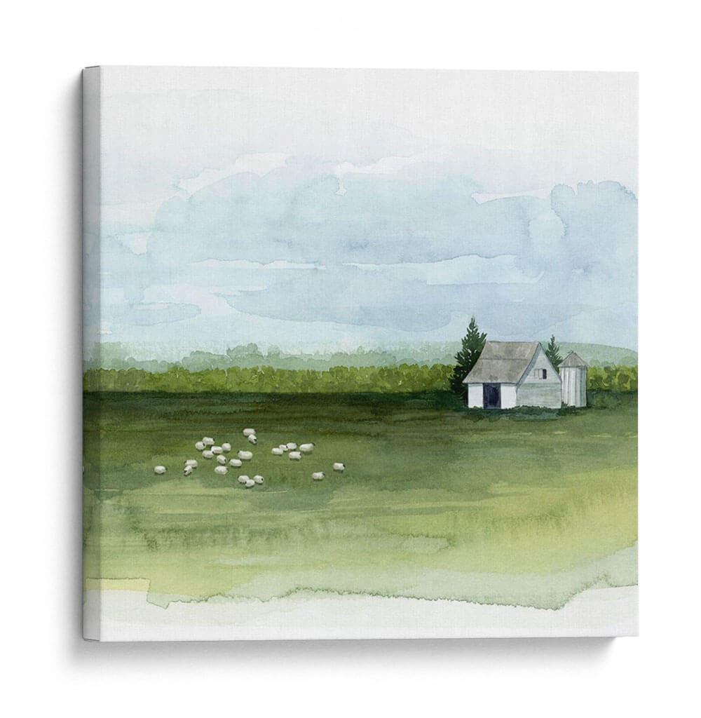 Sumérgete en la serenidad del campo con 'Delilahs Farm II', una obra de arte que captura la esencia de la vida rural con una delicadeza exquisita. Este cuadro decorativo, inspirado en la acuarela, presenta un paisaje idílico donde una pequeña granja blanca se alza entre colinas verdes ondulantes y un cielo suavemente nublado. Un rebaño de ovejas pacíficas pasta tranquilamente en el prado, añadiendo un toque de vida y movimiento a la escena. La paleta de colores, dominada por tonos verdes, azules pálidos y blancos cremosos, evoca una sensación de calma y paz inquebrantable. El estilo pictórico, con sus pinceladas sueltas y la transparencia del color, otorga a la pieza una atmósfera etérea y relajante, perfecta para crear un santuario de tranquilidad en tu hogar u oficina. Ideal para quienes buscan un lienzo decorativo que transmita serenidad, conexión con la naturaleza y un encanto rústico contemporáneo, esta pieza es un recordatorio visual de la belleza simple y la armonía del mundo natural.