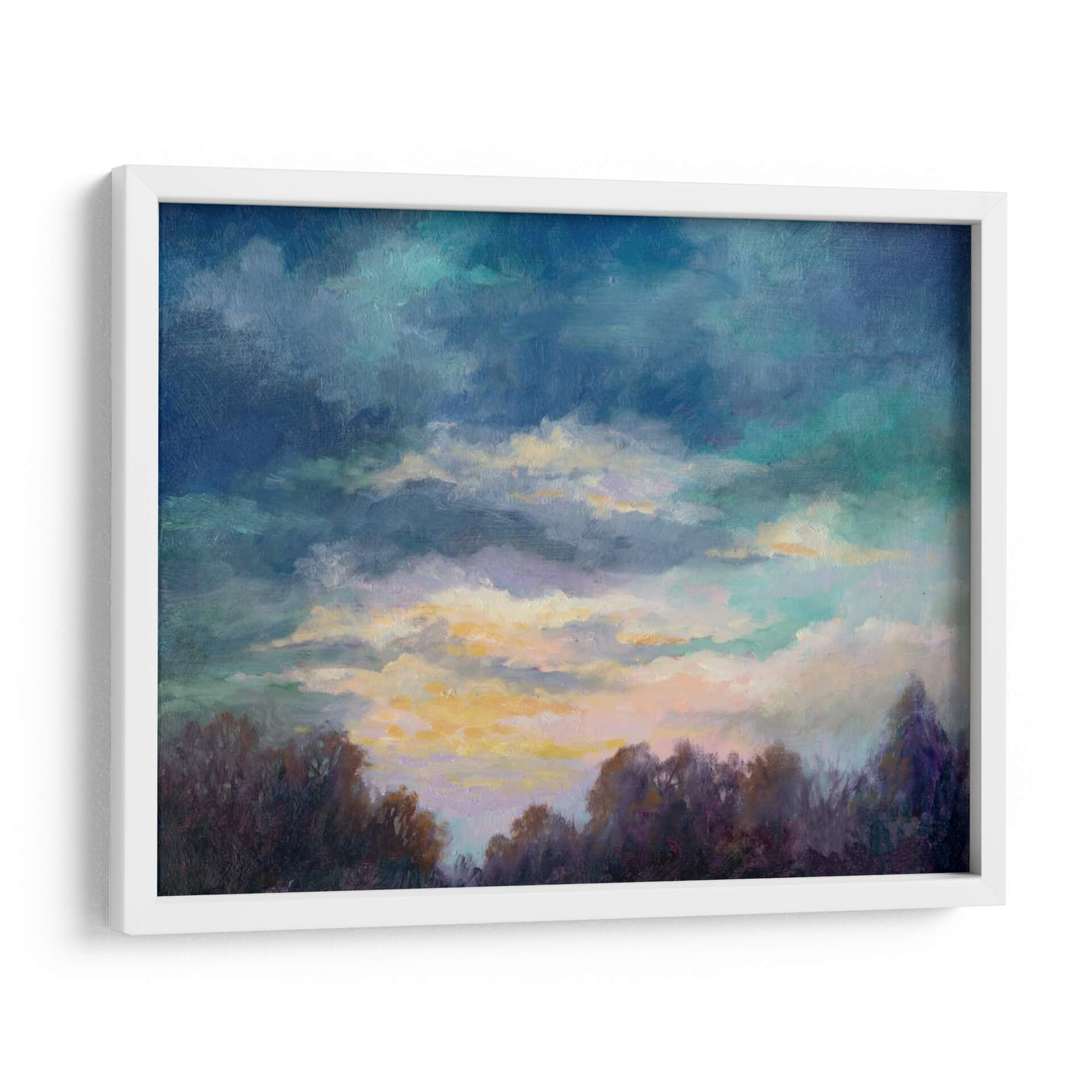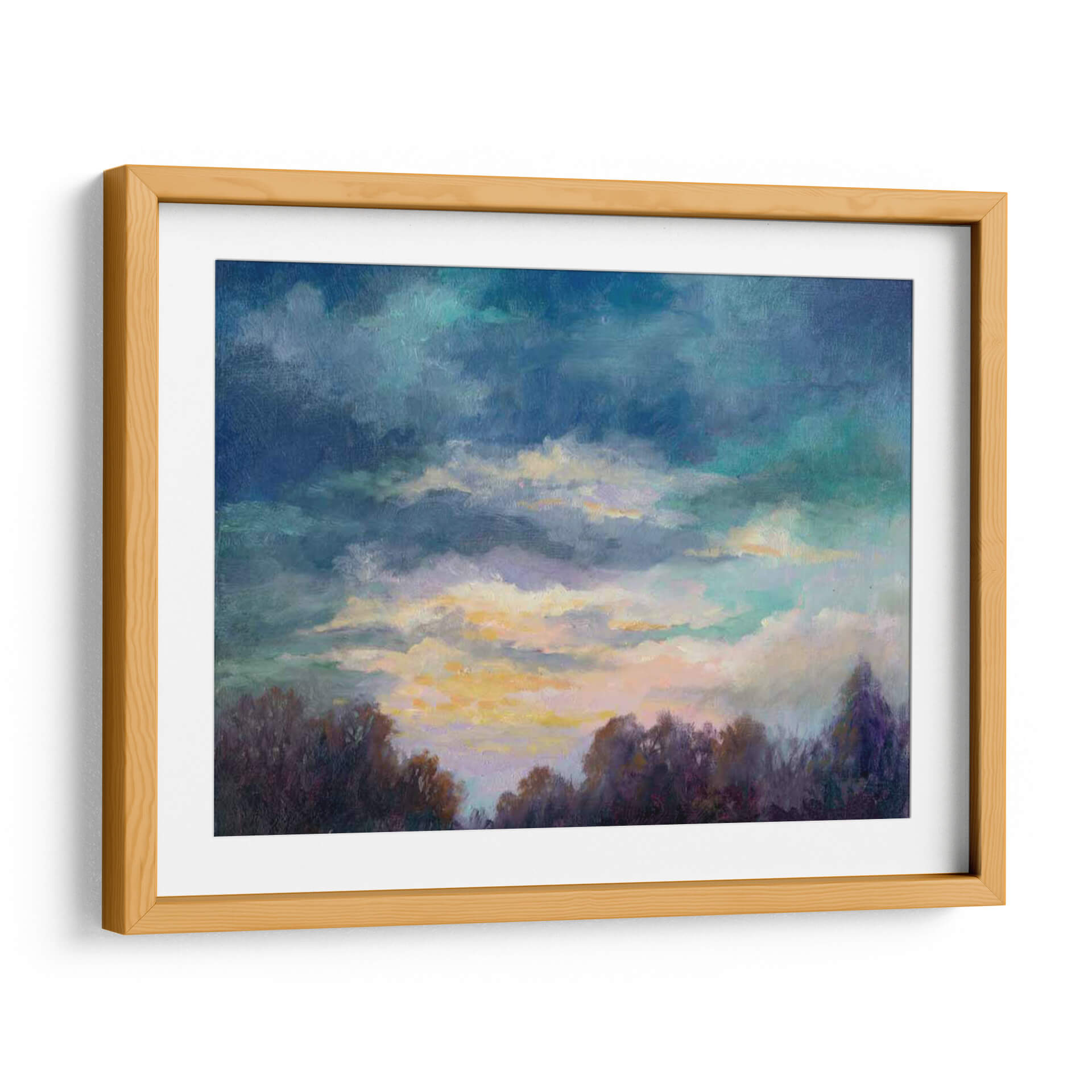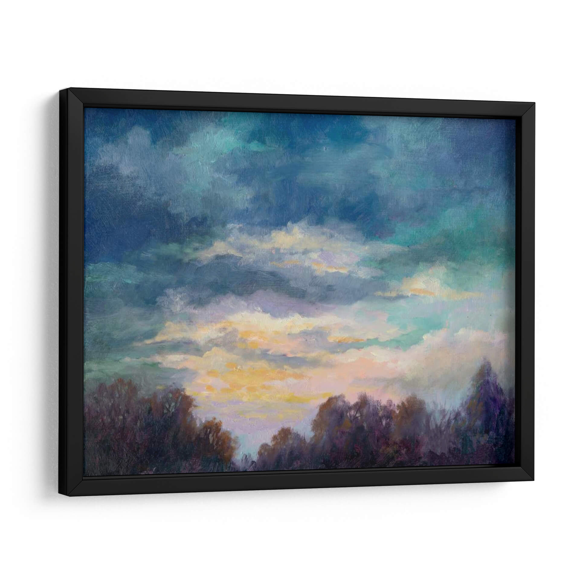 Captura la serenidad y la esperanza con "Después De La Tormenta", una obra de arte cautivadora que evoca la calma tras la adversidad. Esta pieza, pintada por Mary Jean Weber, se sumerge en un cielo dramático donde nubes densas y oscuras se disipan para revelar un resplandor dorado y tonos pastel de amanecer o atardecer. La pincelada impresionista y expresiva dota a la obra de una textura rica y una profundidad emocional, invitando a la contemplación. En la parte inferior, una silueta de árboles oscuros y frondosos ancla la composición, sugiriendo la naturaleza que renace o se recupera. Los azules profundos del cielo se mezclan con toques de verde azulado y turquesa, contrastando maravillosamente con los cálidos naranjas, amarillos y rosas del horizonte. Este cuadro decorativo es perfecto para crear un ambiente de paz y renovación en tu hogar u oficina. Imagina este lienzo en tu sala de estar, aportando un punto focal inspirador, o en tu dormitorio, promoviendo un espacio de tranquilidad. "Después De La Tormenta" no es solo una imagen, es una invitación a reflexionar sobre la resiliencia y la belleza que surge después de los desafíos.