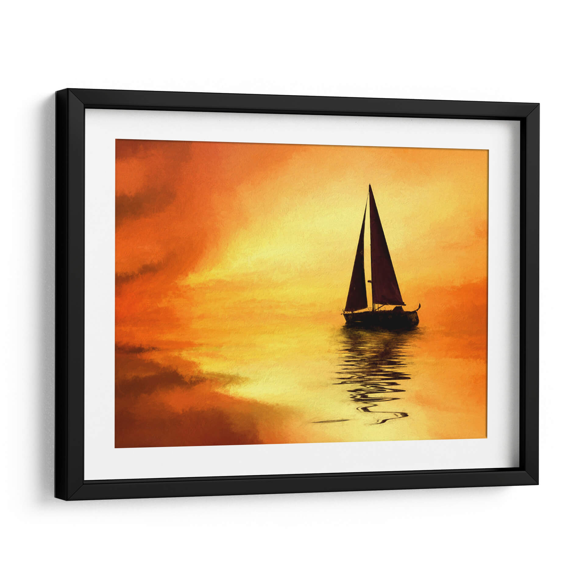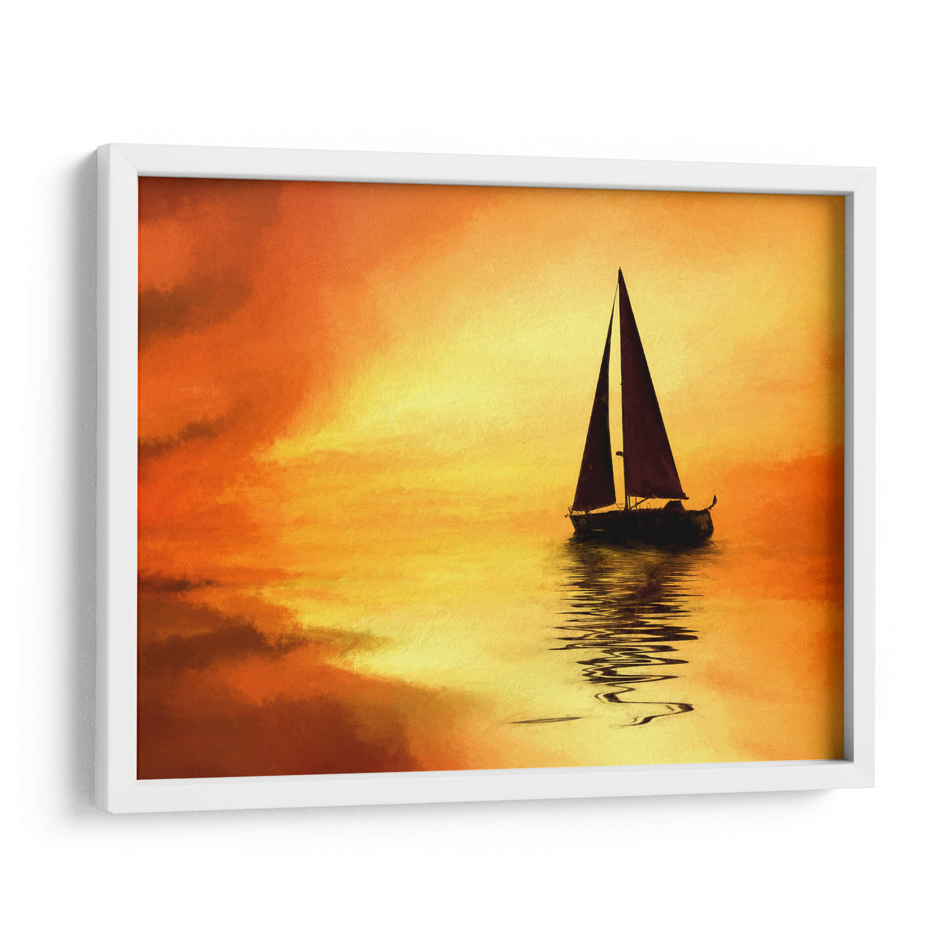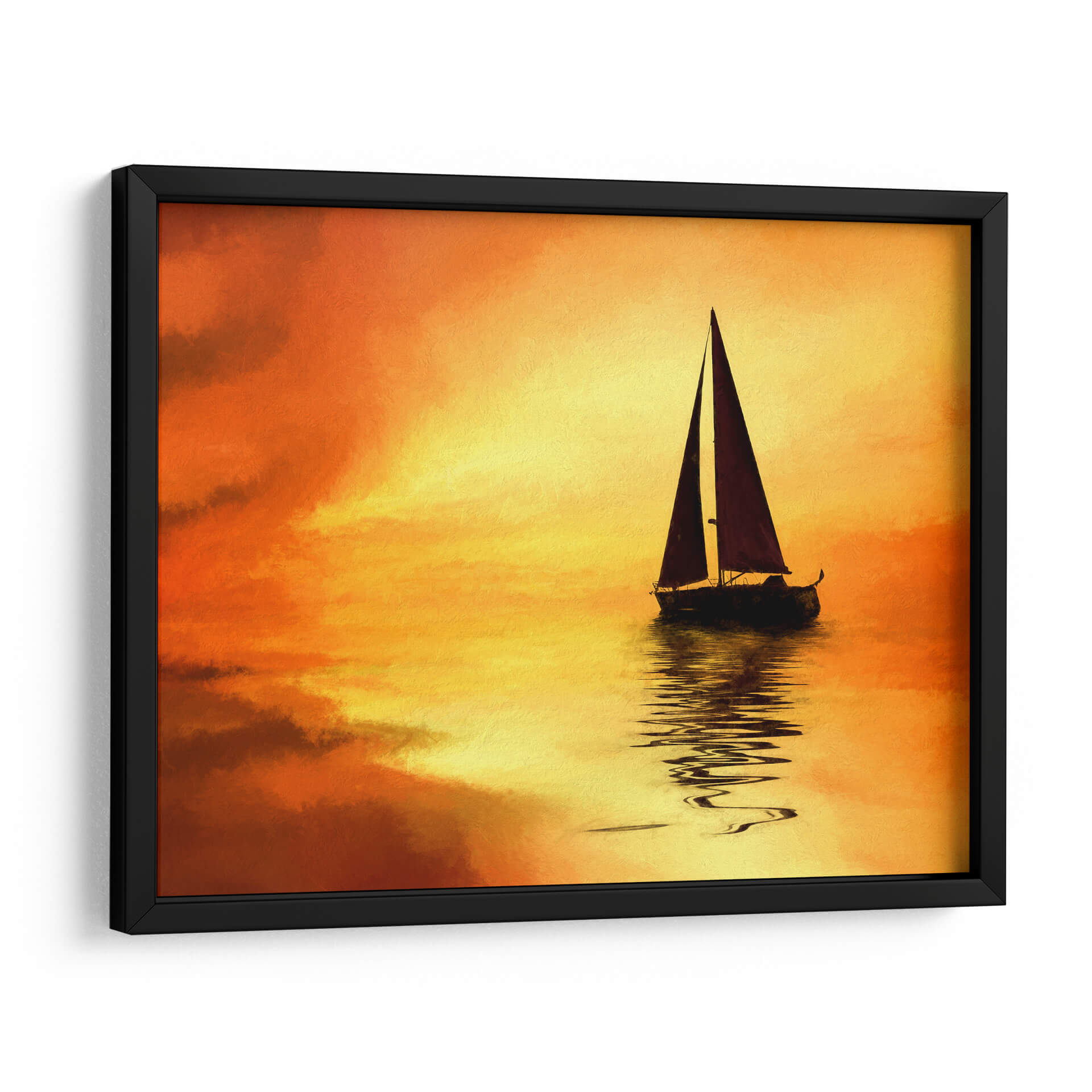 Embárquese en un viaje visual con "El Mar 10", una cautivadora obra de Marcos Rodríguez que evoca la serenidad y la majestuosidad del océano al atardecer. Los intensos tonos naranjas y amarillos del cielo se funden con las tranquilas aguas, creando un espectáculo de luz y color que invita a la contemplación. Una silueta oscura de un velero solitario navega plácidamente, su reflejo danzando sobre la superficie, añadiendo un toque de misterio y aventura a la escena. La pincelada, sugerente y expresiva, confiere a la obra un aire impresionista que realza la atmósfera onírica. Este cuadro decorativo es perfecto para infundir paz y calidez en cualquier estancia, desde un acogedor salón hasta un sereno dormitorio. Transforme su hogar en un santuario de tranquilidad y belleza con esta pieza única, ideal para amantes de la naturaleza y del arte contemporáneo que buscan añadir un elemento inspirador y lleno de vida a su decoración.