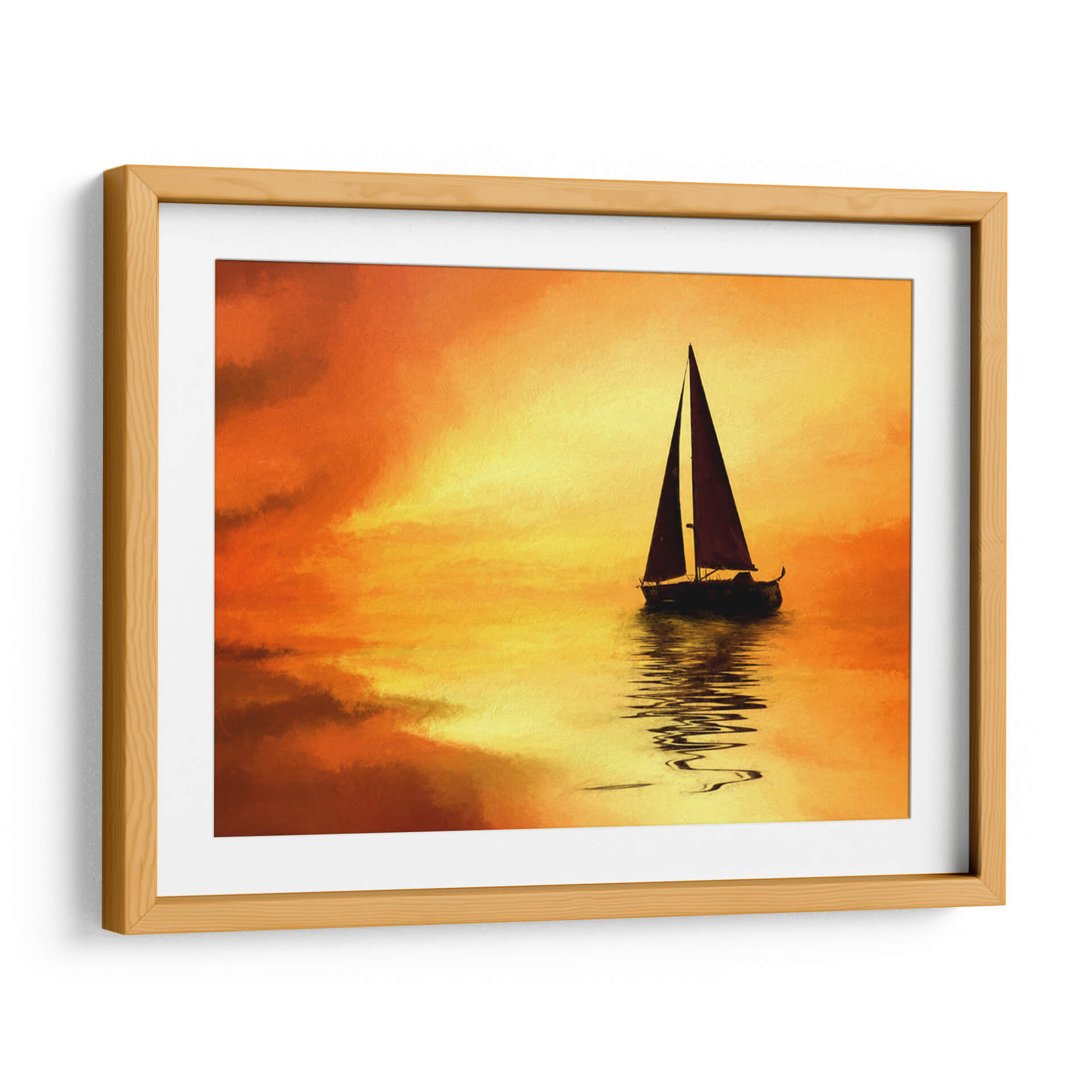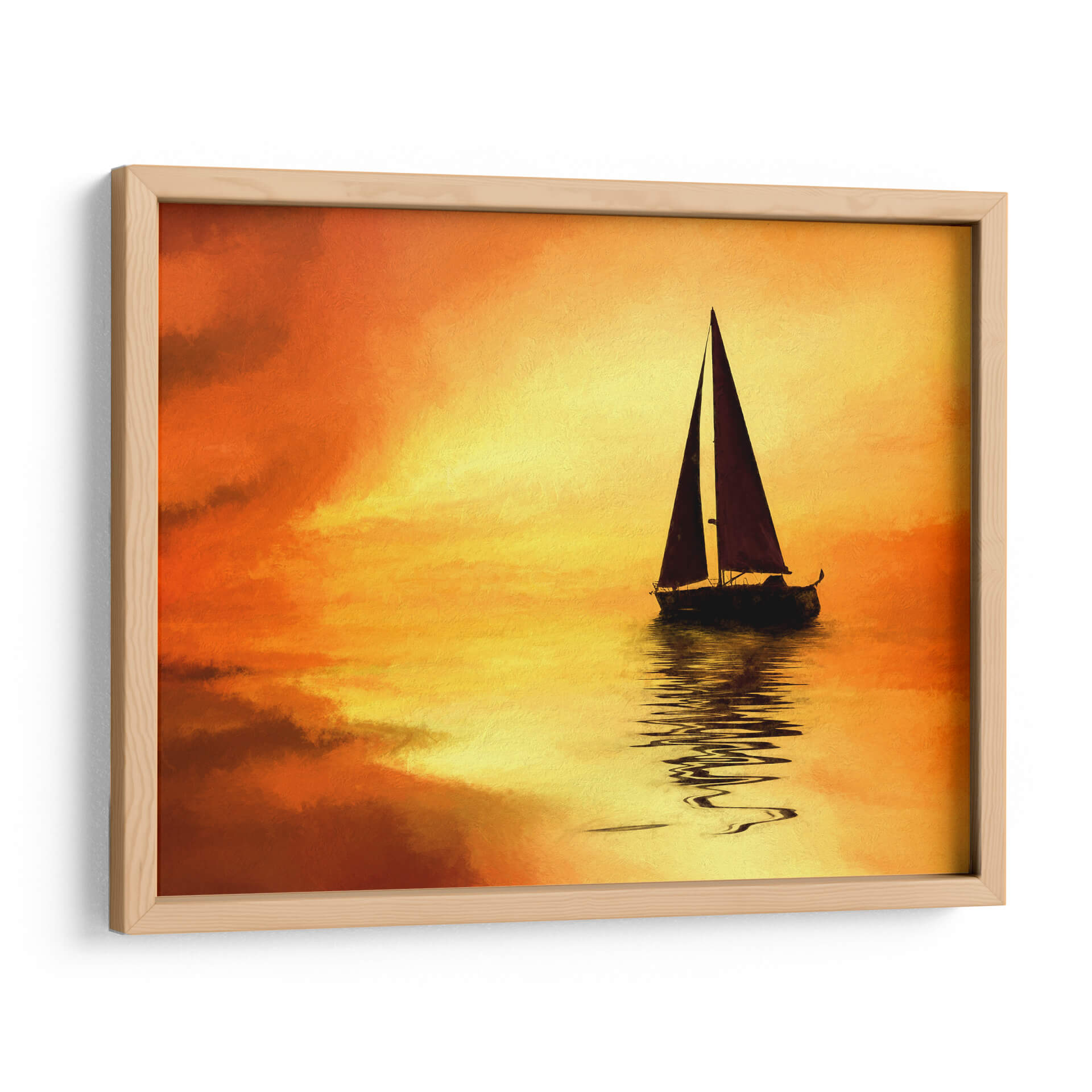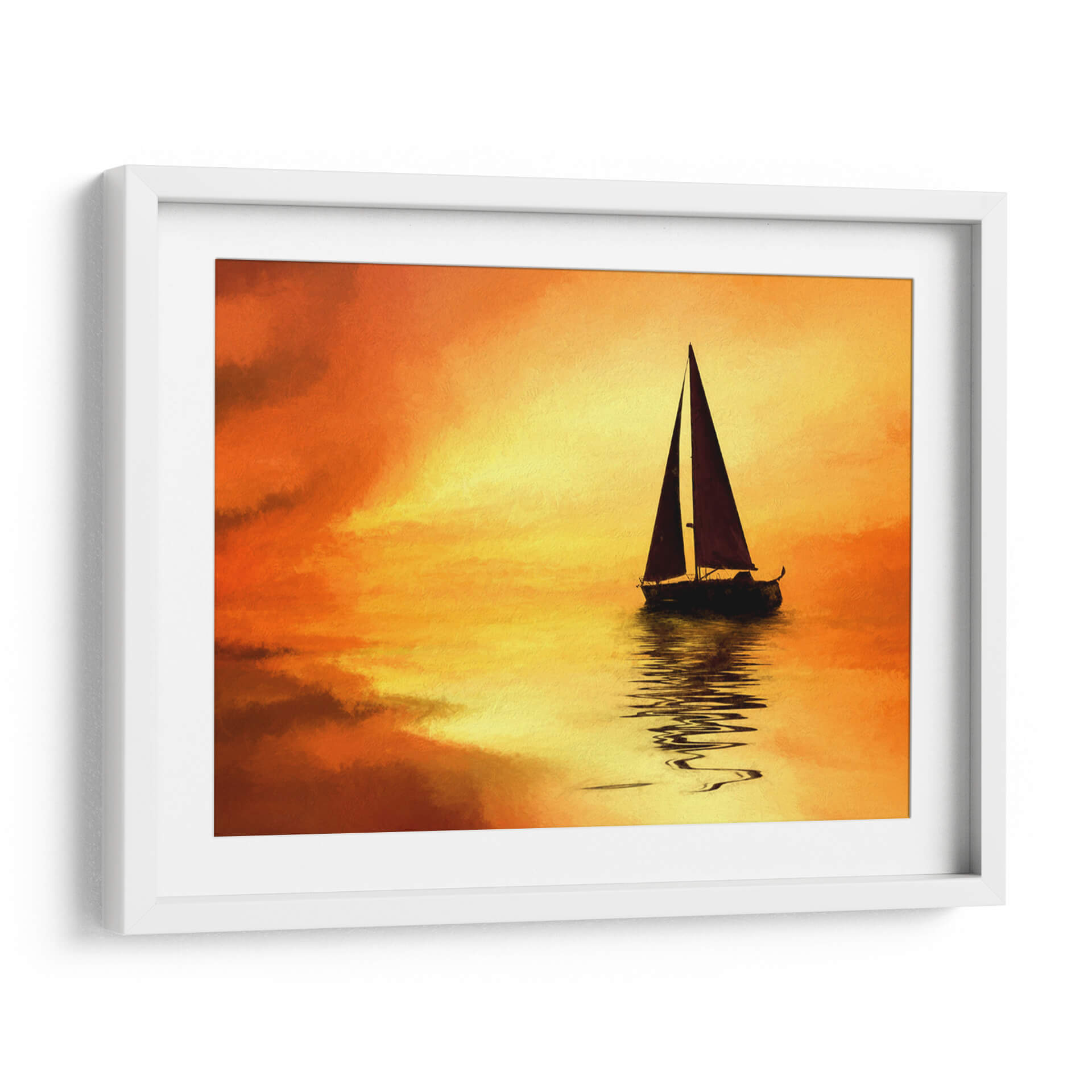 Embárquese en un viaje visual con "El Mar 10", una cautivadora obra de Marcos Rodríguez que evoca la serenidad y la majestuosidad del océano al atardecer. Los intensos tonos naranjas y amarillos del cielo se funden con las tranquilas aguas, creando un espectáculo de luz y color que invita a la contemplación. Una silueta oscura de un velero solitario navega plácidamente, su reflejo danzando sobre la superficie, añadiendo un toque de misterio y aventura a la escena. La pincelada, sugerente y expresiva, confiere a la obra un aire impresionista que realza la atmósfera onírica. Este cuadro decorativo es perfecto para infundir paz y calidez en cualquier estancia, desde un acogedor salón hasta un sereno dormitorio. Transforme su hogar en un santuario de tranquilidad y belleza con esta pieza única, ideal para amantes de la naturaleza y del arte contemporáneo que buscan añadir un elemento inspirador y lleno de vida a su decoración.