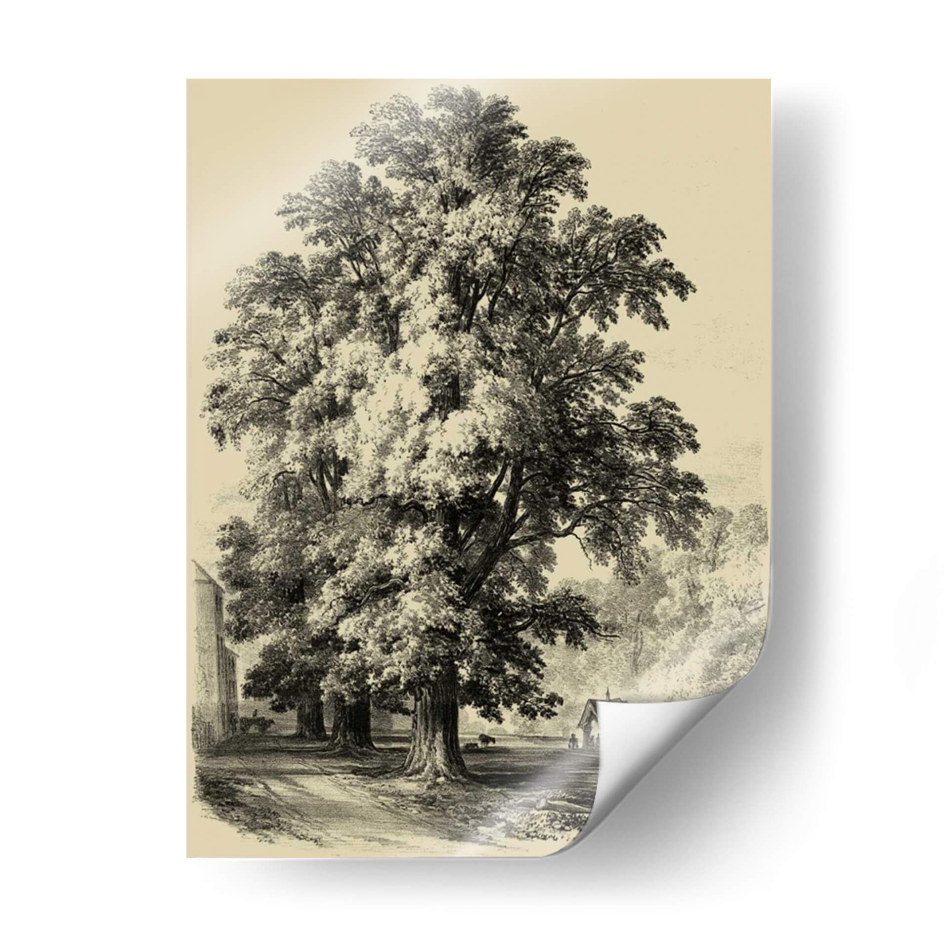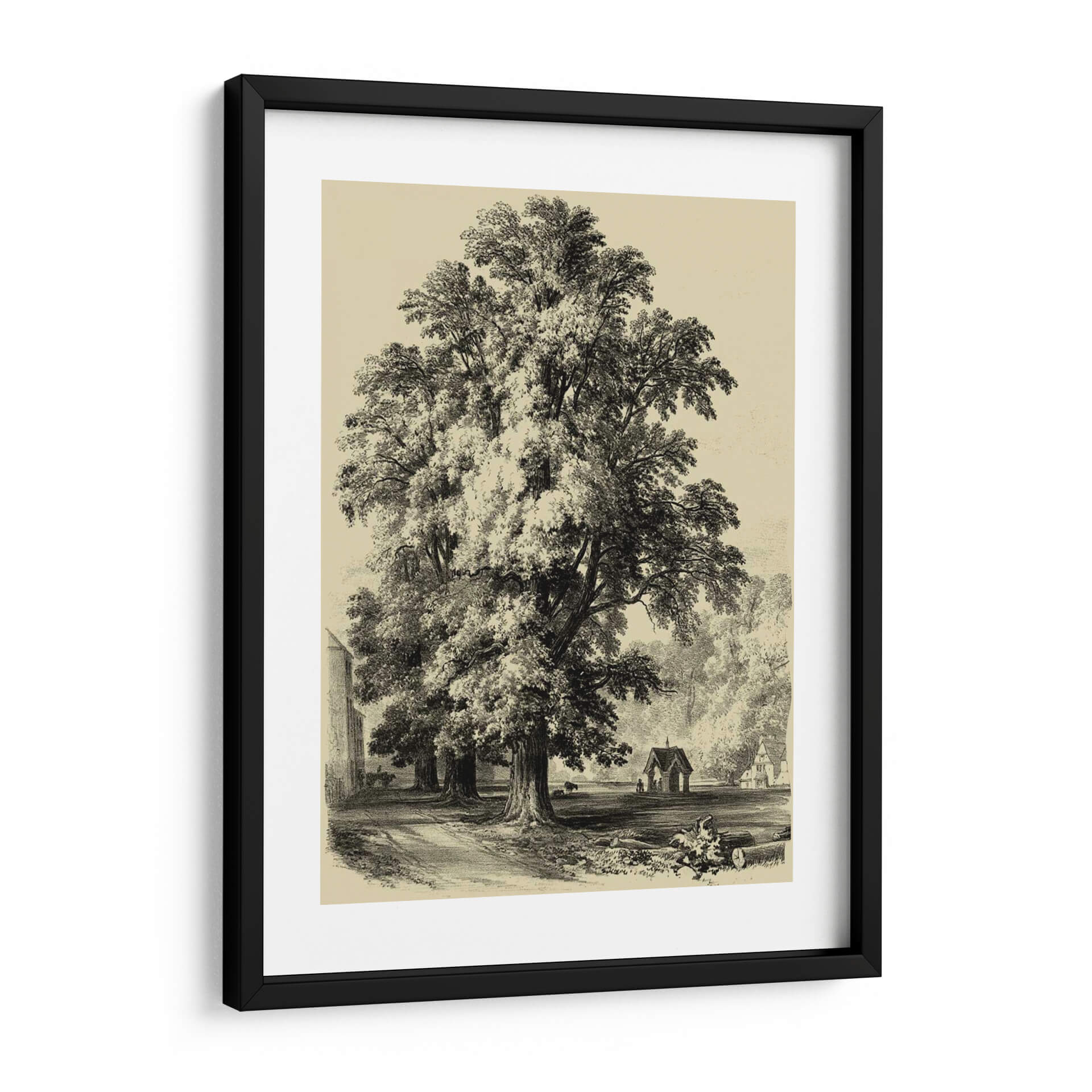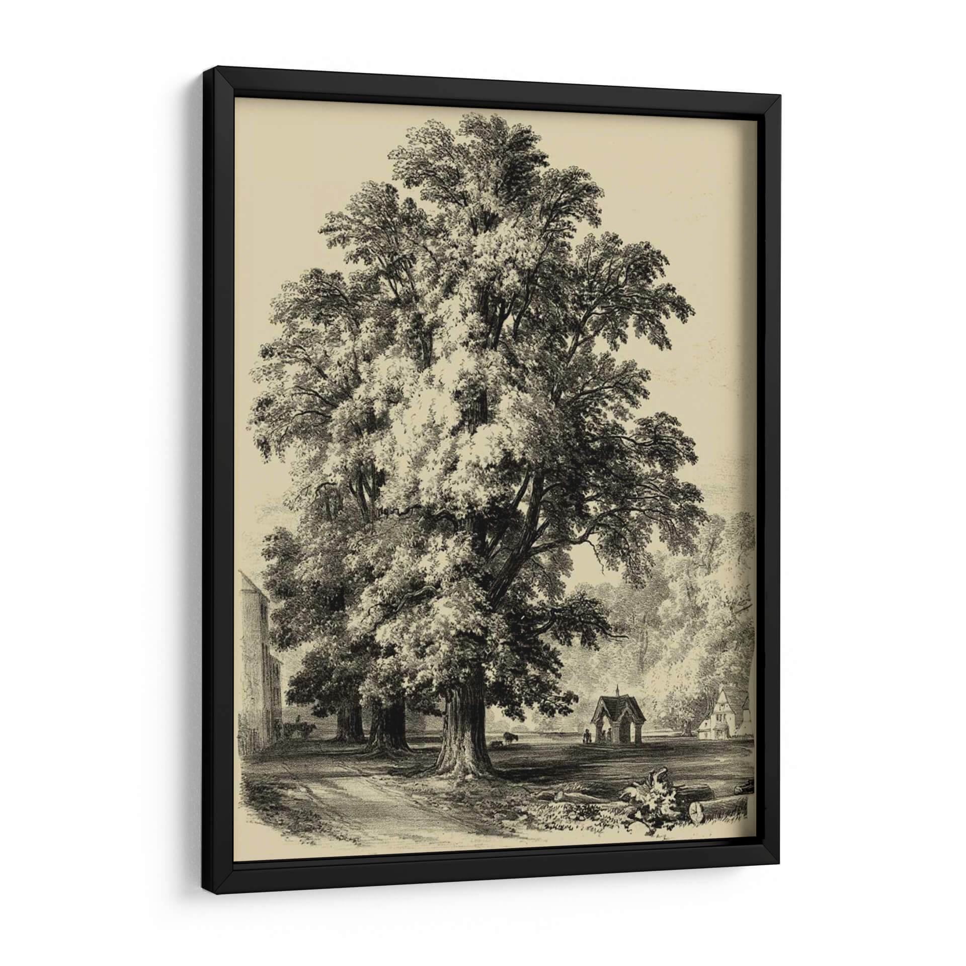 Sumérgete en la majestuosidad de la naturaleza con este impresionante cuadro decorativo de "El Olmo". La obra captura la esencia de un paisaje sereno y atemporal, dominado por un imponente árbol que se alza con gracia y fortaleza. La técnica de grabado, evocando un estilo clásico y detallado, aporta una profundidad y textura únicas a la escena. Los tonos sepia y blanco y negro crean una atmósfera de calma y nostalgia, perfecta para añadir un toque de sofisticación y serenidad a cualquier espacio. El juego de luces y sombras, resaltado por el sombreado minucioso, confiere un realismo cautivador a la obra. Ideal para salones, estudios u oficinas que buscan una pieza decorativa que inspire tranquilidad y conexión con la naturaleza. Este cuadro decorativo es una invitación a contemplar la belleza perdurable de los elementos naturales y la maestría del arte tradicional, convirtiéndose en un punto focal elegante y reflexivo en tu decoración.