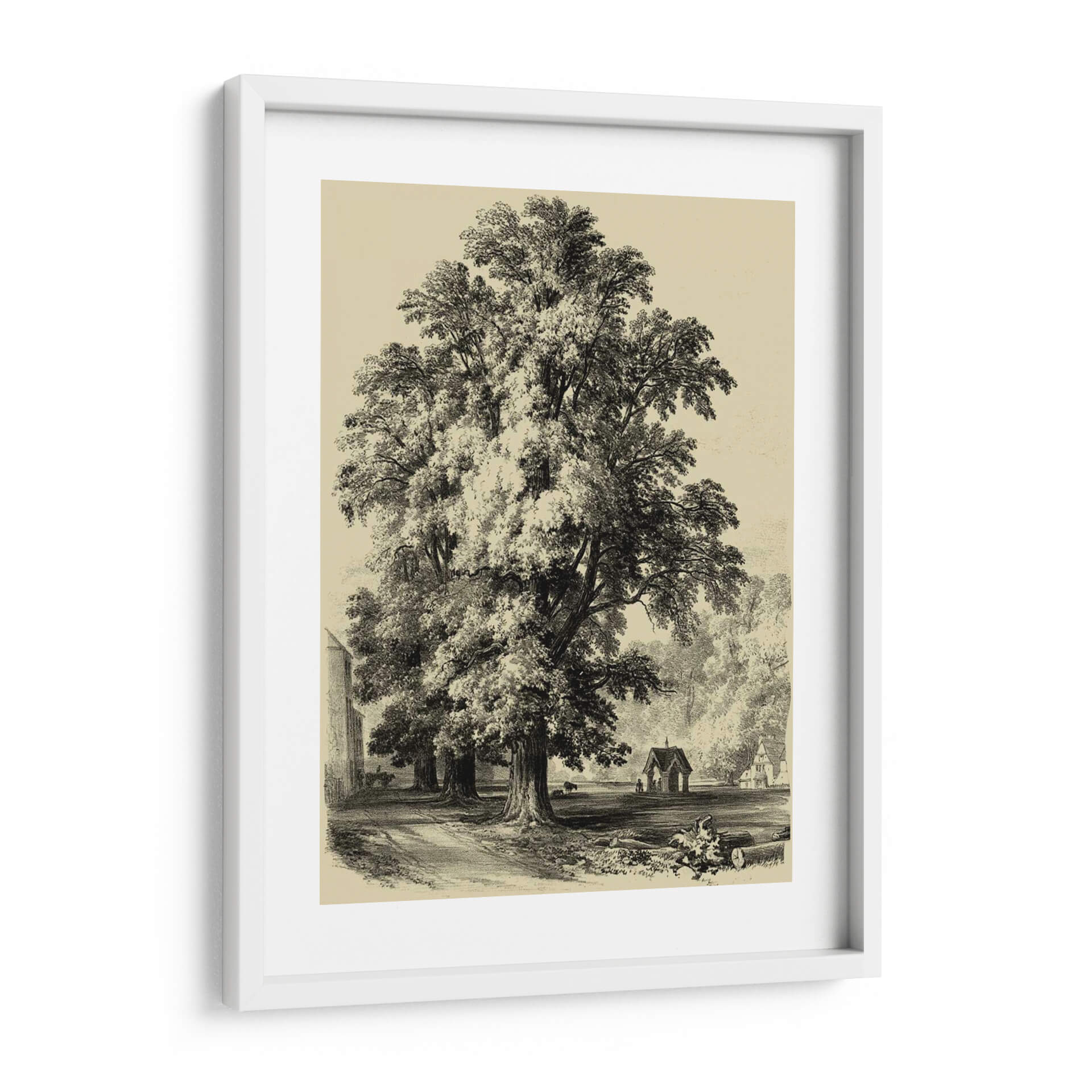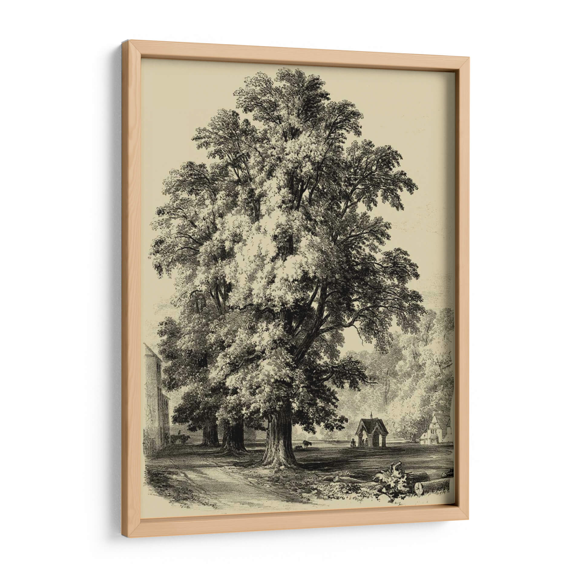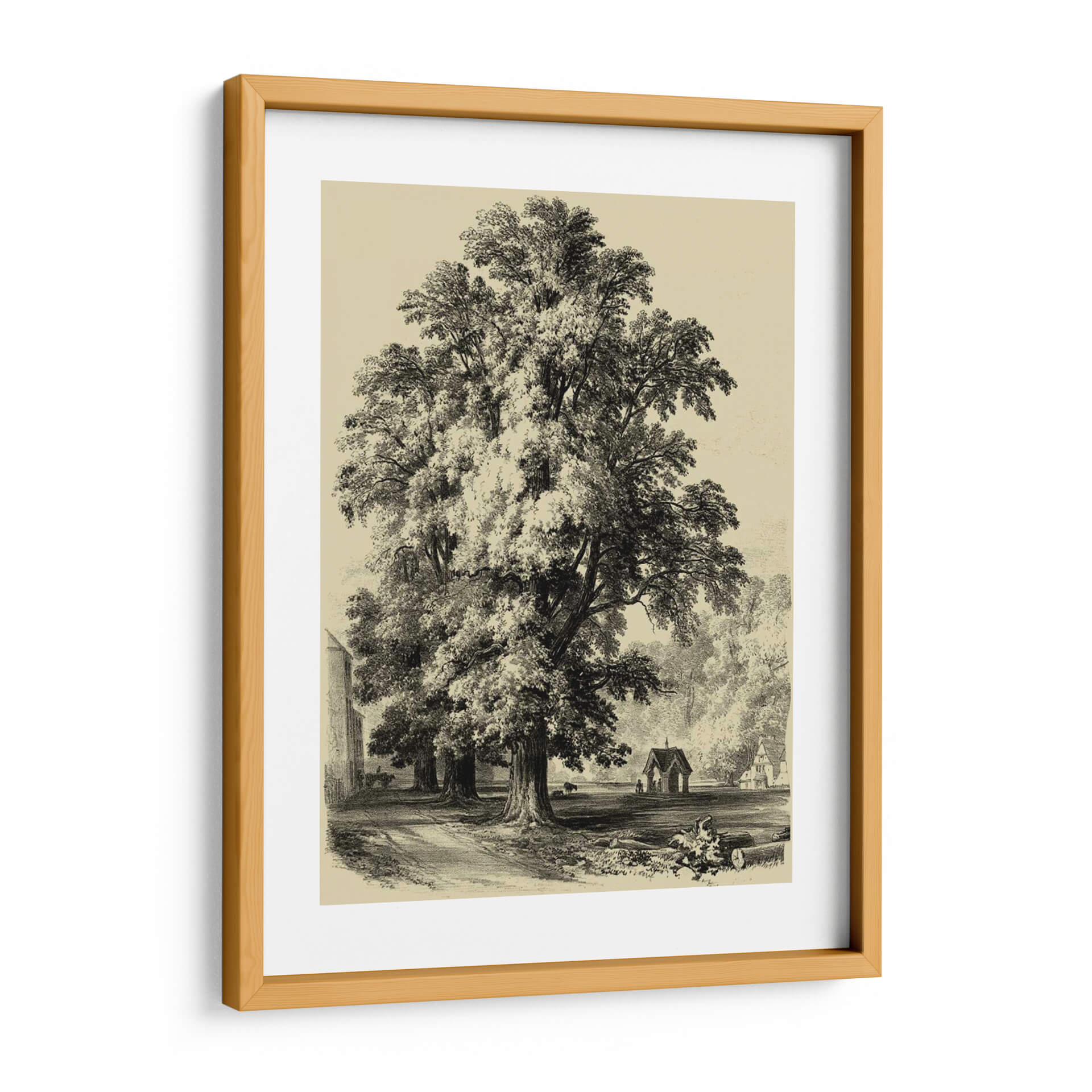 Sumérgete en la majestuosidad de la naturaleza con este impresionante cuadro decorativo de "El Olmo". La obra captura la esencia de un paisaje sereno y atemporal, dominado por un imponente árbol que se alza con gracia y fortaleza. La técnica de grabado, evocando un estilo clásico y detallado, aporta una profundidad y textura únicas a la escena. Los tonos sepia y blanco y negro crean una atmósfera de calma y nostalgia, perfecta para añadir un toque de sofisticación y serenidad a cualquier espacio. El juego de luces y sombras, resaltado por el sombreado minucioso, confiere un realismo cautivador a la obra. Ideal para salones, estudios u oficinas que buscan una pieza decorativa que inspire tranquilidad y conexión con la naturaleza. Este cuadro decorativo es una invitación a contemplar la belleza perdurable de los elementos naturales y la maestría del arte tradicional, convirtiéndose en un punto focal elegante y reflexivo en tu decoración.