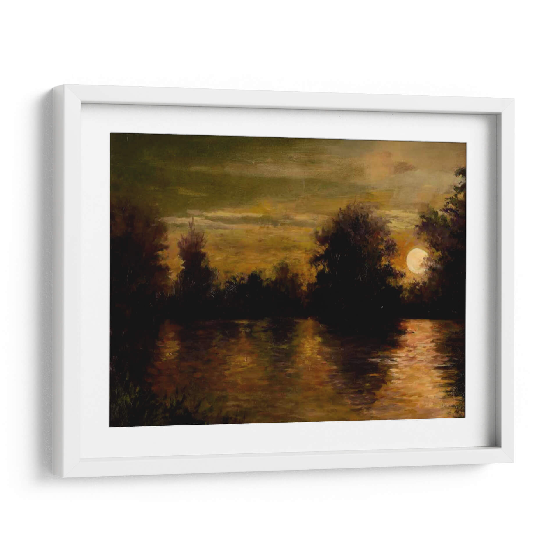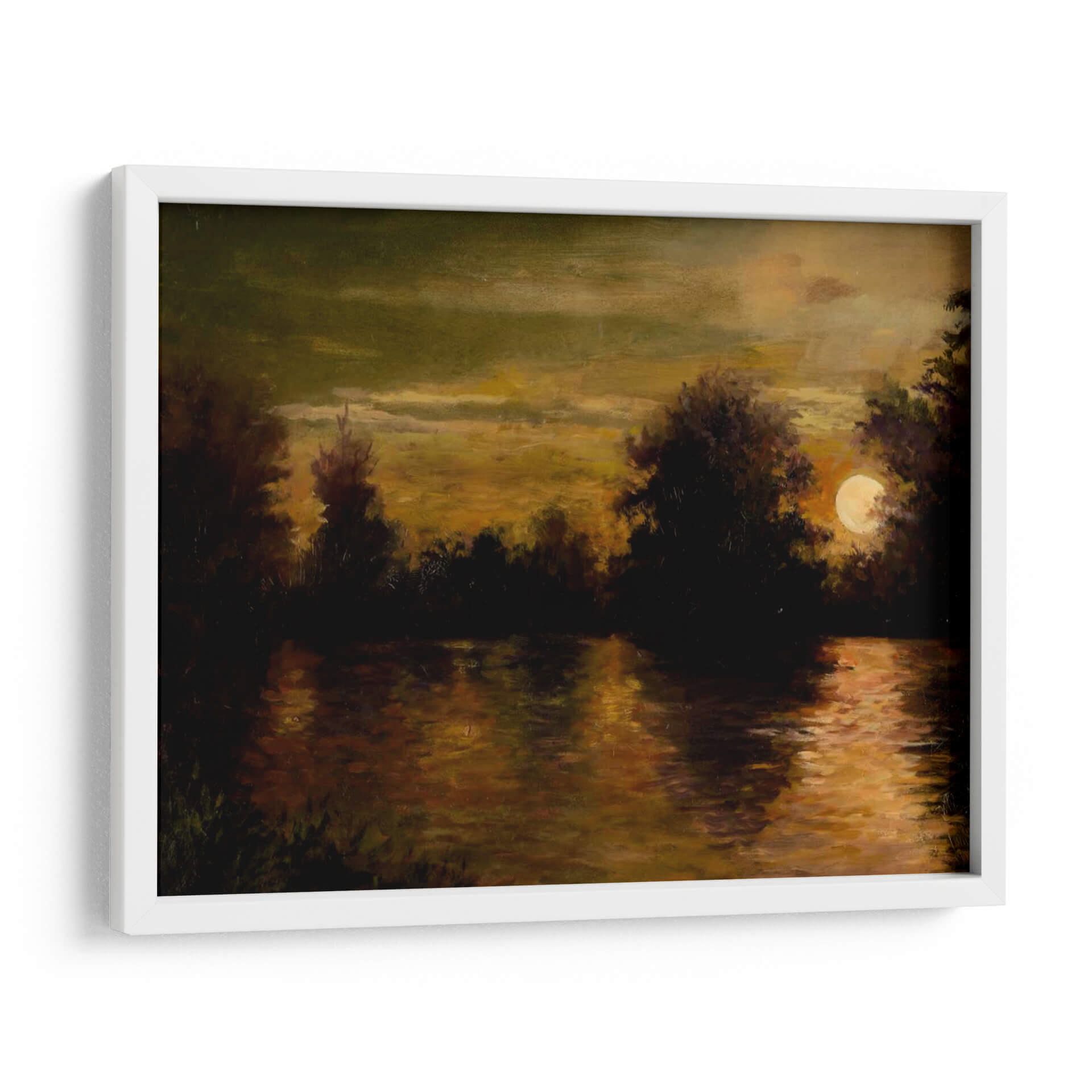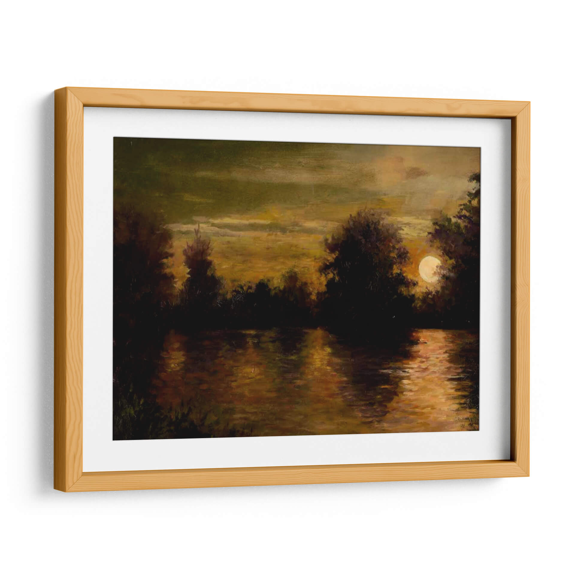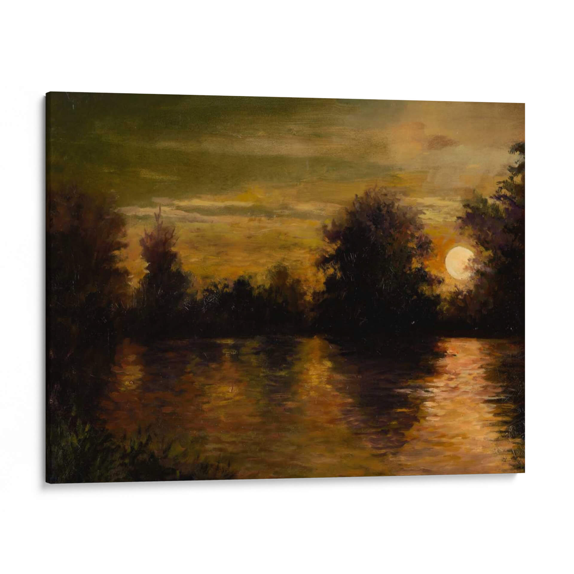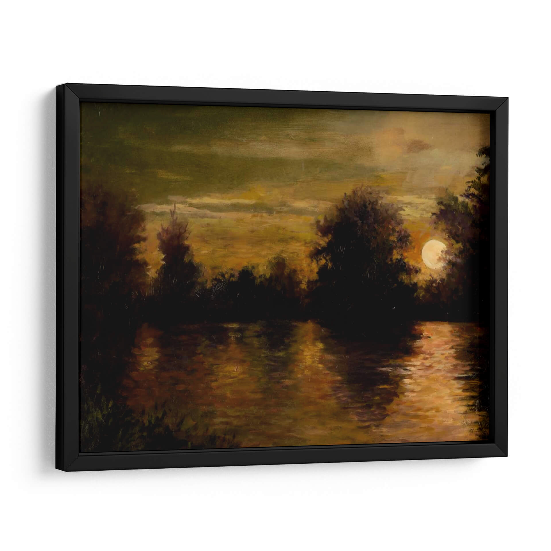 Sumérgete en la serena belleza de "El Resplandor De Ajuste", una cautivadora obra de arte de Mary Jean Weber que captura la magia de un atardecer o amanecer sobre un cuerpo de agua tranquilo. La luz dorada y cálida se filtra a través de un dosel de árboles frondosos, creando reflejos vibrantes y danzantes en la superficie del agua. La paleta de colores, dominada por tonos ámbar, ocres y verdes profundos, evoca una sensación de paz y contemplación, transportándote a un momento de pura tranquilidad natural. El estilo impresionista de Weber añade una textura rica y una profundidad emocional a la escena, invitando a la reflexión y al deleite visual. Este cuadro decorativo es perfecto para añadir un toque de calidez y serenidad a tu sala de estar, dormitorio o estudio, transformando cualquier espacio en un refugio de paz. Descubre la armonía y la luz que esta pieza única puede aportar a tu hogar.