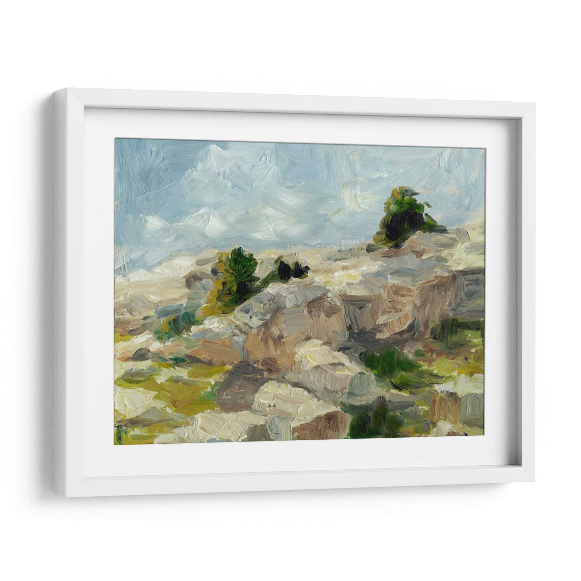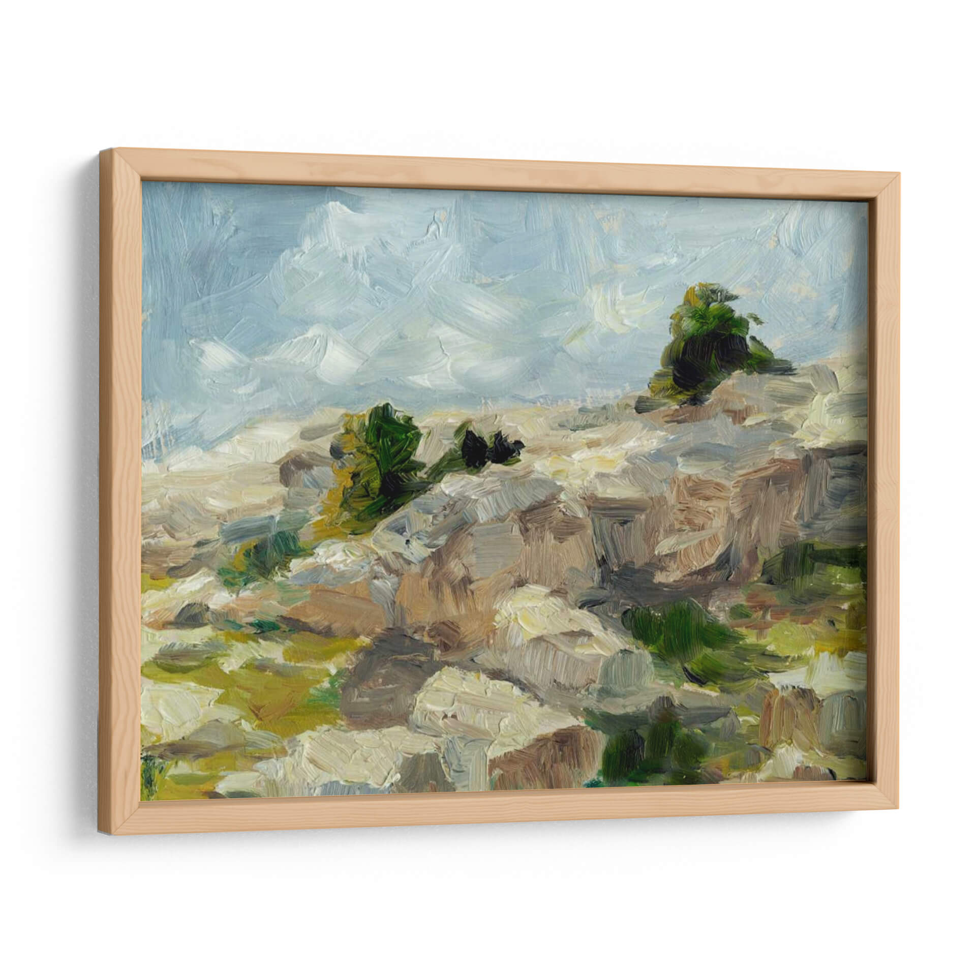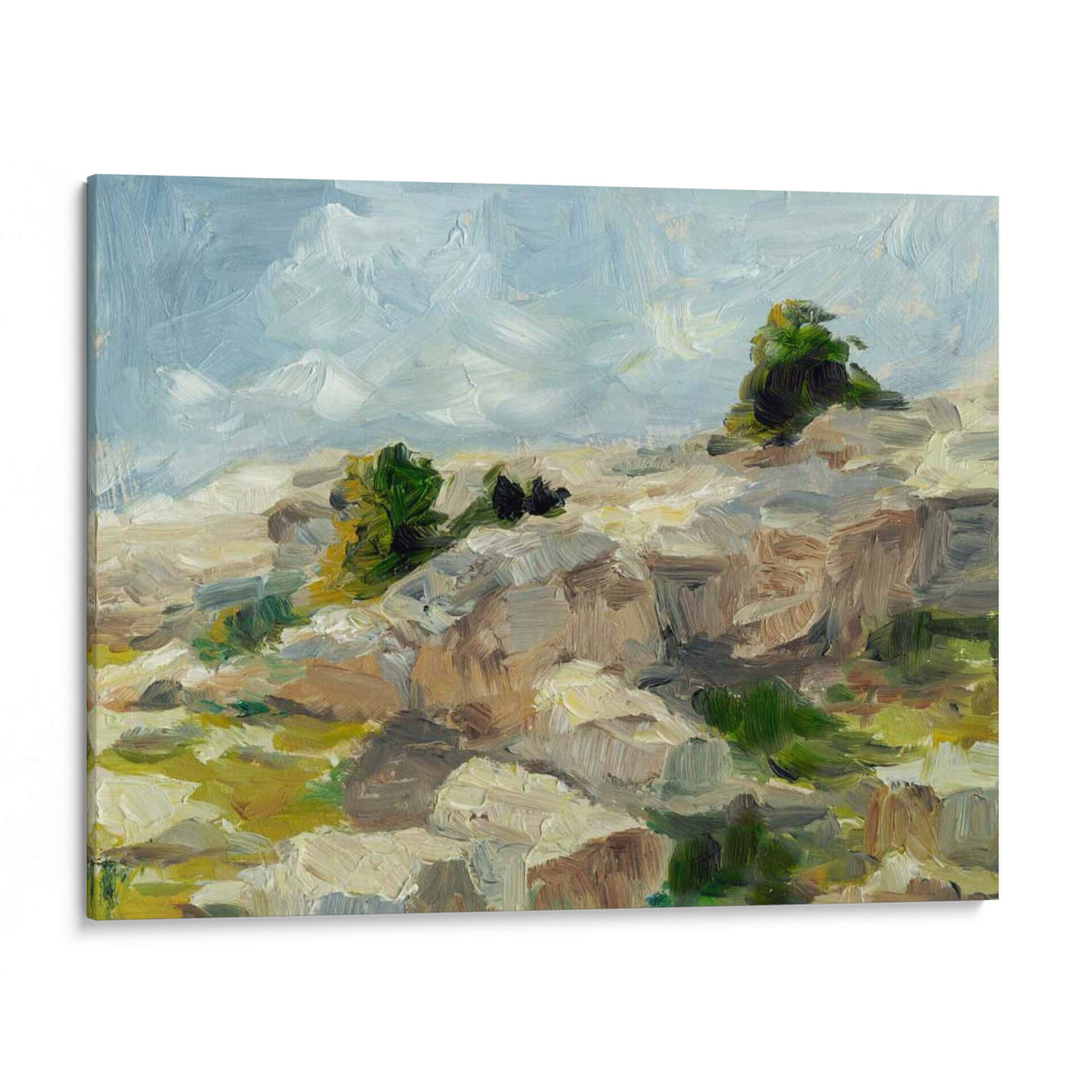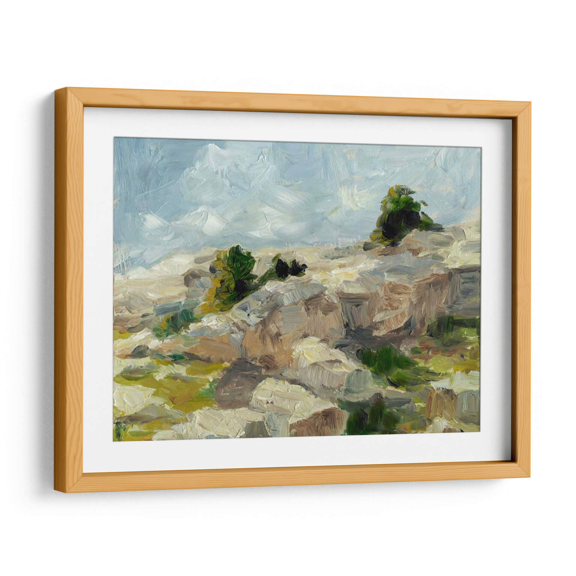 Sumérgete en la serenidad del paisaje con "Empaste De La Ladera I" de Ethan Harper. Esta obra maestra captura la esencia de una ladera rocosa bañada por la luz, con una pincelada audaz y empastada que aporta textura y profundidad. La paleta de colores, dominada por tonos tierra, ocres, verdes musgo y cielos celestes, evoca una sensación de calma y conexión con la naturaleza. Las formas rugosas de las rocas contrastan sutilmente con la suavidad de las nubes, creando una composición dinámica que invita a la contemplación. El estilo impresionista de Harper resalta la belleza del momento, capturando la atmósfera y la luz efímera. Este cuadro decorativo es ideal para añadir un toque de sofisticación natural a tu salón, estudio u oficina, transformando cualquier espacio en un refugio de paz y belleza artística. Su vibrante tratamiento de la luz y la materia lo convierten en un punto focal cautivador para cualquier ambiente moderno o rústico, resonando con aquellos que aprecian el arte que celebra la majestuosidad de la tierra.