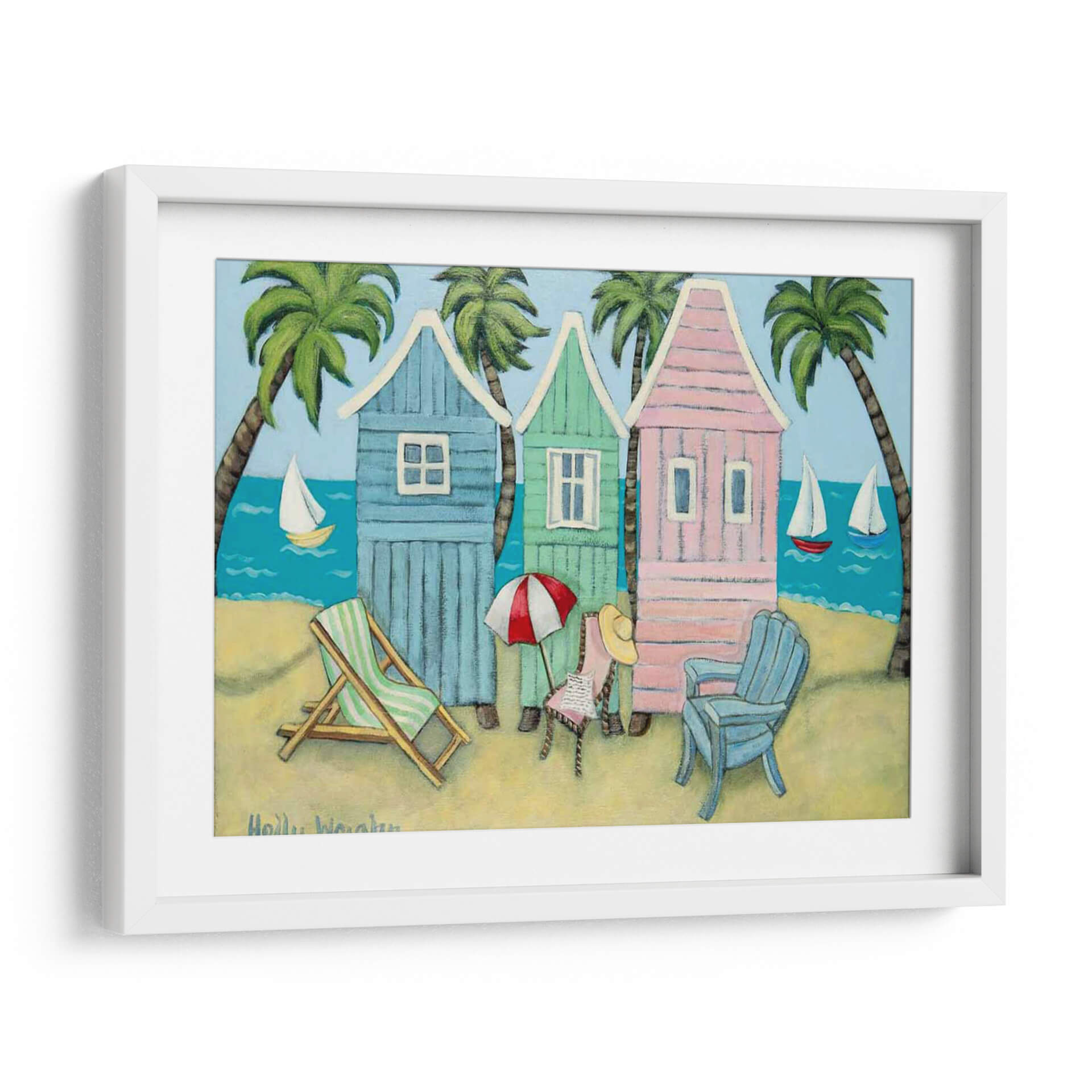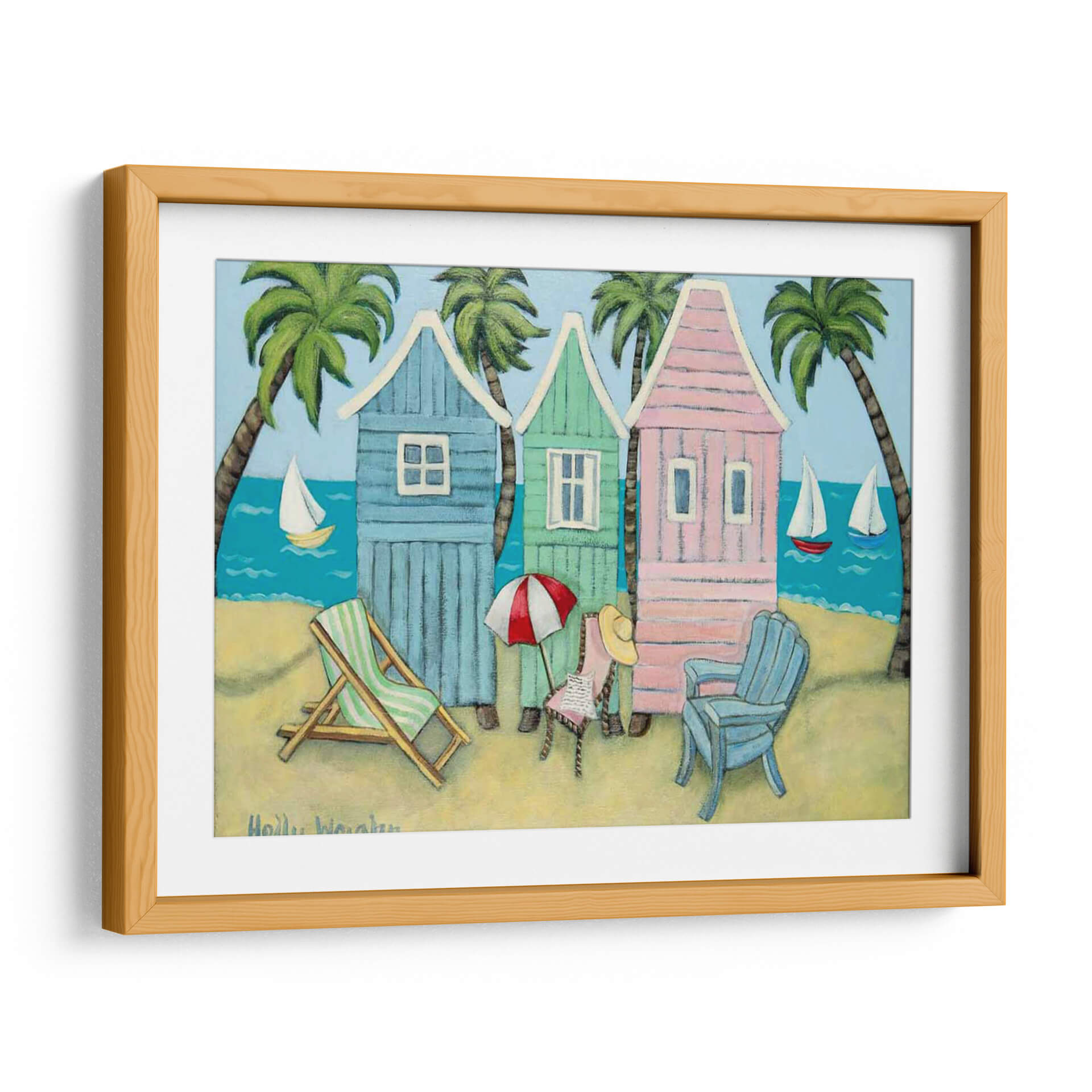 Sumérgete en la serenidad costera con "En La Playa II", una encantadora obra de arte de Holly Wojahn que captura la esencia de un día idílico junto al mar. Este cuadro decorativo presenta tres casetas de playa vibrantes en tonos pastel de azul, verde y rosa, dispuestas en una playa de arena dorada bajo un cielo azul claro. Palmeras majestuosas flanquean la escena, añadiendo un toque tropical, mientras que el océano tranquilo, salpicado de veleros, invita a la relajación. Las sillas de playa y un paraguas abierto sugieren una invitación a detenerse y disfrutar del momento. La paleta de colores vivos y alegres, combinada con pinceladas texturizadas, crea una atmósfera de paz y vacaciones. "En La Playa II" es ideal para añadir un toque de alegría y escapismo a cualquier hogar u oficina, transportando instantáneamente a cualquier espectador a un paraíso de tranquilidad. Este cuadro decorativo es perfecto para salas de estar, dormitorios o cualquier espacio que busque una dosis de sol y brisa marina. Es una pieza que evoca recuerdos de verano y promueve una sensación de bienestar.