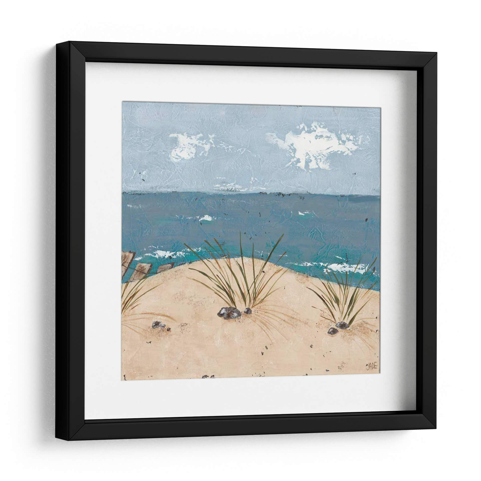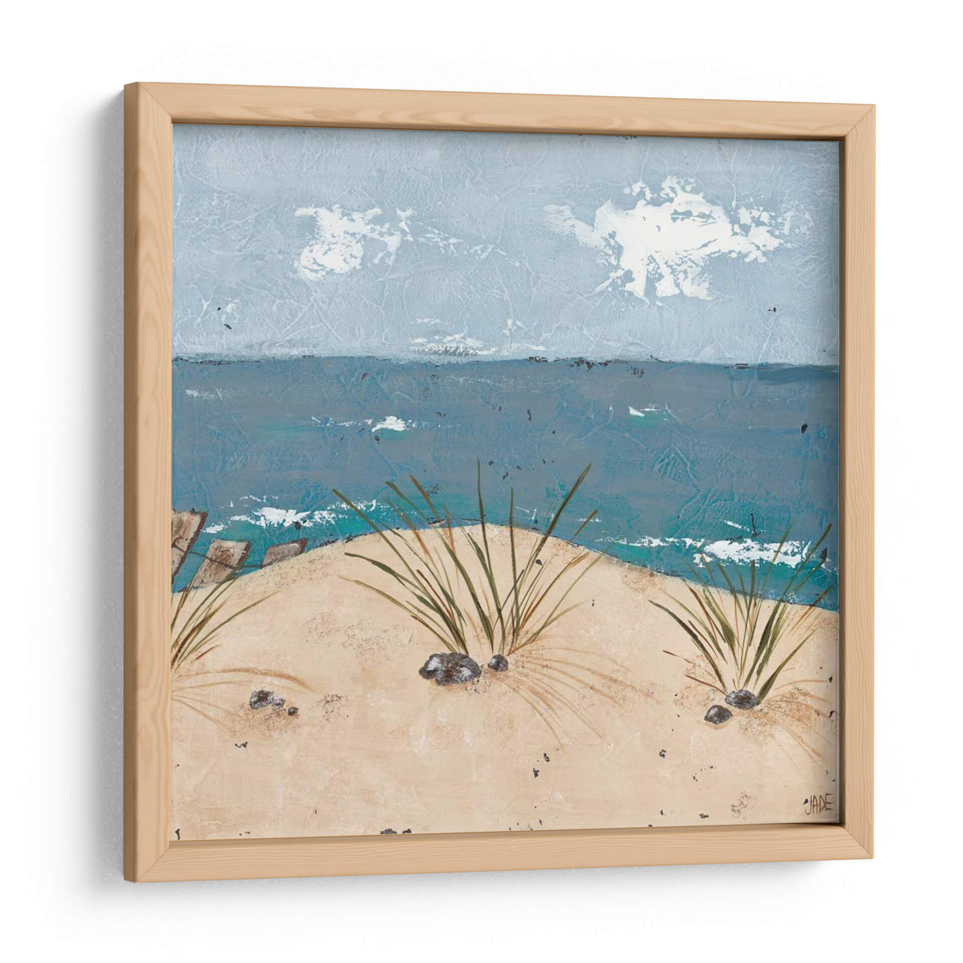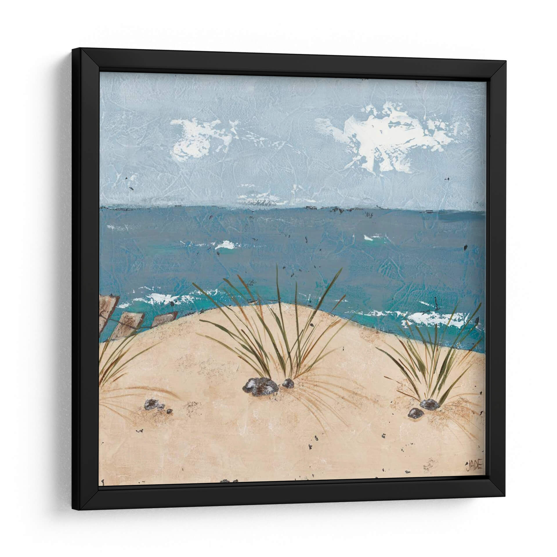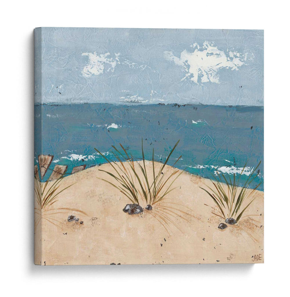 Sumérgete en la serenidad costera con "Escena de Playa Tríptico III", una obra de arte original de Jade Reynolds que captura la esencia de un día tranquilo junto al mar. Esta pieza evoca la brisa marina y la suave caricia de la arena bajo tus pies, transportándote directamente a un refugio de paz. La paleta de colores, dominada por tonos azules profundos del océano y los cielos etéreos, se complementa con la calidez terrosa de las dunas y la vegetación costera que emerge con delicadeza. La textura visual de la obra, con sus pinceladas sugerentes, añade una dimensión de realismo y emoción, invitando a la contemplación. Perfecta para añadir un toque de calma y naturaleza a cualquier espacio, este cuadro decorativo es ideal para salones, dormitorios o cualquier lugar donde busques un recordatorio visual de la belleza natural y la tranquilidad. Su composición, que equilibra el horizonte marino con el primer plano de las dunas, crea una sensación de profundidad y apertura. "Escena de Playa Tríptico III" no es solo una decoración, es una invitación a la relajación y a la conexión con el elemento mar.