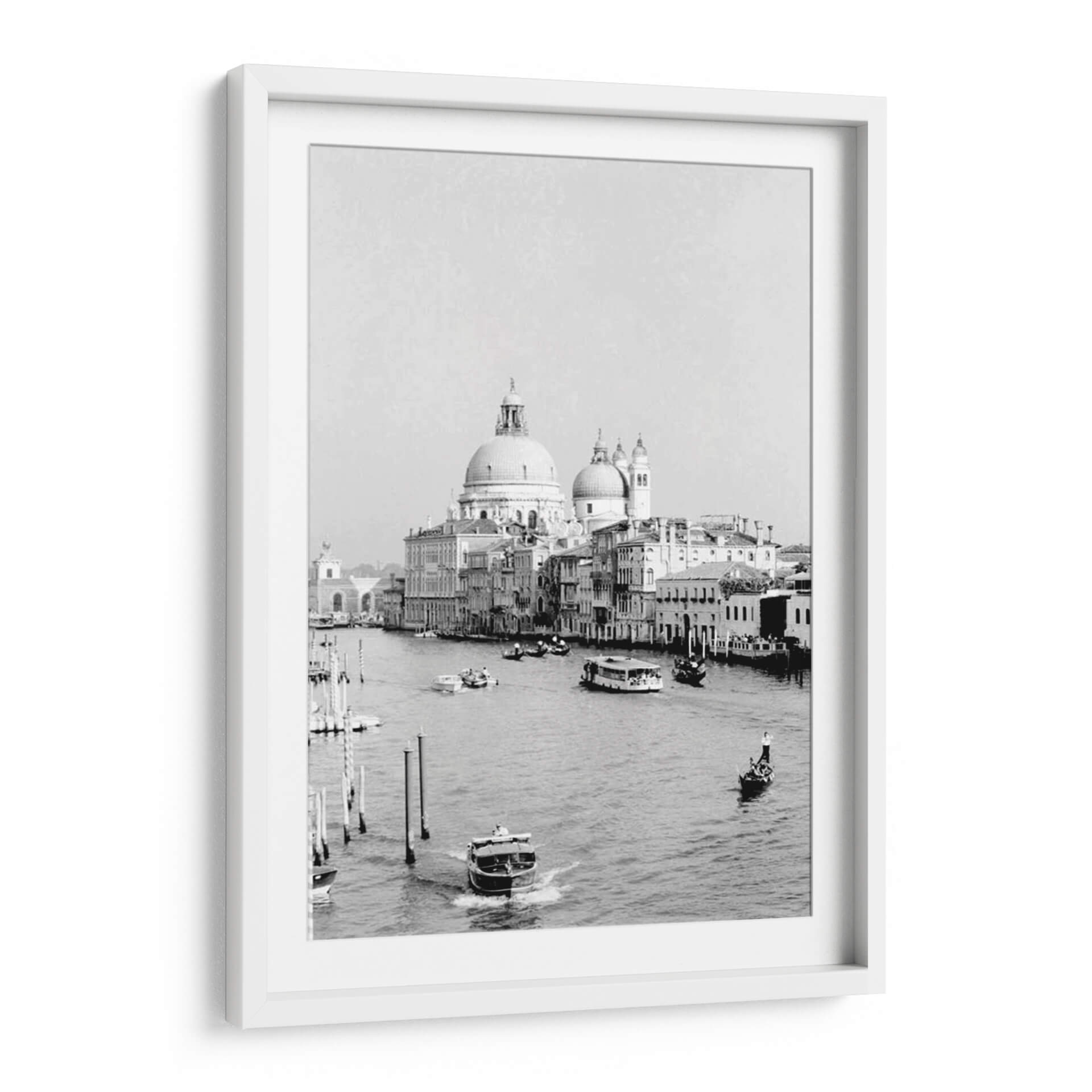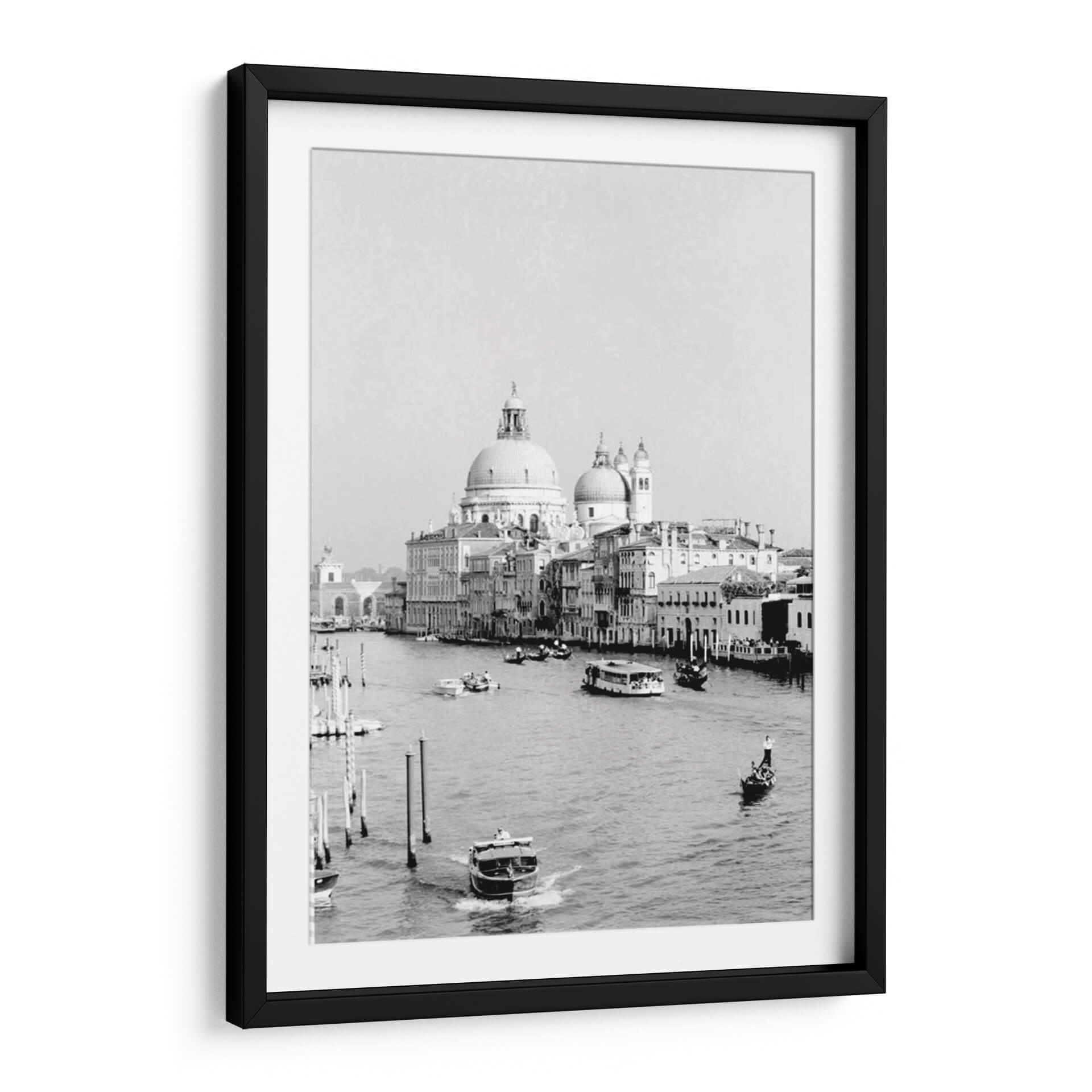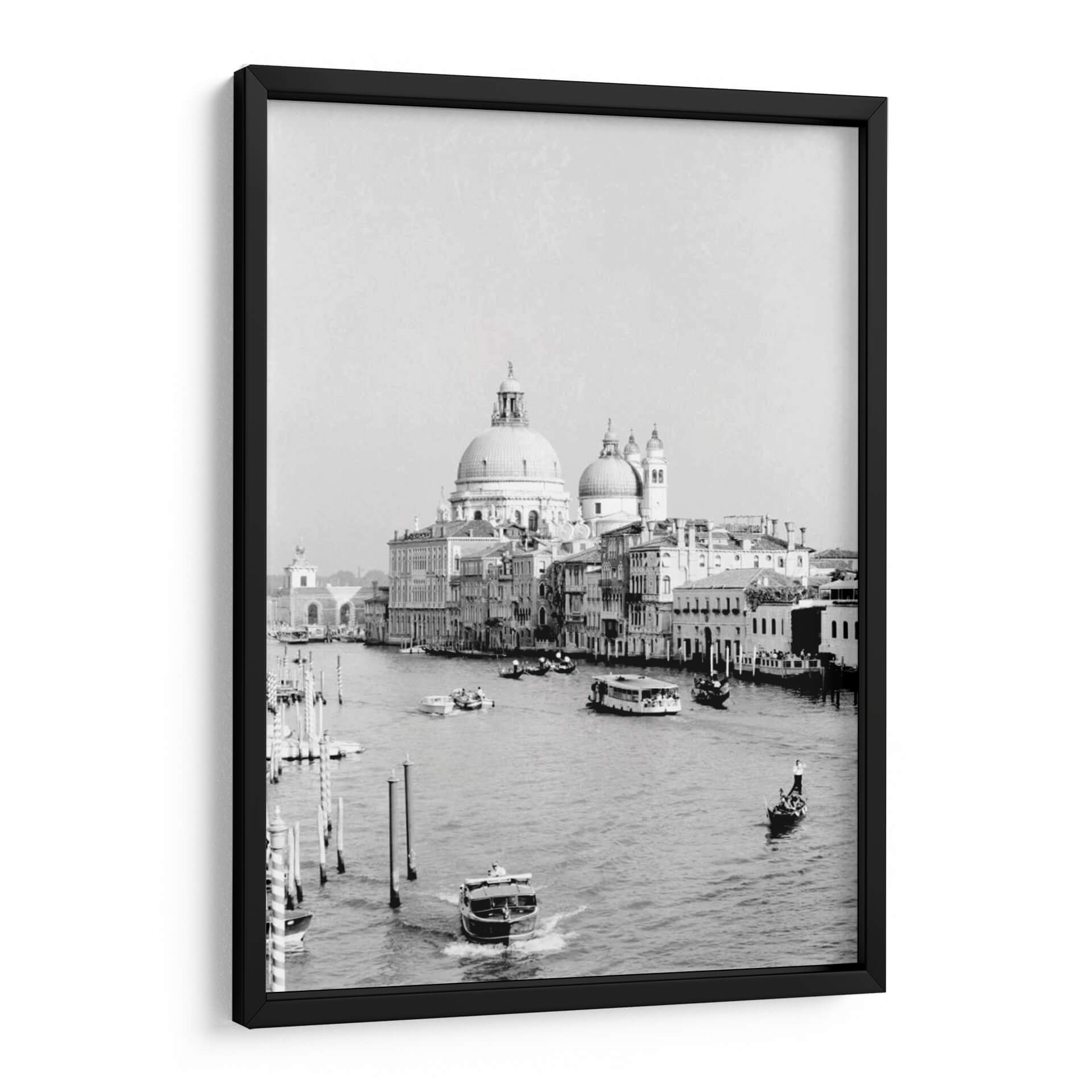 Sumérgete en la majestuosidad de Venecia con este evocador cuadro decorativo, 'Escenas de Venecia III' de Jeff Pica. Esta obra captura la esencia romántica y atemporal de la ciudad de los canales a través de una perspectiva en blanco y negro que resalta la arquitectura icónica y el movimiento del agua. La composición, dominada por las imponentes cúpulas de la Basílica de Santa Maria della Salute y los edificios históricos a lo largo del Gran Canal, transporta al espectador a un momento de calma y contemplación. Se aprecian barcos y góndolas navegando serenamente, añadiendo un toque de vida a la escena urbana. El contraste entre las luces y las sombras, característico de la fotografía clásica, confiere a la pieza una profundidad y un carácter únicos. Ideal para añadir un toque de elegancia y sofisticación a salones, recibidores u oficinas, este cuadro decorativo es perfecto para quienes buscan una pieza que evoque viajes, historia y belleza arquitectónica. Su estética atemporal se adapta a diversos estilos de decoración, desde el clásico hasta el moderno, convirtiéndose en un punto focal que invita a soñar.