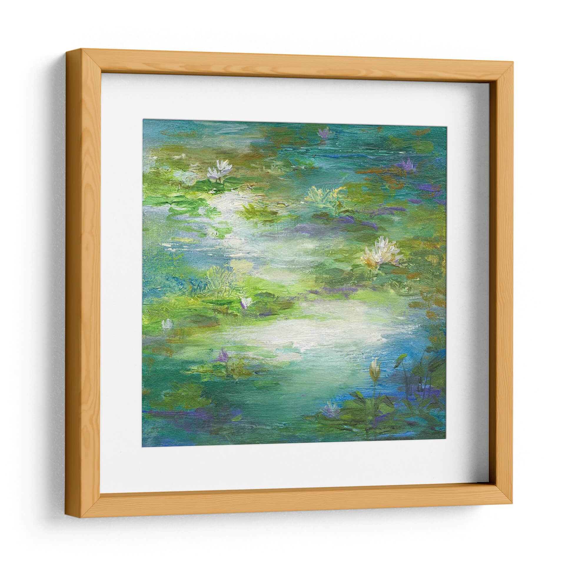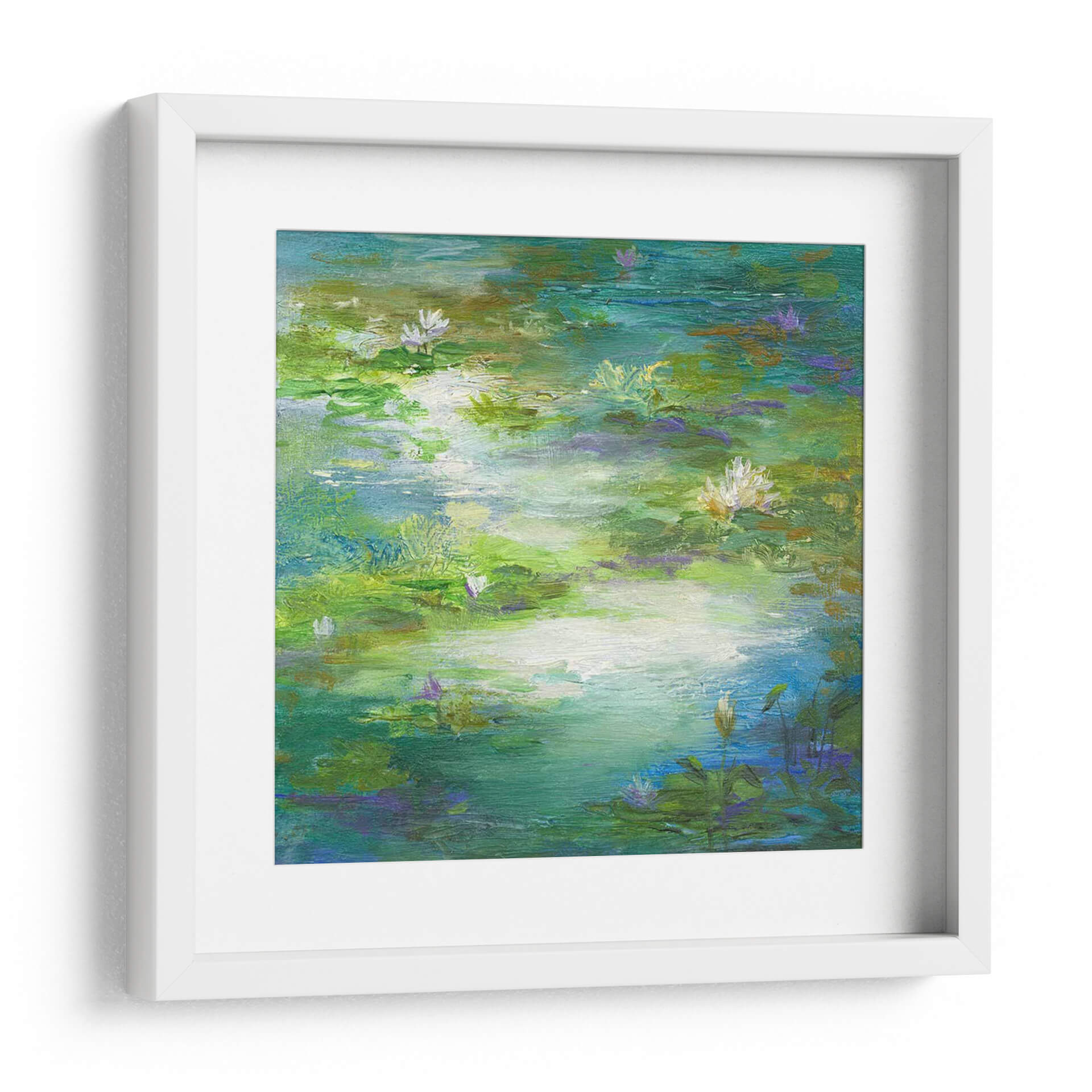 Sumérgete en la serenidad de "Estanque de Lirio de Agua #2", una obra de arte cautivadora de Sheila Finch que captura la belleza etérea de un estanque sereno. Esta pieza, con sus pinceladas expresivas y vibrante paleta de verdes, azules y toques de púrpura, evoca una sensación de paz y contemplación. Los nenúfares blancos emergen delicadamente de las aguas tranquilas, creando un contraste suave contra el follaje exuberante y las profundidades acuáticas. El estilo, que recuerda al impresionismo, permite que la luz juegue sobre la superficie del agua, invitando al espectador a perderse en la atmósfera pacífica. Es el cuadro decorativo perfecto para transformar cualquier espacio en un oasis de calma. Ideal para tu sala de estar, dormitorio o incluso un espacio de oficina que necesite un toque de naturaleza y tranquilidad. Añade esta obra maestra a tu colección y deja que su belleza natural inspire cada día.