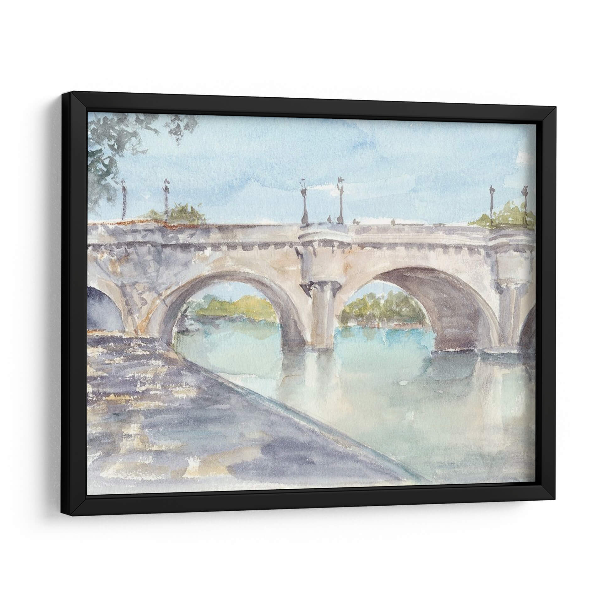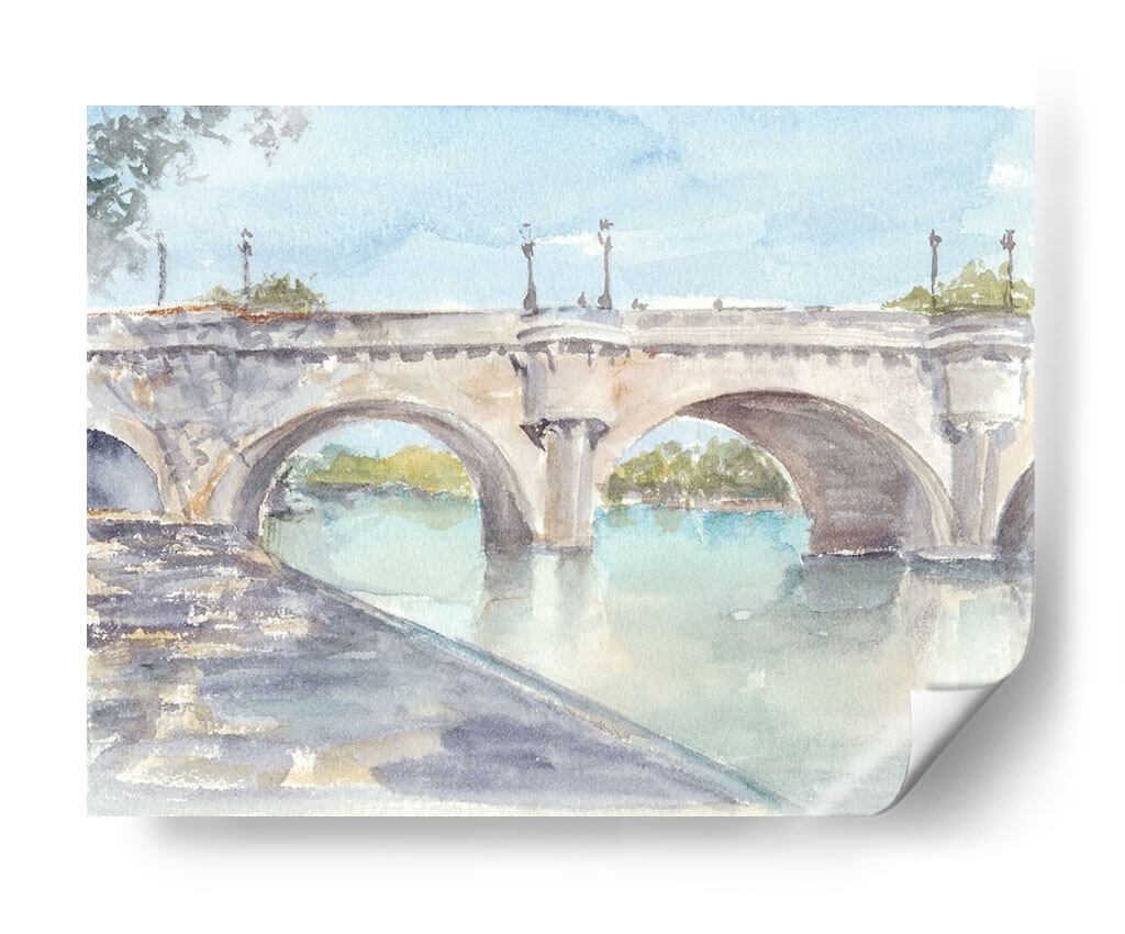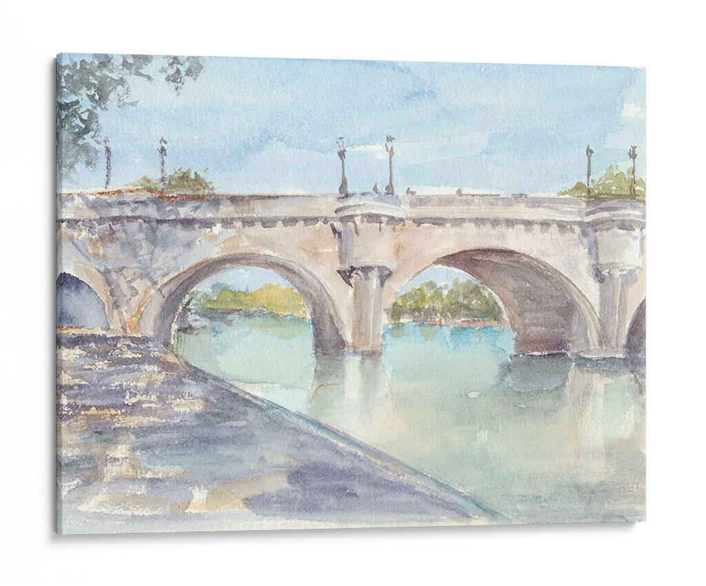 Sumérgete en la serenidad y el encanto clásico de "Estudio De Puente Francés II", una obra de arte que captura la esencia atemporal de la arquitectura europea. Este cuadro decorativo, pintado por Ethan Harper, presenta un majestuoso puente de piedra con arcos que se reflejan en las tranquilas aguas de un río. La paleta de colores suaves, dominada por tonos celestes, grises pálidos y toques de verde y ocre, crea una atmósfera de paz y contemplación. La técnica de acuarela, sutil y etérea, aporta una ligereza que invita a la relajación. Ideal para espacios que buscan un toque de sofisticación y calma, como salones, estudios o dormitorios, este lienzo es una ventana a un momento de tranquilidad. Su composición equilibrada y la delicadeza de los detalles hacen de "Estudio De Puente Francés II" una pieza versátil que complementará a la perfección una decoración de estilo clásico, moderno o incluso bohemio, añadiendo profundidad y un aire de viaje a tu hogar. Transforma tu pared en una escena pacífica que evoca paseos al atardecer y la belleza de los paisajes fluviales.