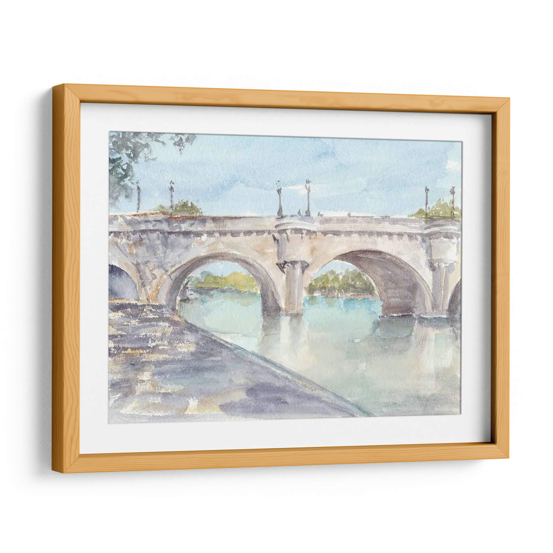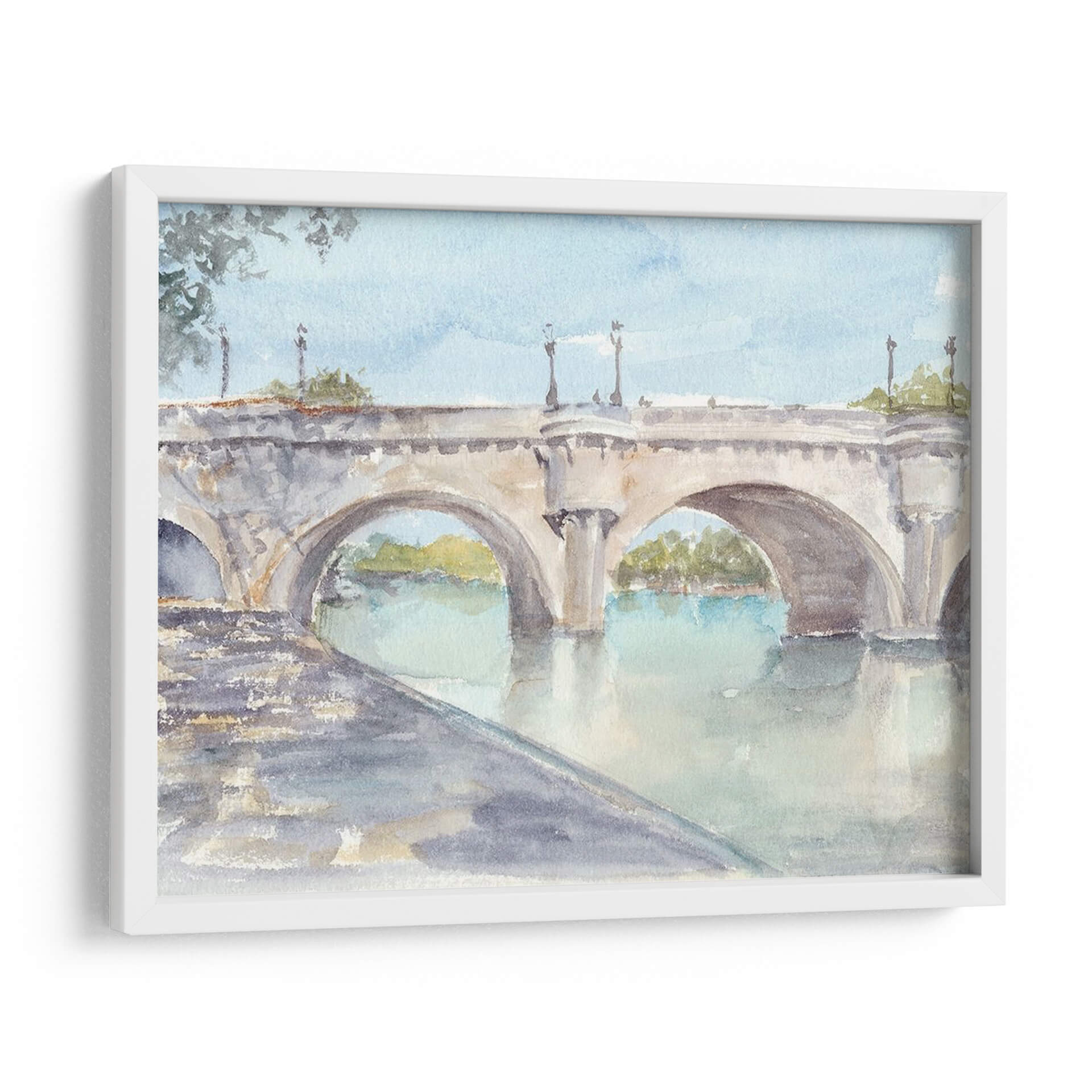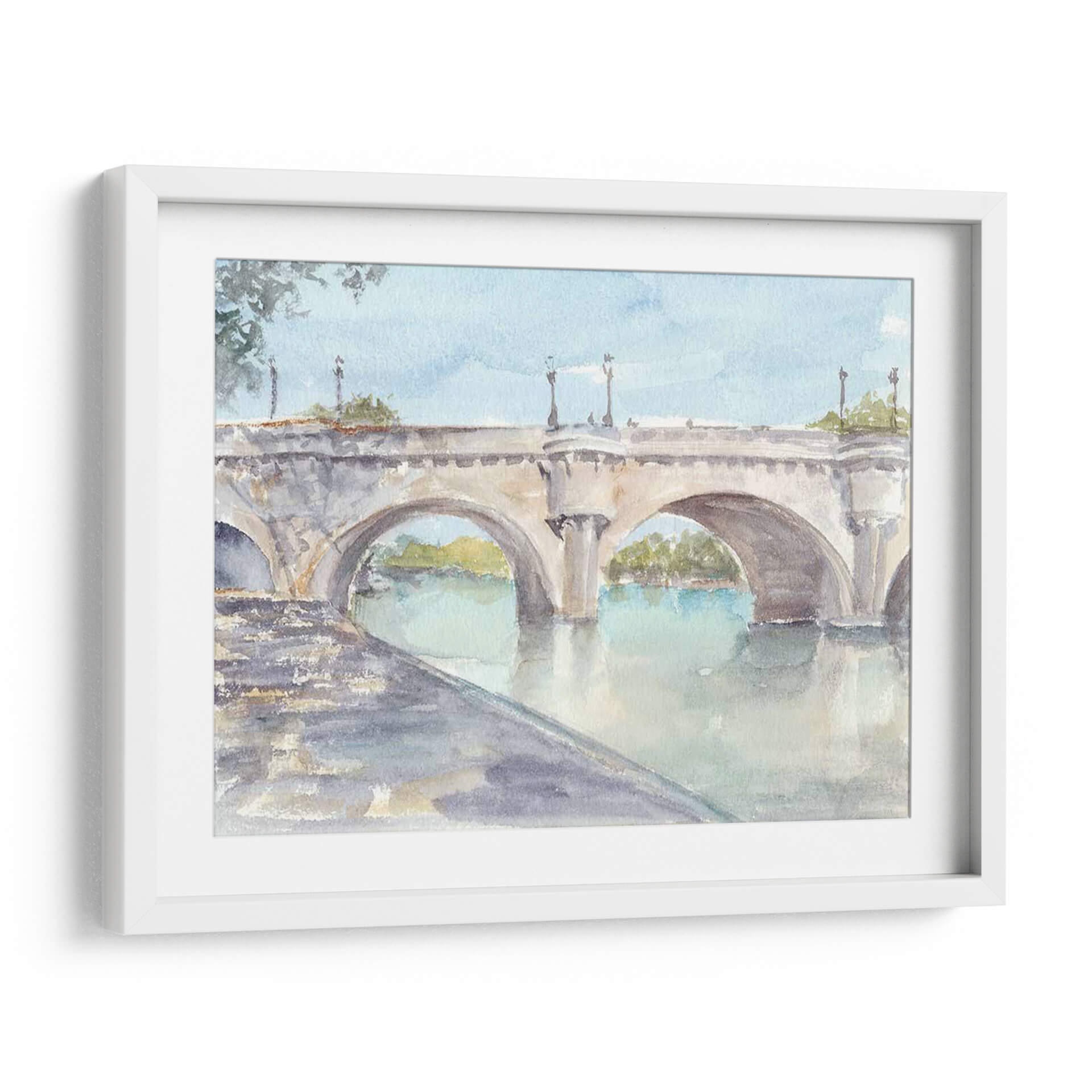 Sumérgete en la serenidad y el encanto clásico de "Estudio De Puente Francés II", una obra de arte que captura la esencia atemporal de la arquitectura europea. Este cuadro decorativo, pintado por Ethan Harper, presenta un majestuoso puente de piedra con arcos que se reflejan en las tranquilas aguas de un río. La paleta de colores suaves, dominada por tonos celestes, grises pálidos y toques de verde y ocre, crea una atmósfera de paz y contemplación. La técnica de acuarela, sutil y etérea, aporta una ligereza que invita a la relajación. Ideal para espacios que buscan un toque de sofisticación y calma, como salones, estudios o dormitorios, este lienzo es una ventana a un momento de tranquilidad. Su composición equilibrada y la delicadeza de los detalles hacen de "Estudio De Puente Francés II" una pieza versátil que complementará a la perfección una decoración de estilo clásico, moderno o incluso bohemio, añadiendo profundidad y un aire de viaje a tu hogar. Transforma tu pared en una escena pacífica que evoca paseos al atardecer y la belleza de los paisajes fluviales.