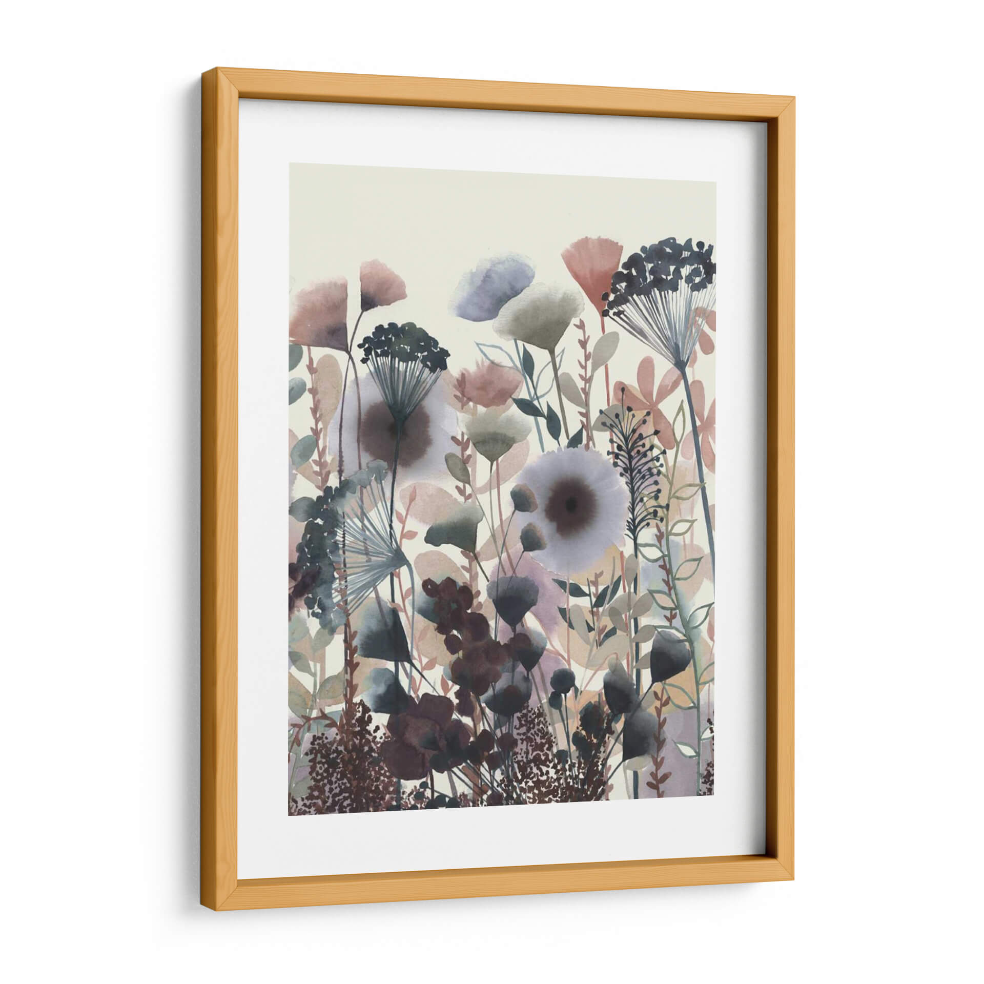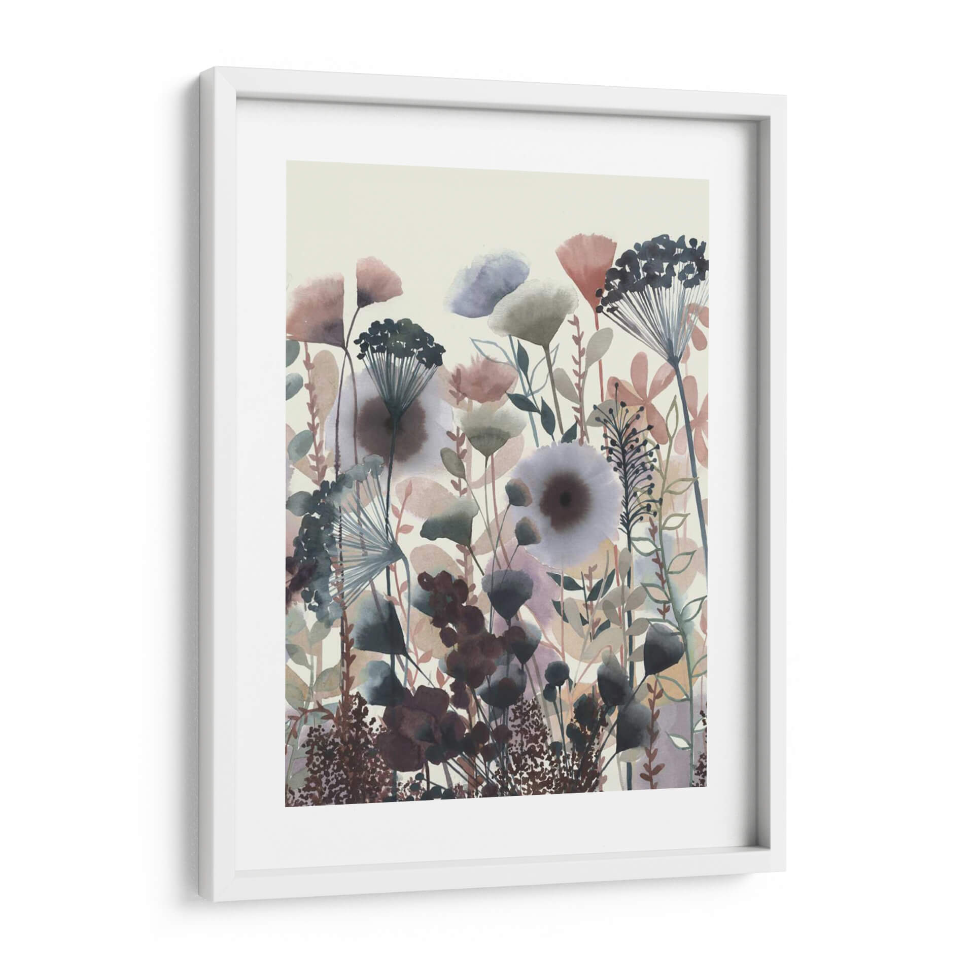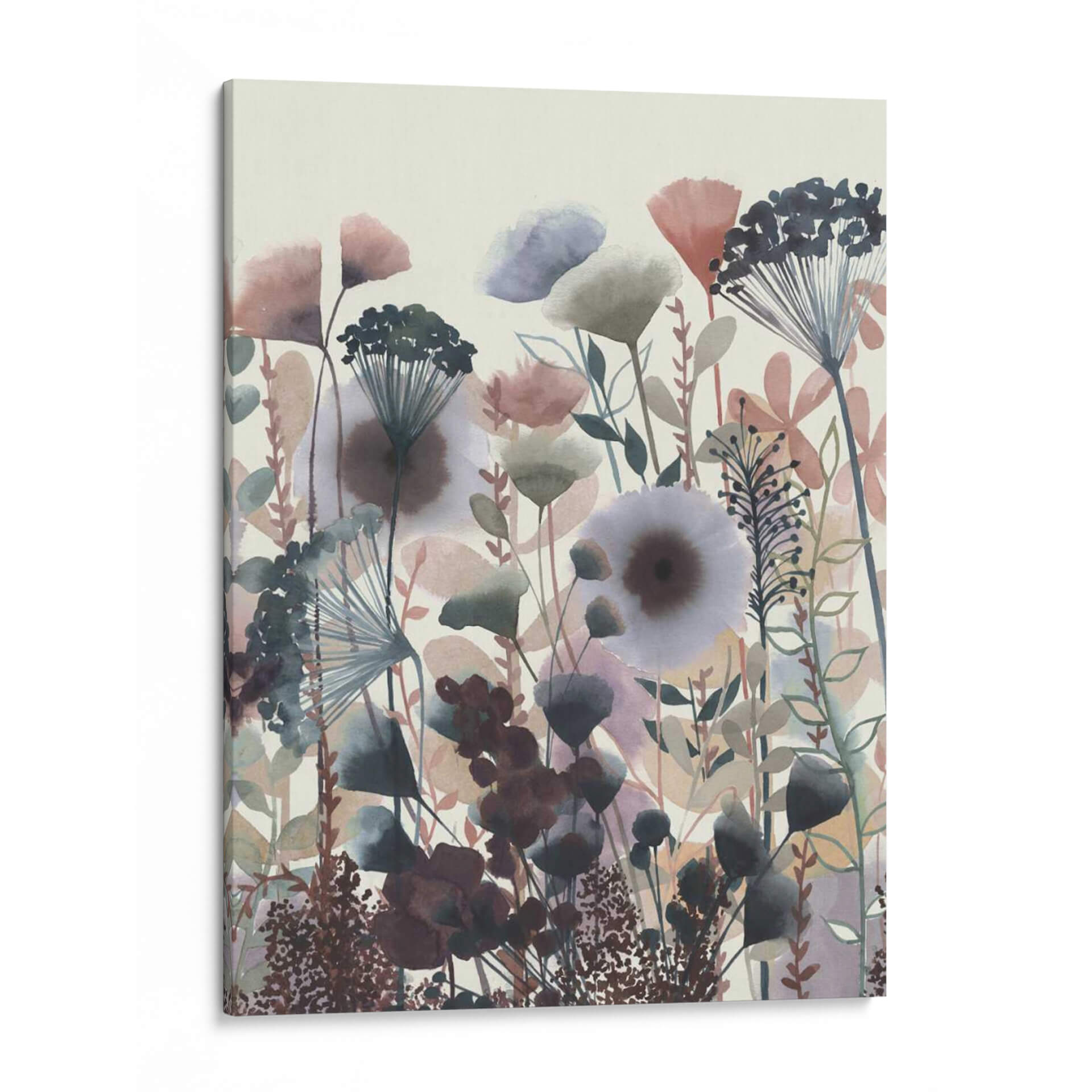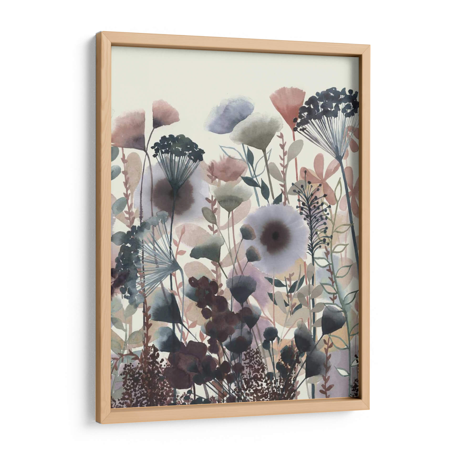 Sumérgete en la delicadeza botánica de "Flores Crepuscular I", una obra de arte que captura la serenidad y la belleza efímera de un jardín al anochecer. La artista Grace Popp utiliza una paleta de colores suaves y etéreos, dominada por tonos tierra, grises azulados, rosas pálidos y toques de morado oscuro, creando una atmósfera onírica y contemplativa. Las formas florales y vegetales, representadas con un estilo que evoca la acuarela contemporánea y el arte botánico estilizado, se entrelazan en una composición vertical que transmite una sensación de crecimiento y vitalidad contenida. Cada pincelada parece flotar, añadiendo ligereza y profundidad a la pieza, perfecta para espacios que buscan un toque de calma y elegancia natural. Este cuadro decorativo es ideal para añadir un acento sofisticado a tu sala de estar, dormitorio o estudio, invitando a la reflexión y a la conexión con la naturaleza. Descubre cómo "Flores Crepuscular I" puede transformar tu hogar en un santuario de paz y estilo, ofreciendo una ventana a un mundo floral imaginario lleno de matices y sutilezas.