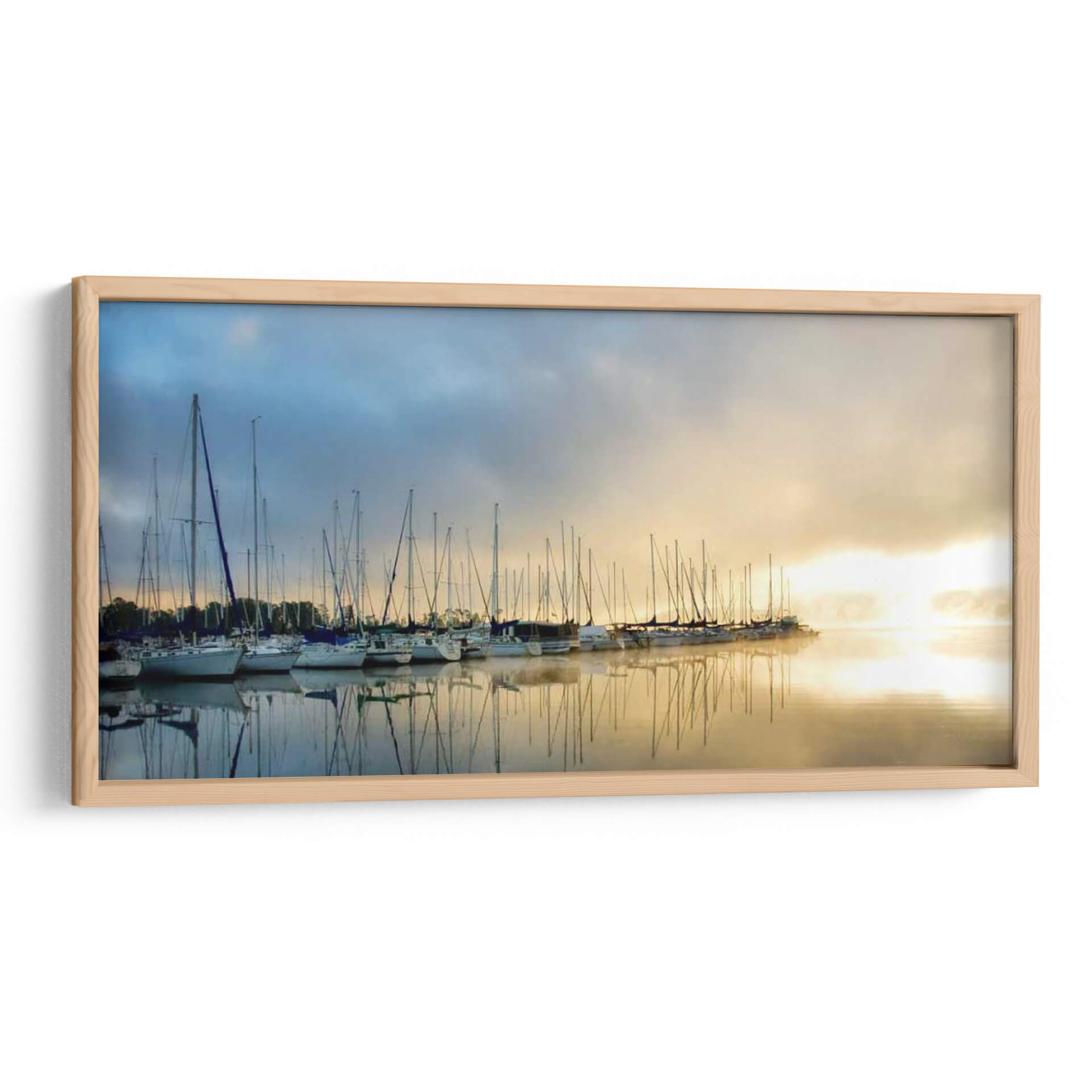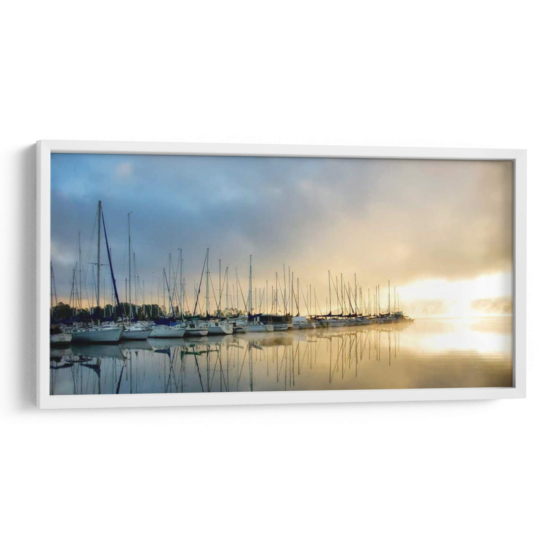 Sumérgete en la serenidad de "Fractura A Través II", una obra de arte que captura la tranquilidad de un amanecer o atardecer en un puerto deportivo. Las siluetas esbeltas de veleros se reflejan en las aguas serenas, creando una composición visualmente cautivadora. La paleta de colores, que transita desde los azules profundos y grises del cielo hasta los cálidos tonos dorados del sol naciente o poniente, evoca una atmósfera de calma y contemplación. Esta pieza es ideal para espacios que buscan infundir una sensación de paz y conexión con la naturaleza, como dormitorios, salas de estar o estudios. El juego de luces y sombras, junto con los reflejos detallados en el agua, añade profundidad y realismo a la escena, invitando al espectador a perderse en su atmósfera onírica. "Fractura A Través II" no es solo un cuadro decorativo, sino una ventana a un momento de quietud y belleza natural, perfecta para quienes aprecian la fotografía paisajística y los ambientes serenos en su hogar u oficina. Transforma tu pared en un oasis de calma con este impresionante cuadro de veleros.