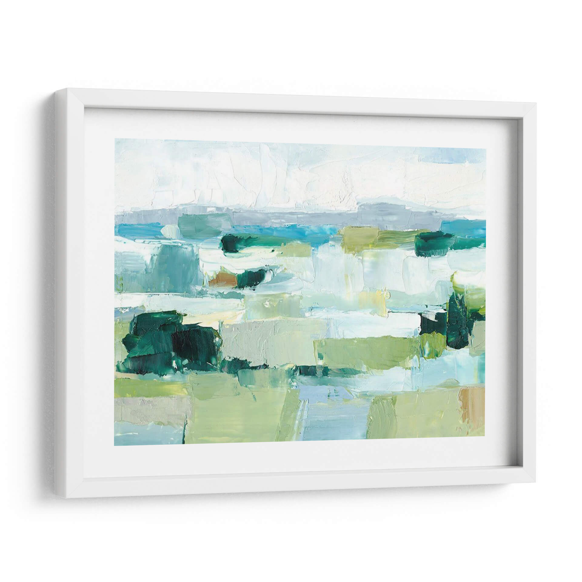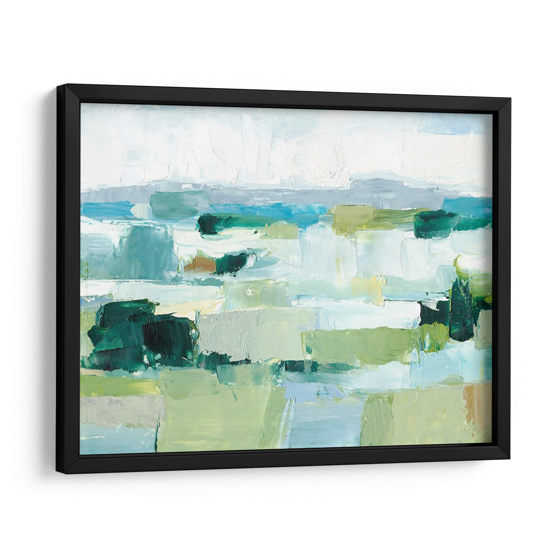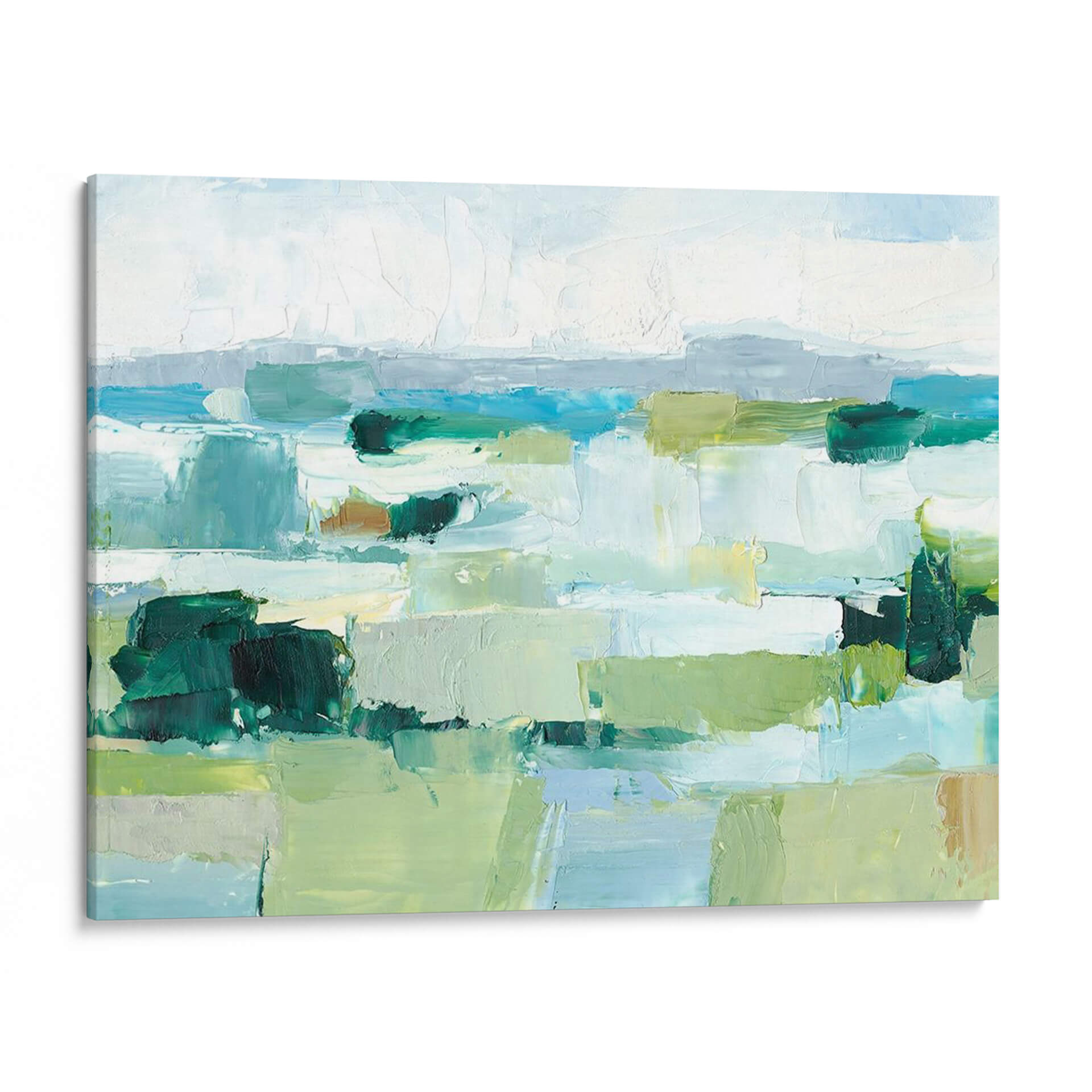 Sumérgete en la serenidad y el frescor del verano con "Fresco Verano II", una cautivadora obra de arte abstracto del aclamado artista Ethan Harper. Esta pieza evoca la sensación de un paisaje bañado por el sol, con una paleta de colores vibrantes que transita del azul profundo del mar y el cielo a los verdes exuberantes de la vegetación y los tonos tierra de la arena. Las pinceladas audaces y texturizadas crean una sensación de movimiento y profundidad, invitando al espectador a perderse en sus formas y matices. El estilo impresionista moderno se manifiesta en la forma en que las formas se fusionan y se sugieren, dejando espacio para la interpretación personal. "Fresco Verano II" es ideal para infundir calma y vitalidad en cualquier espacio, ya sea una sala de estar moderna, un dormitorio tranquilo o una oficina que busca inspiración. Este cuadro decorativo contemporáneo es una ventana a un paraíso estival, perfecto para quienes buscan añadir un toque de naturaleza y arte a su decoración.