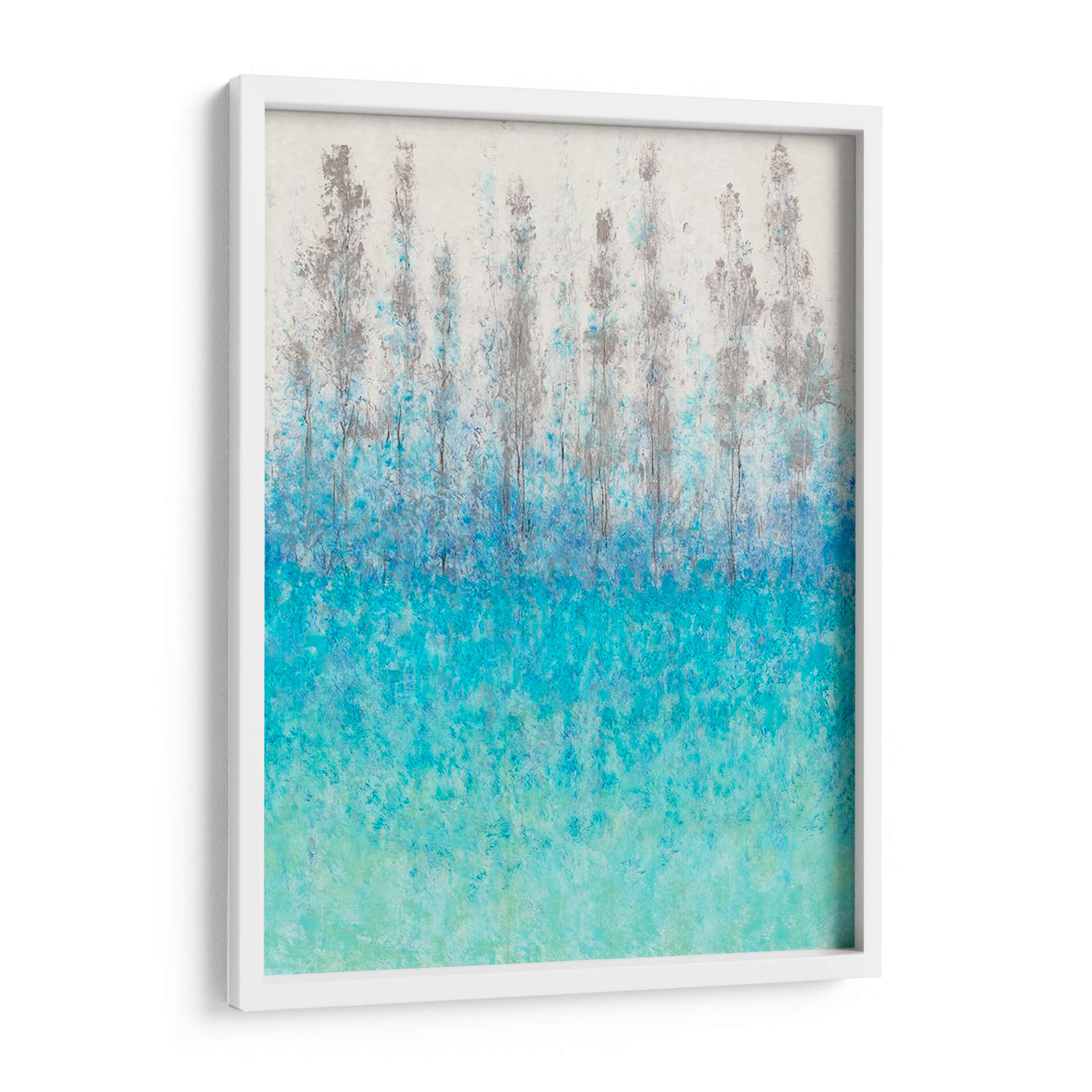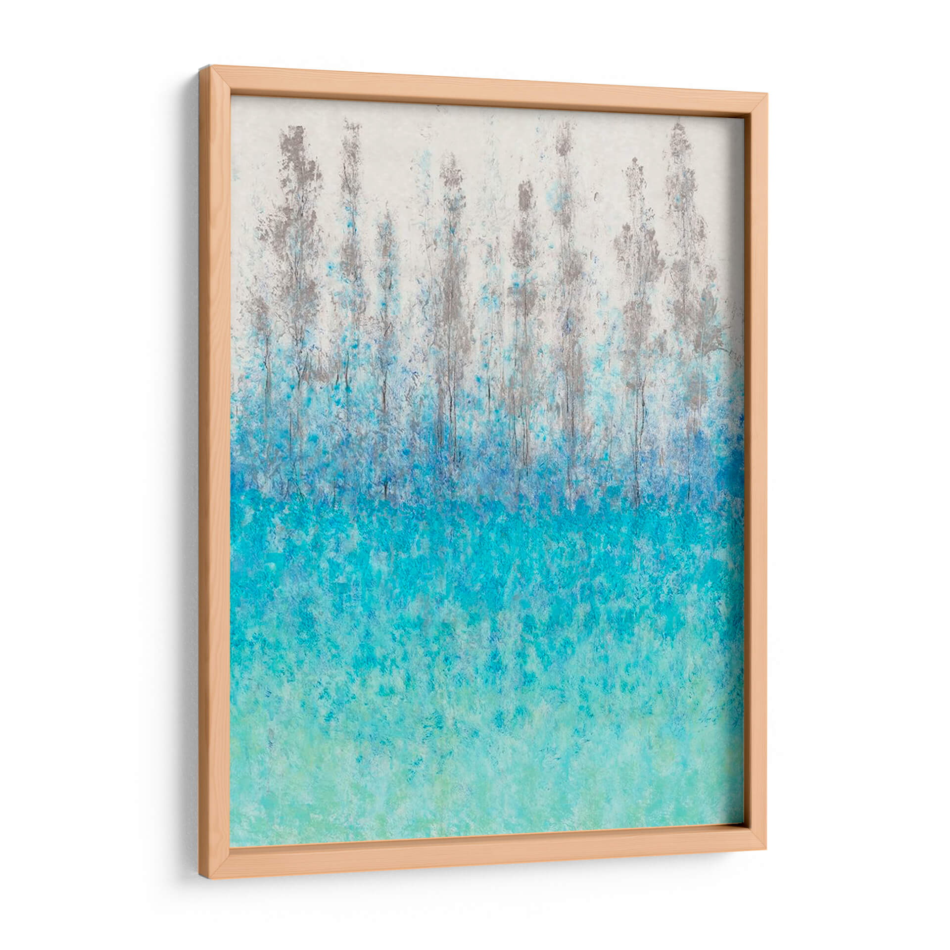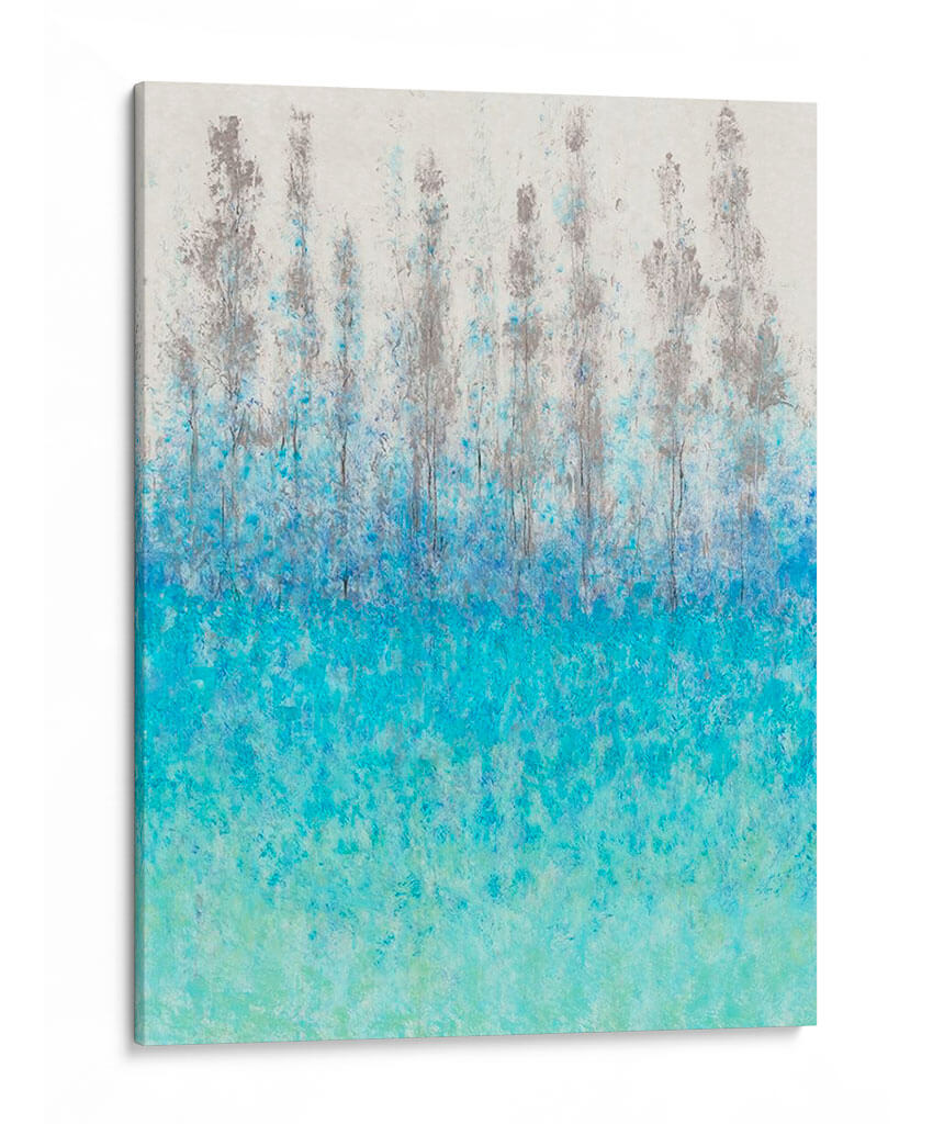 Sumérgete en la serenidad de "Frontera De Ciprés I", una obra de arte contemporáneo que evoca la calma y la belleza de un paisaje natural estilizado. Este cuadro decorativo presenta una paleta de colores vibrantes que transita desde intensos tonos turquesa y azules en la parte inferior, hasta un suave degradado de grises y blancos en la parte superior, sugiriendo una atmósfera etérea y pacífica. La técnica texturizada y las pinceladas audaces crean una sensación de profundidad y movimiento, imitando la delicadeza de los árboles de ciprés en un día brumoso. La composición abstracta pero evocadora de Tim O'Toole invita a la contemplación, convirtiendo este cuadro en una pieza ideal para añadir un toque de naturaleza y sofisticación a cualquier espacio. Ya sea en tu sala de estar, dormitorio u oficina, "Frontera De Ciprés I" actuará como un punto focal inspirador, aportando frescura y una conexión con la tranquilidad del entorno natural. Es una elección perfecta para quienes buscan arte moderno que transmita paz y elegancia.