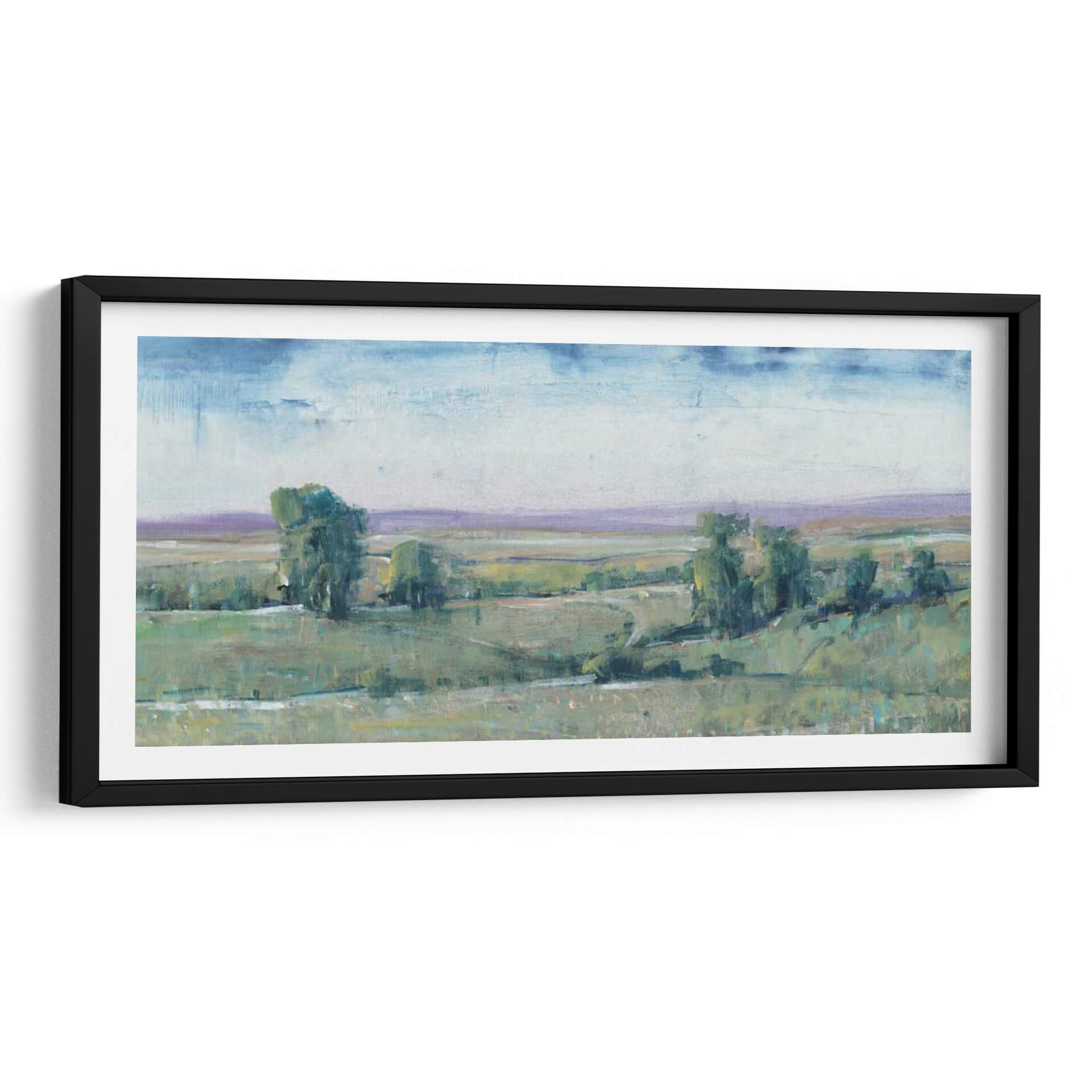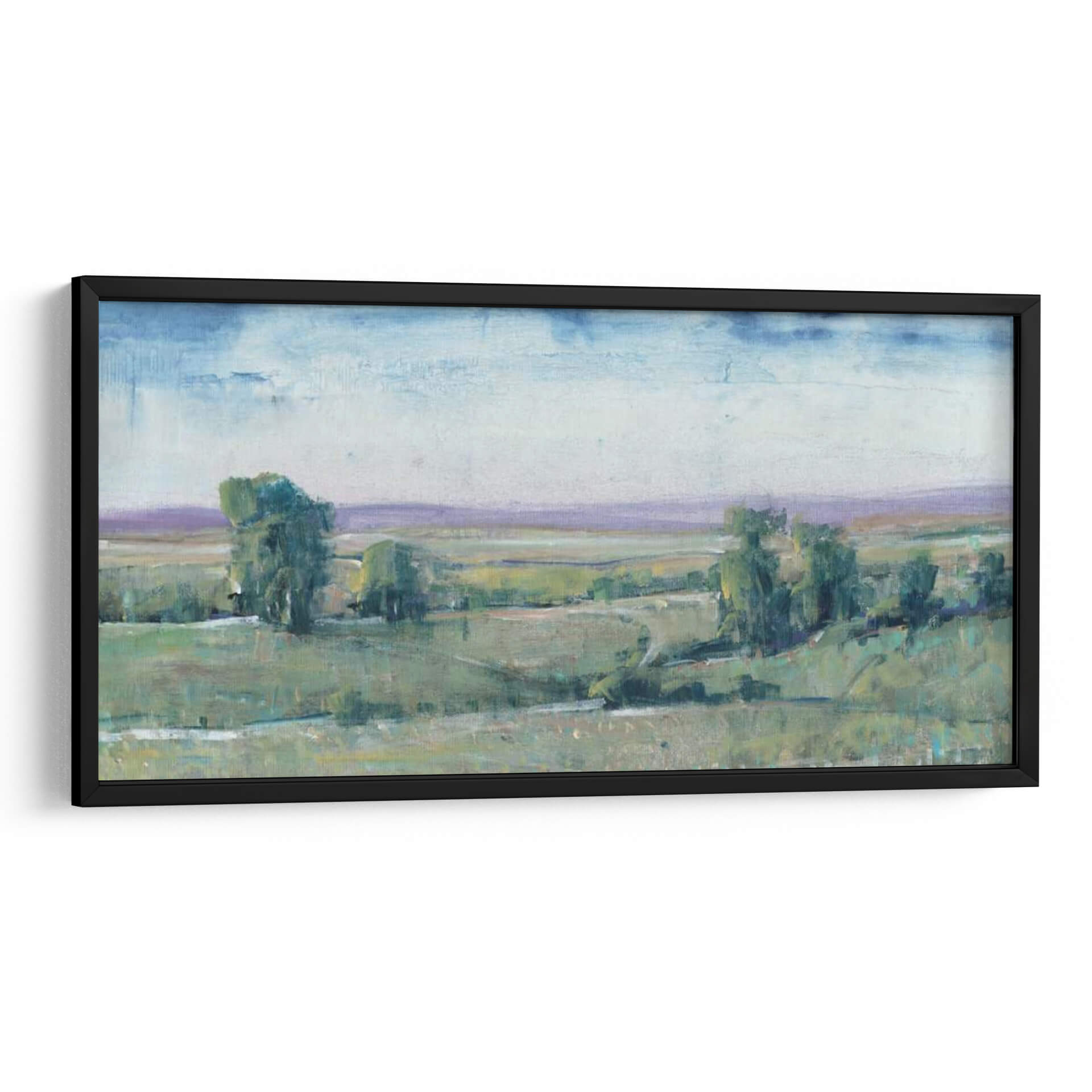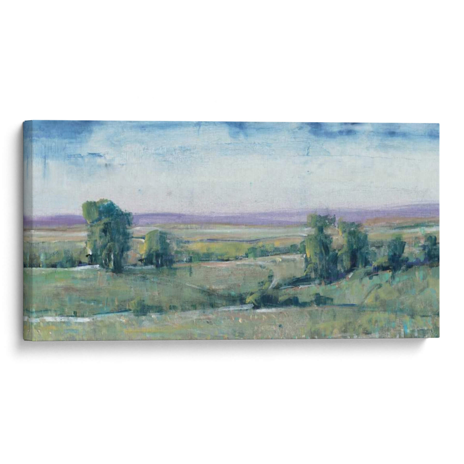 Sumérgete en la serenidad del campo con "Fuera De La Carretera I", una obra de arte que captura la esencia de un paisaje rural bañado por la luz. El artista Tim O'Toole nos transporta a un camino apartado, donde la naturaleza despliega su paleta de verdes exuberantes, tonos tierra y un cielo etéreo en azules y púrpuras suaves. La técnica impresionista, con pinceladas sueltas y texturizadas, dota a la escena de una atmósfera evocadora y llena de vida, invitando a la contemplación y al sosiego. Este cuadro decorativo es perfecto para aquellos que buscan infundir calma y belleza natural en sus hogares u oficinas. Su composición horizontal y su manejo del color crean una sensación de profundidad y amplitud, ideal para espacios que necesiten un toque de tranquilidad y sofisticación. Imagina este lienzo aportando una ventana a la paz del campo a tu sala de estar, dormitorio o estudio, convirtiéndose en un punto focal que invita a la relajación y a la conexión con la naturaleza. Una pieza que trasciende el tiempo y el espacio, perfecta para añadir carácter y estilo a cualquier decoración contemporánea o rústica. Descubre la magia de "Fuera De La Carretera I" y transforma tu entorno con la delicadeza de un paisaje atemporal.