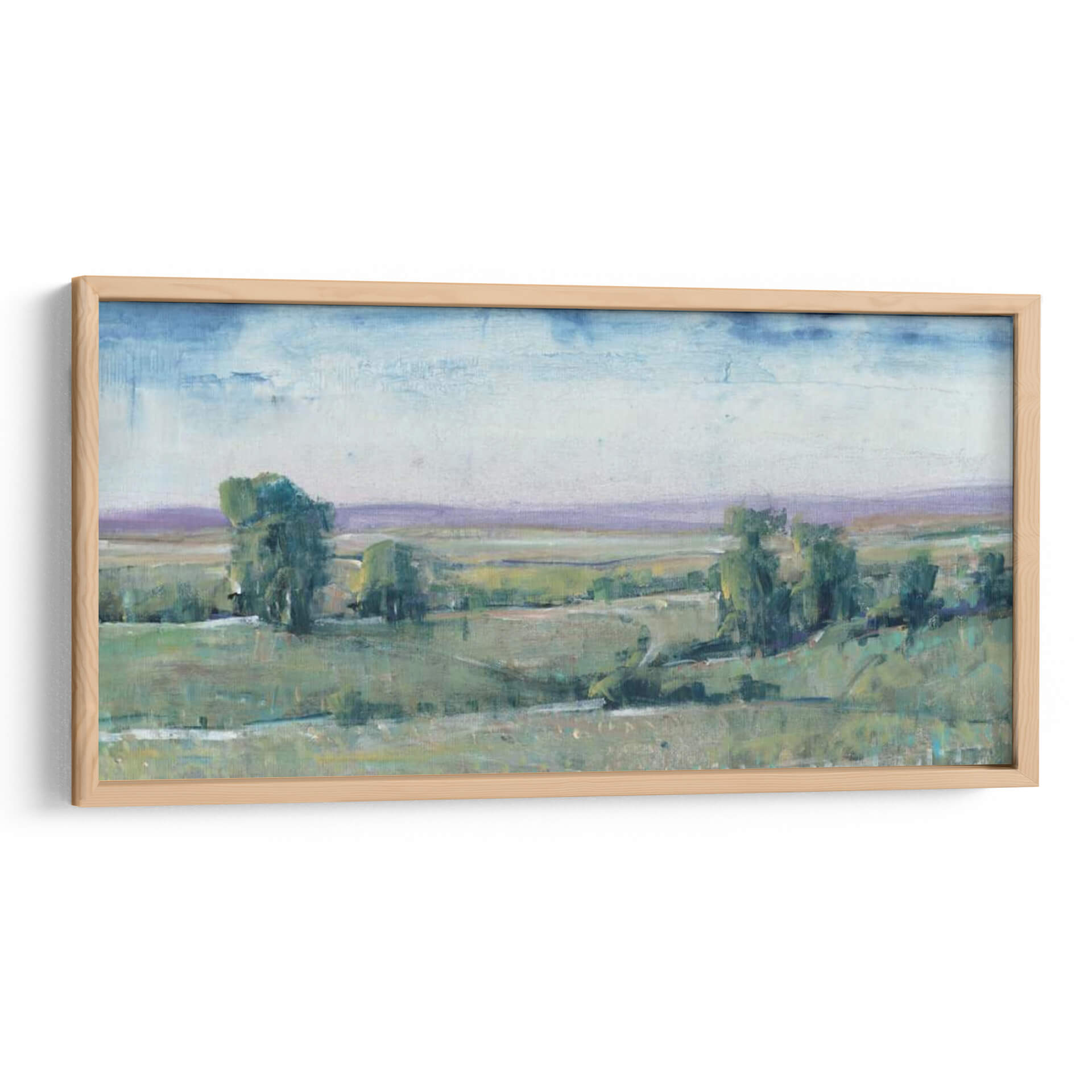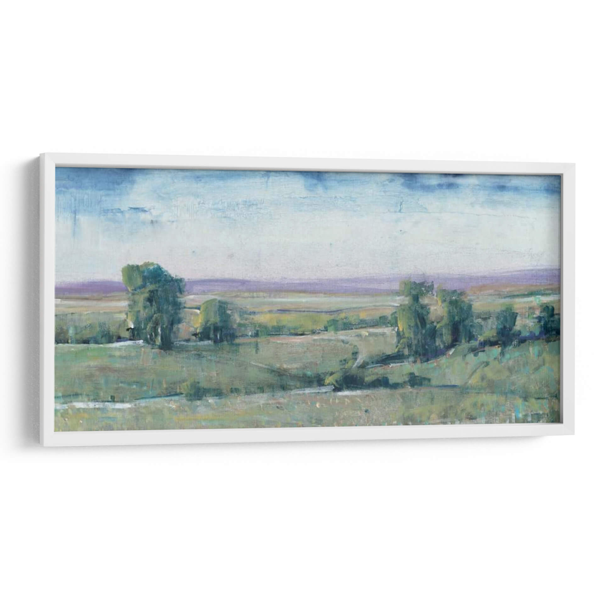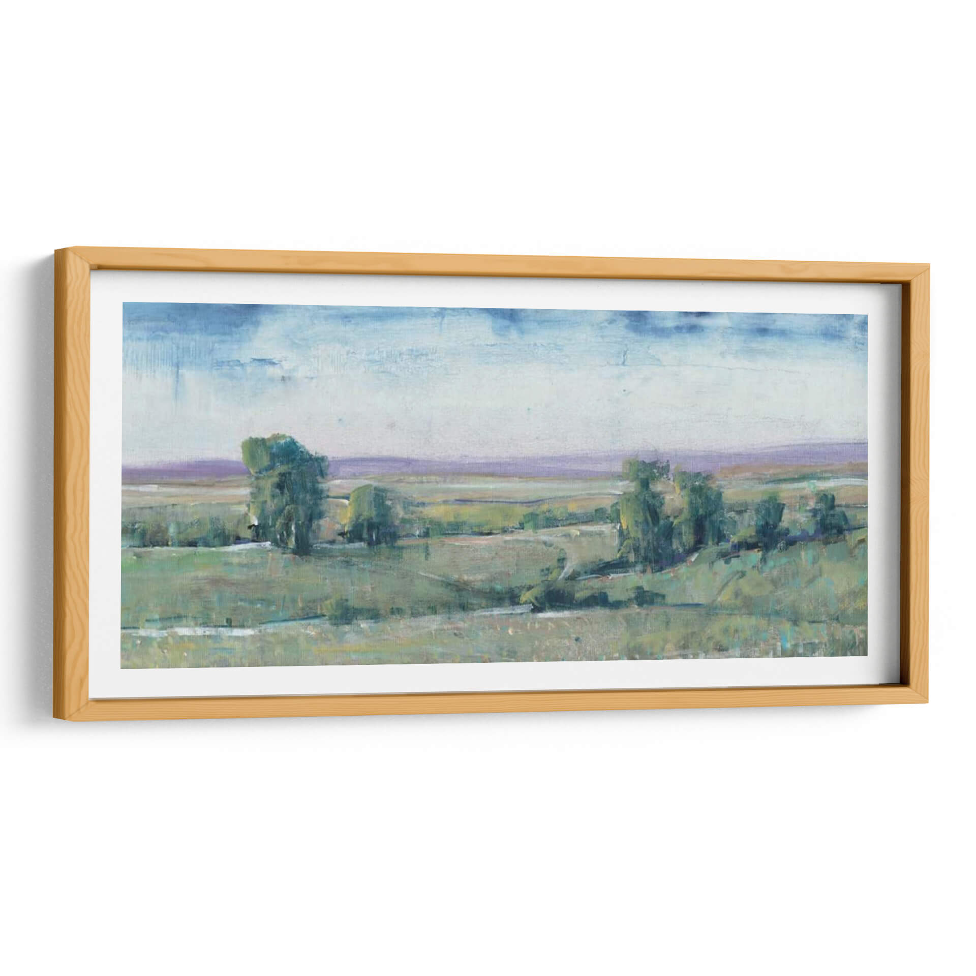 Sumérgete en la serenidad del campo con "Fuera De La Carretera I", una obra de arte que captura la esencia de un paisaje rural bañado por la luz. El artista Tim O'Toole nos transporta a un camino apartado, donde la naturaleza despliega su paleta de verdes exuberantes, tonos tierra y un cielo etéreo en azules y púrpuras suaves. La técnica impresionista, con pinceladas sueltas y texturizadas, dota a la escena de una atmósfera evocadora y llena de vida, invitando a la contemplación y al sosiego. Este cuadro decorativo es perfecto para aquellos que buscan infundir calma y belleza natural en sus hogares u oficinas. Su composición horizontal y su manejo del color crean una sensación de profundidad y amplitud, ideal para espacios que necesiten un toque de tranquilidad y sofisticación. Imagina este lienzo aportando una ventana a la paz del campo a tu sala de estar, dormitorio o estudio, convirtiéndose en un punto focal que invita a la relajación y a la conexión con la naturaleza. Una pieza que trasciende el tiempo y el espacio, perfecta para añadir carácter y estilo a cualquier decoración contemporánea o rústica. Descubre la magia de "Fuera De La Carretera I" y transforma tu entorno con la delicadeza de un paisaje atemporal.