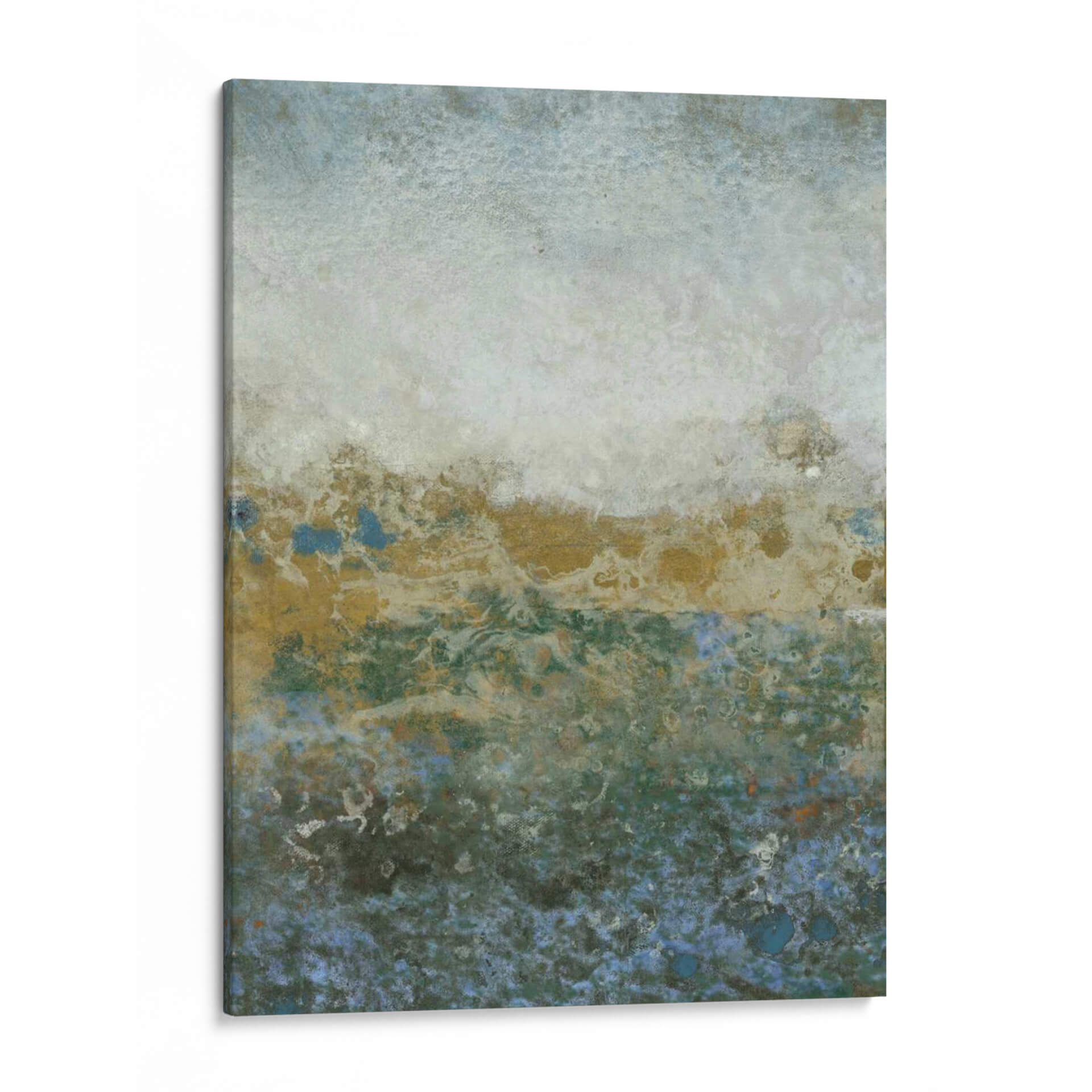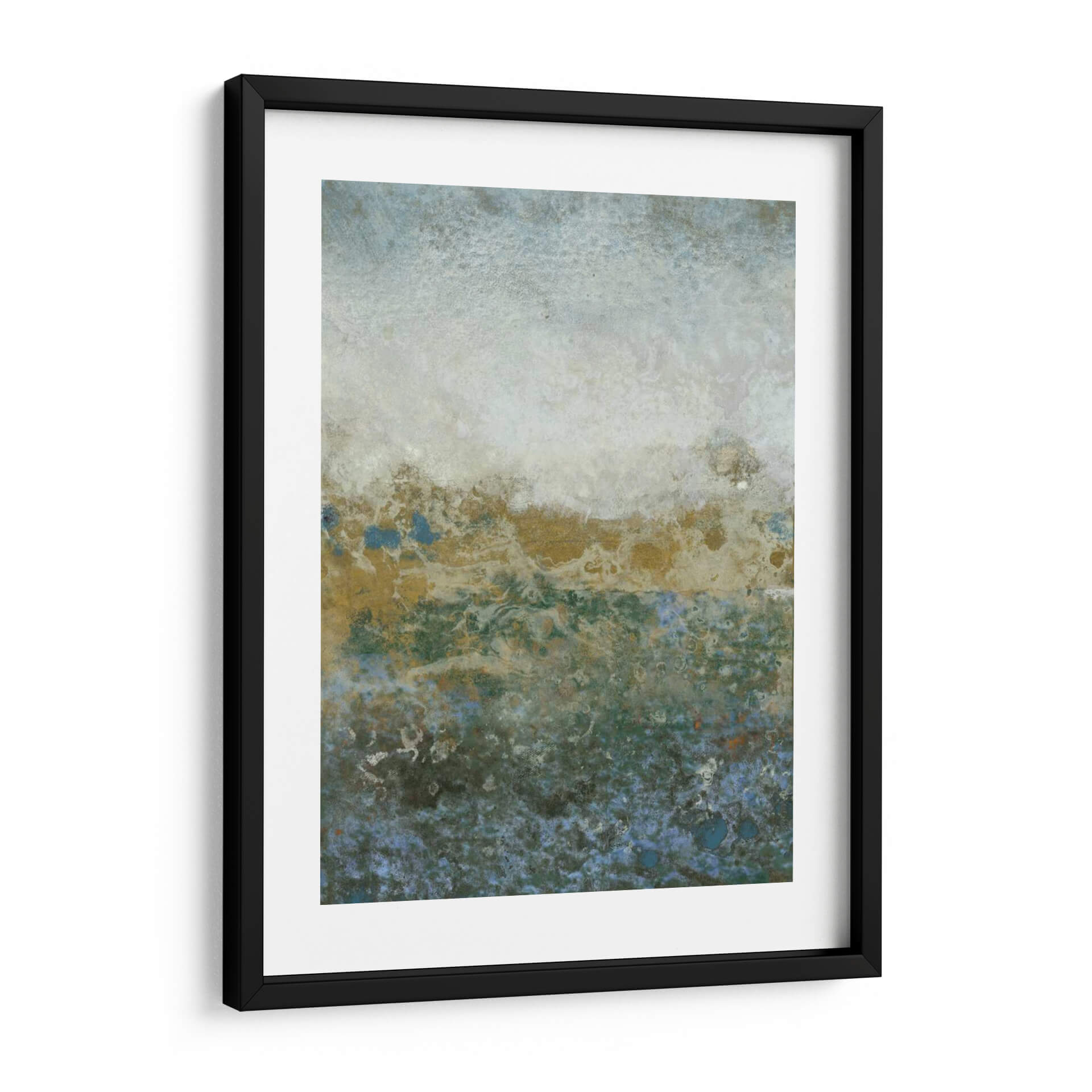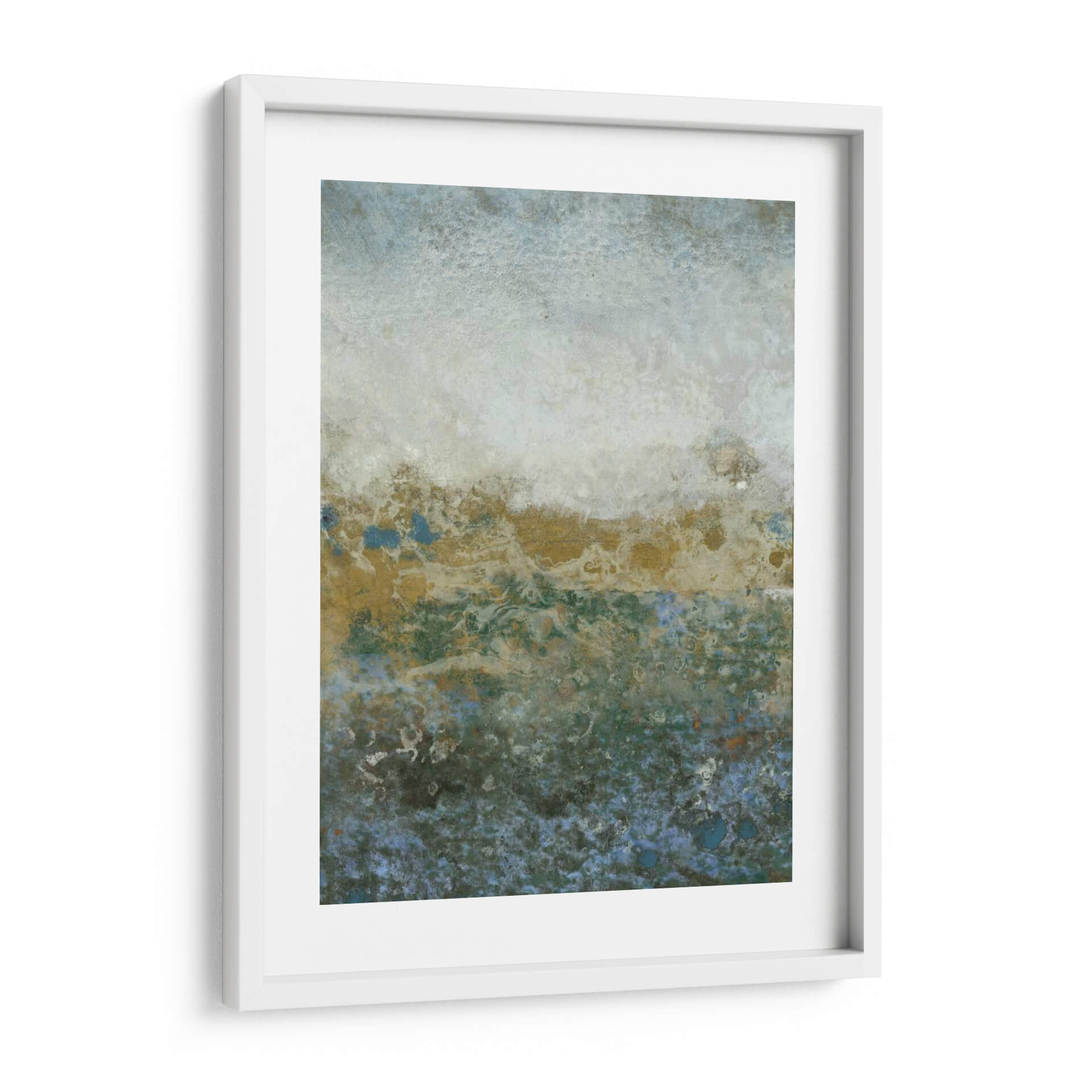 Sumérgete en la serena belleza de "Gama Acuática II", una cautivadora obra abstracta del artista Tim OToole. Esta pieza evoca la tranquilidad y la profundidad de un paisaje acuático, con una paleta de colores que transita de suaves tonos celestes y blancos en la parte superior a vibrantes verdes y azules profundos en la base, salpicados con toques de dorado terroso. La textura rica y las formas orgánicas invitan a la contemplación, creando una atmósfera de calma y misterio. La composición, que parece flotar entre lo etéreo y lo tangible, es ideal para añadir un toque de sofisticación y serenidad a cualquier espacio, ya sea un salón moderno, un dormitorio acogedor o una oficina que busca un respiro visual. "Gama Acuática II" no es solo una decoración de pared, sino una invitación a la introspección y al disfrute de la belleza abstracta, transformando tu hogar en un santuario de paz y estilo contemporáneo. Descubre la expresividad sutil y la elegancia atemporal que esta obra aportará a tu decoración.