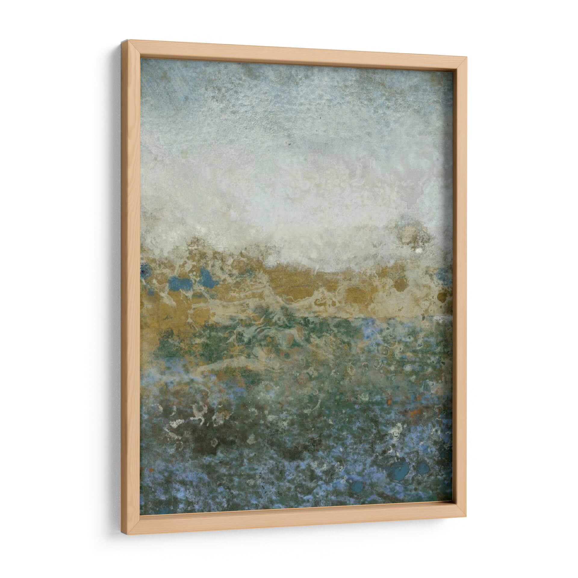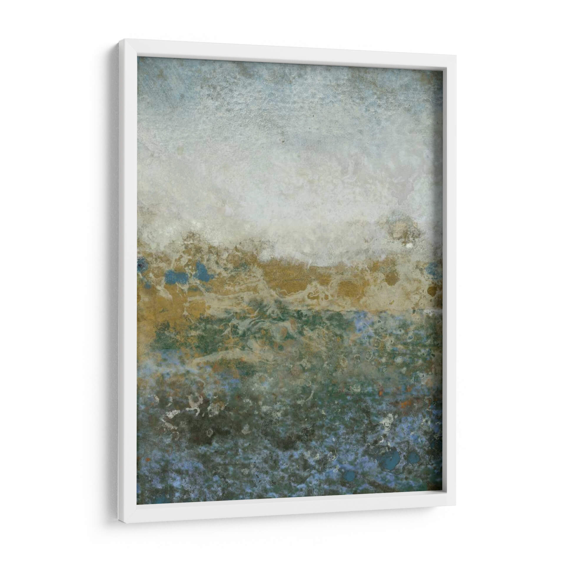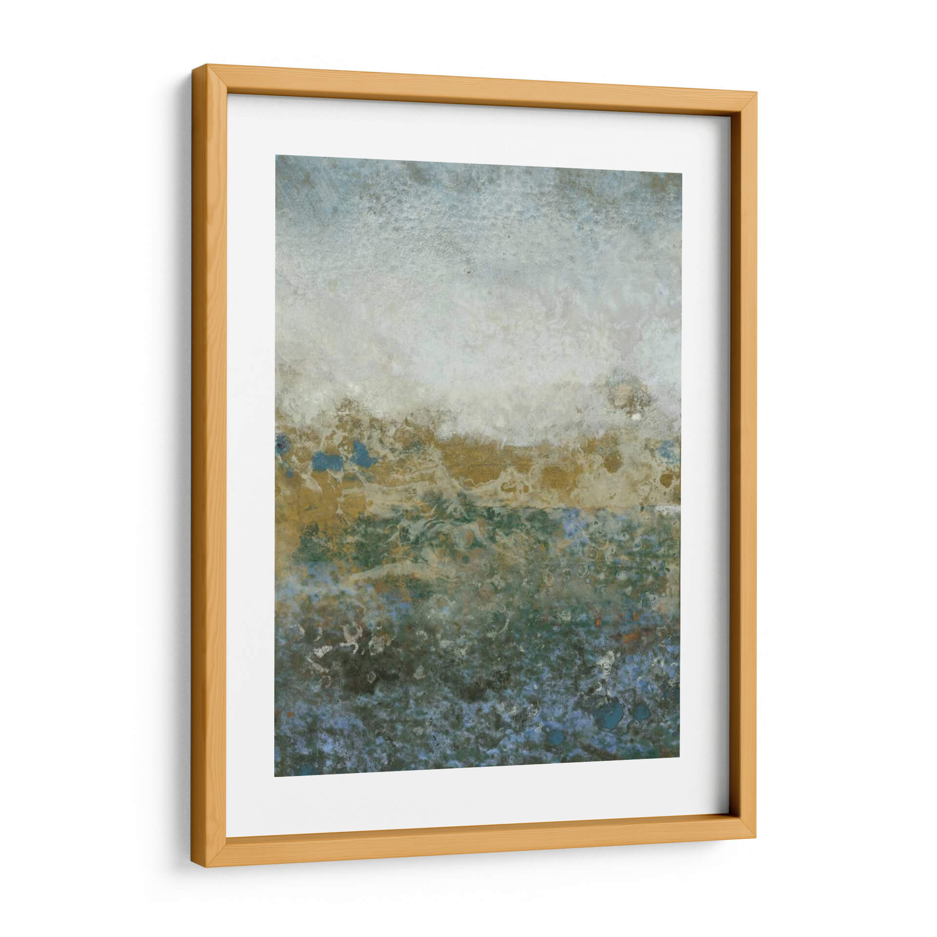 Sumérgete en la serena belleza de "Gama Acuática II", una cautivadora obra abstracta del artista Tim OToole. Esta pieza evoca la tranquilidad y la profundidad de un paisaje acuático, con una paleta de colores que transita de suaves tonos celestes y blancos en la parte superior a vibrantes verdes y azules profundos en la base, salpicados con toques de dorado terroso. La textura rica y las formas orgánicas invitan a la contemplación, creando una atmósfera de calma y misterio. La composición, que parece flotar entre lo etéreo y lo tangible, es ideal para añadir un toque de sofisticación y serenidad a cualquier espacio, ya sea un salón moderno, un dormitorio acogedor o una oficina que busca un respiro visual. "Gama Acuática II" no es solo una decoración de pared, sino una invitación a la introspección y al disfrute de la belleza abstracta, transformando tu hogar en un santuario de paz y estilo contemporáneo. Descubre la expresividad sutil y la elegancia atemporal que esta obra aportará a tu decoración.