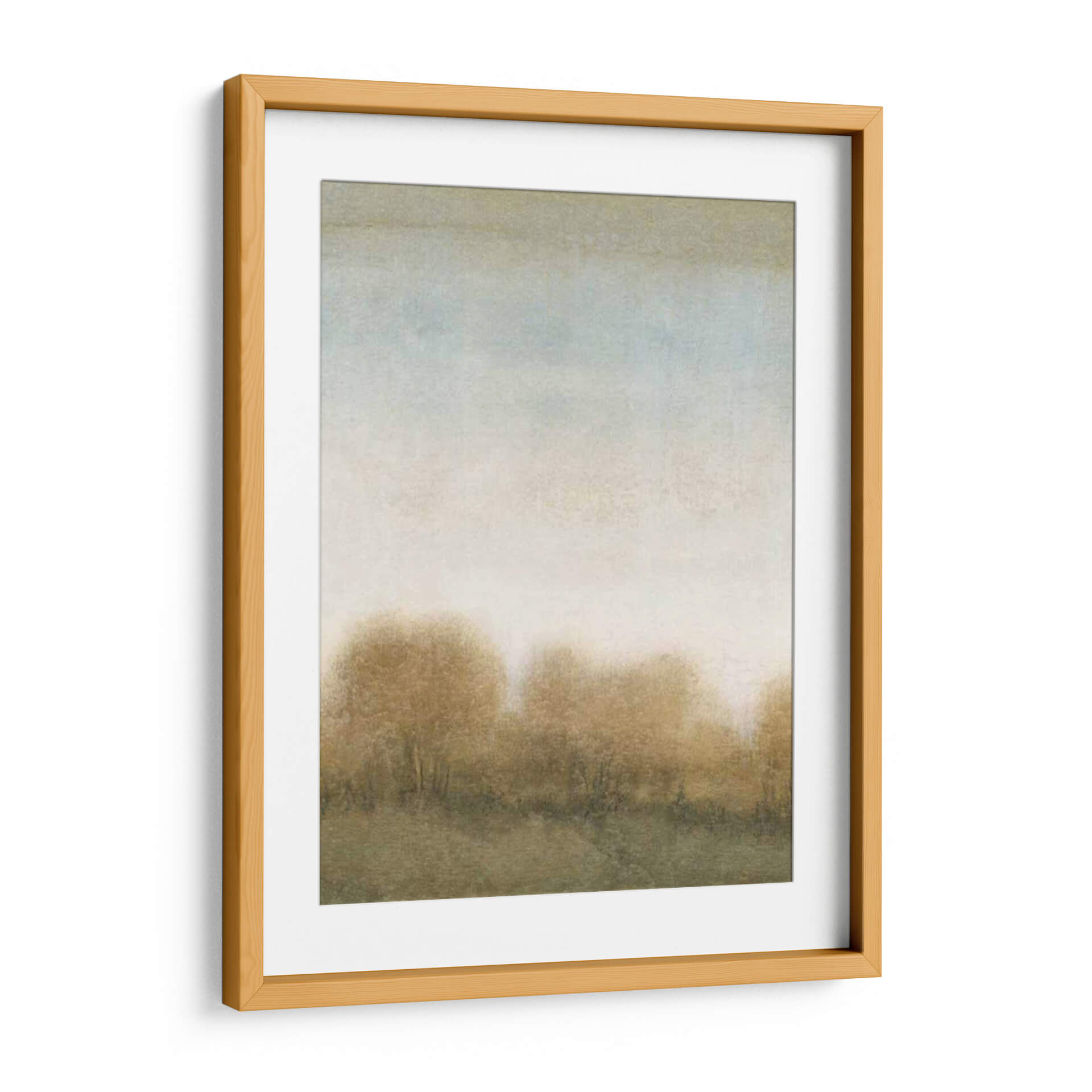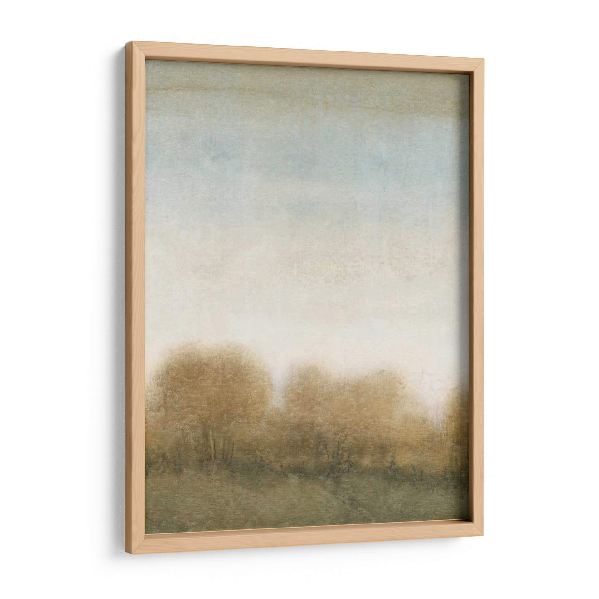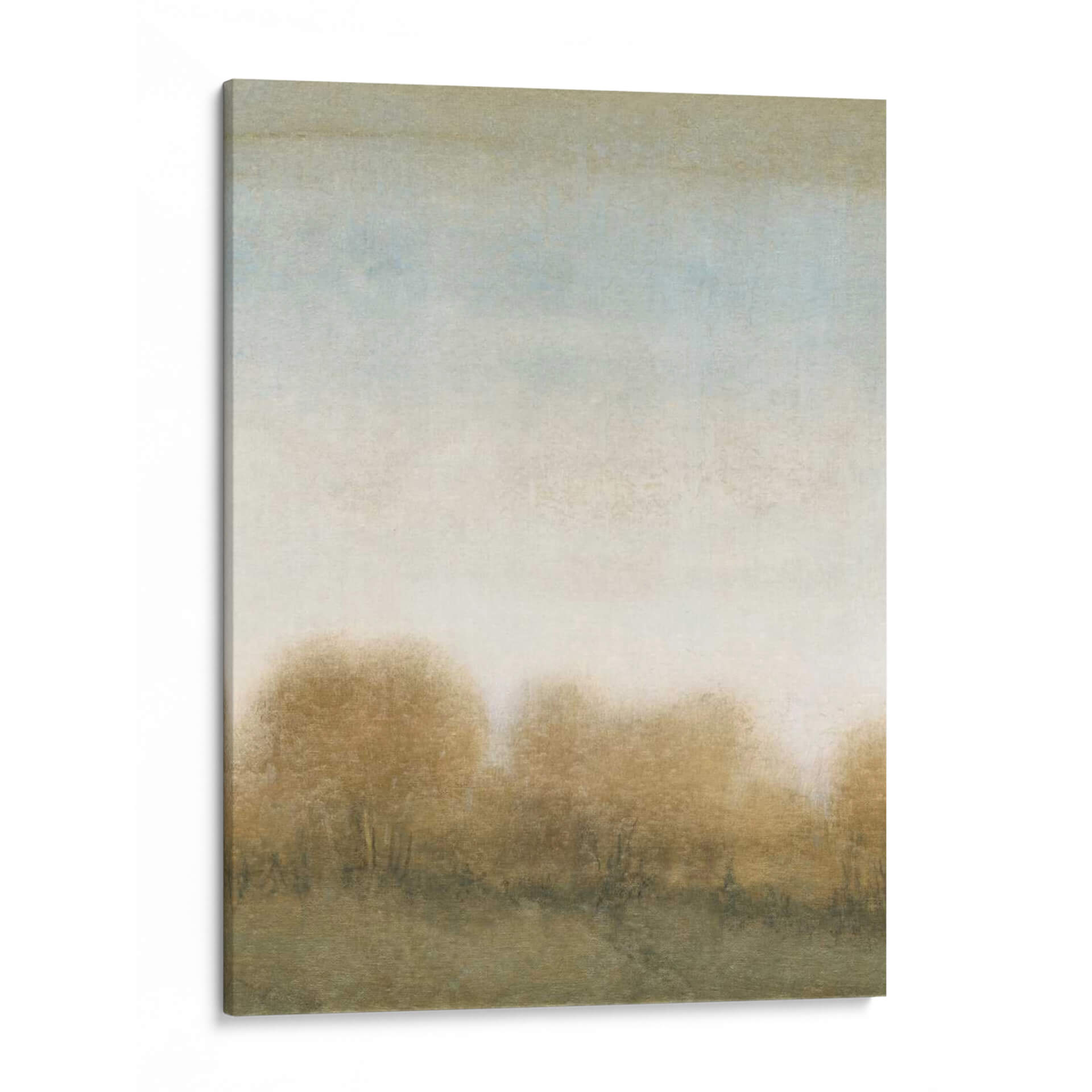 Sumérgete en la serena belleza de "Golden Treeline II", una obra de arte que evoca la tranquilidad de un bosque otoñal bañado por una luz etérea. El artista Tim O'Toole ha capturado magistralmente la esencia de un paisaje con una técnica que difumina los contornos, invitando a la contemplación. Predominan los tonos tierra cálidos, ocres y dorados, entrelazados con sutiles toques de azul pálido y gris en el cielo, creando una atmósfera de paz y nostalgia. La composición, con sus líneas horizontales suaves y la silueta difusa de los árboles en la parte inferior, transmite una sensación de amplitud y calma. Este cuadro decorativo es ideal para añadir un toque de sofisticación natural y serenidad a cualquier espacio, ya sea una sala de estar moderna, un dormitorio acogedor o una oficina que busque inspiración. La riqueza sutil de sus colores y su estilo abstracto suave lo convierten en una pieza versátil, capaz de complementar una amplia gama de decoraciones interiores, desde las más rústicas hasta las contemporáneas. "Golden Treeline II" no es solo una imagen, es una invitación a un momento de quietud y reflexión, un escape visual al corazón de la naturaleza en su estado más poético, asegurando que cada mirada sea un respiro para el alma.