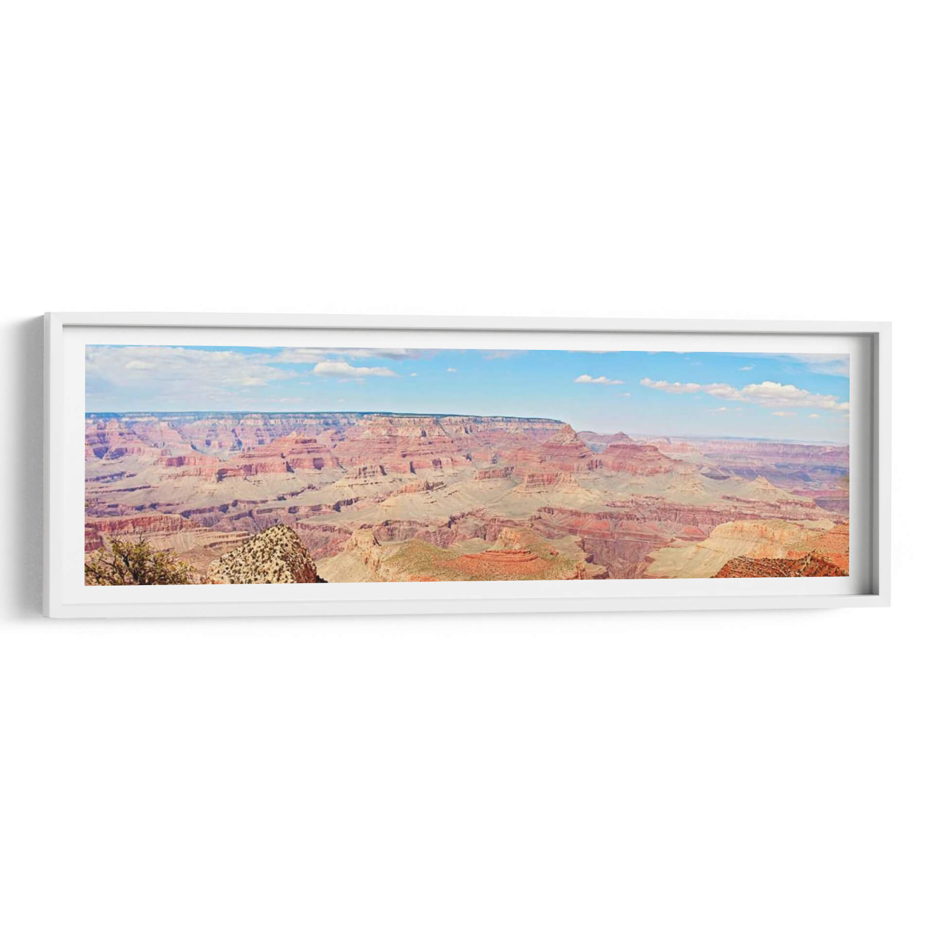 Captura la majestuosidad del Gran Cañón con 'Grand Canyon Panorama I', una obra de arte impresionante de Sylvia Coomes que transporta la grandeza de la naturaleza directamente a tu hogar u oficina. Esta panorámica de vastos cañones revela capas geológicas en tonos tierra, ocres y rojos, bañadas por la luz del sol y coronadas por un cielo azul vibrante con nubes algodonosas. La composición detallada y la perspectiva expansiva invitan a la contemplación, evocando una sensación de asombro y serenidad. Ideal para aquellos que buscan infundir sus espacios con la tranquilidad y la belleza atemporal de los paisajes naturales. Este cuadro decorativo es perfecto para salas de estar, estudios o cualquier ambiente donde se desee un punto focal inspirador y una conexión con la Tierra. La calidad de la imagen y la profundidad de los detalles geológicos crean una atmósfera de paz y aventura. Añade esta pieza maestra a tu colección y experimenta la escala monumental del Gran Cañón cada día.
