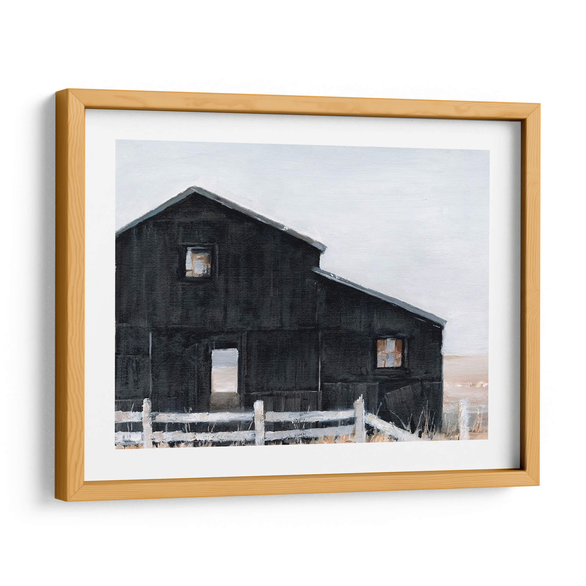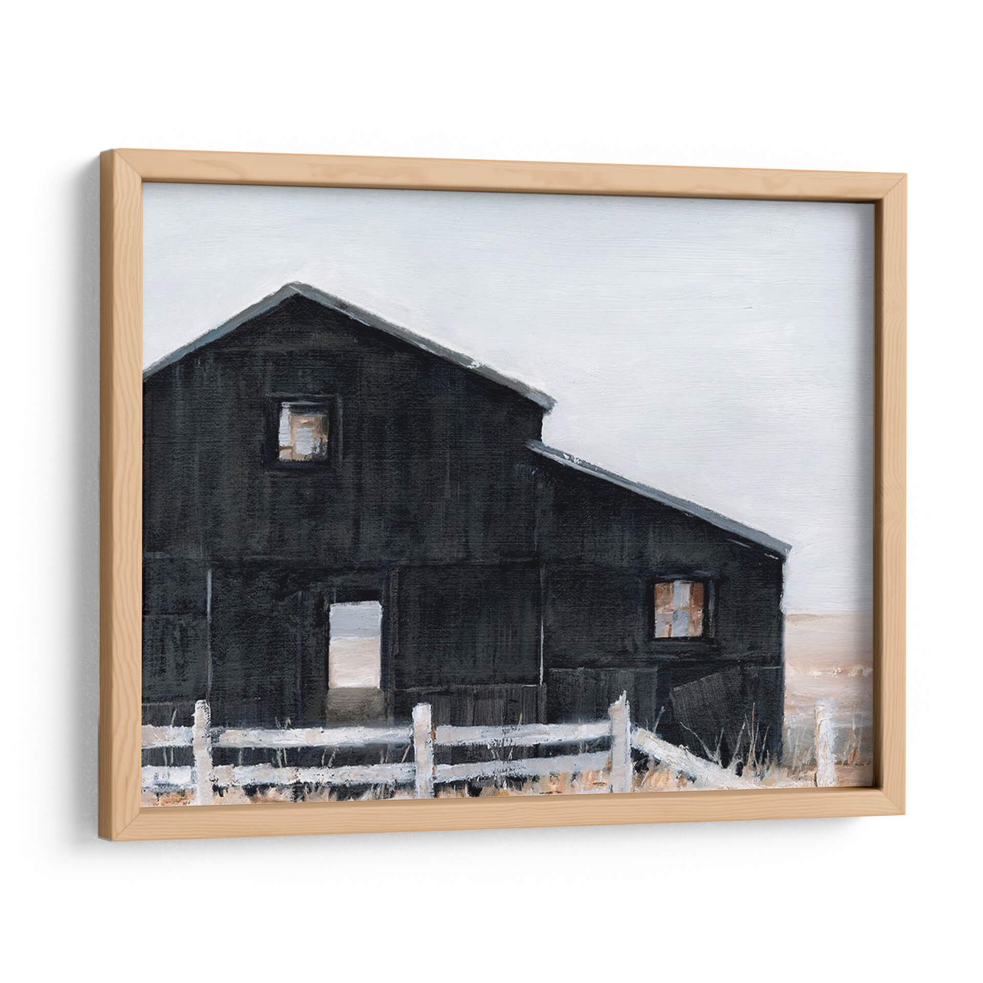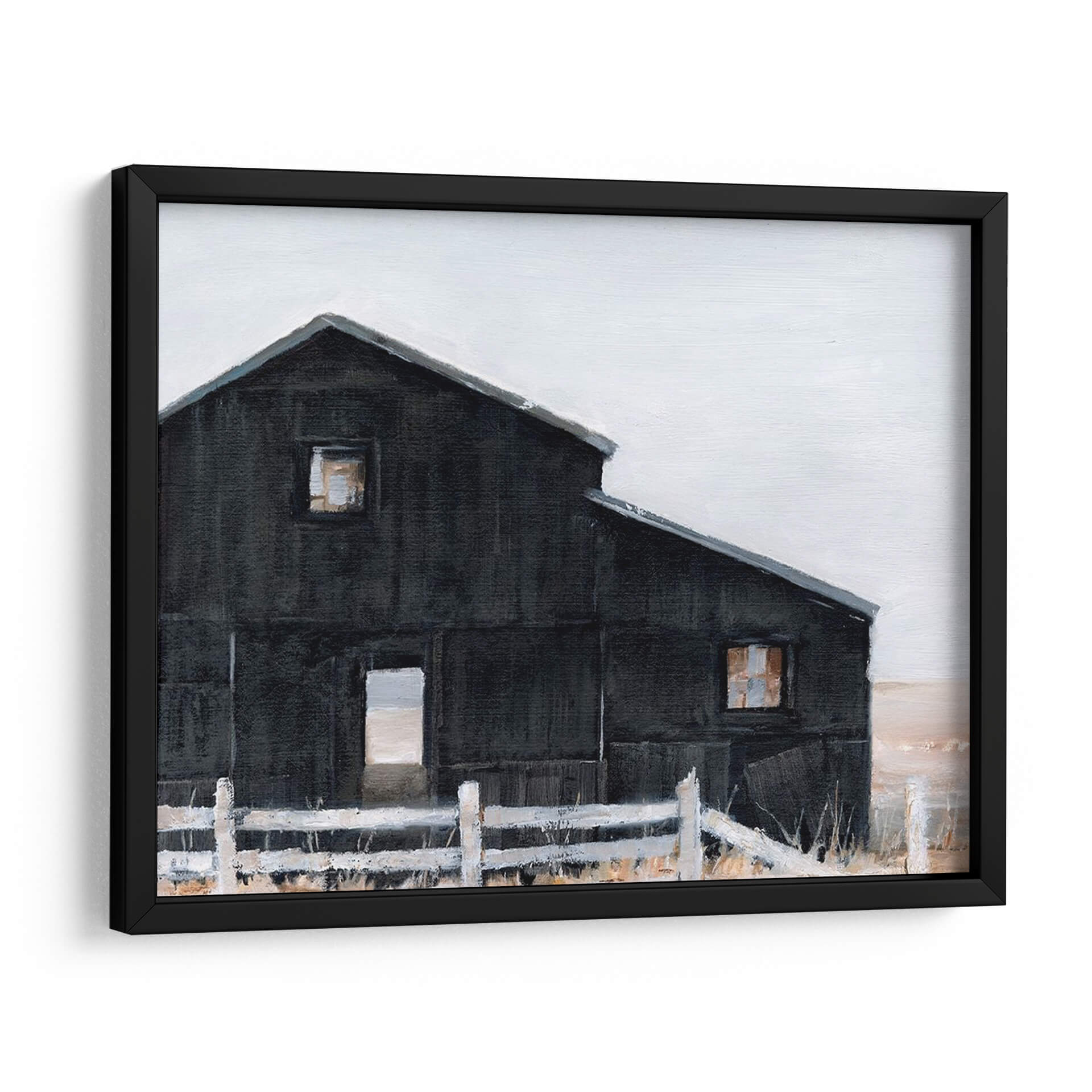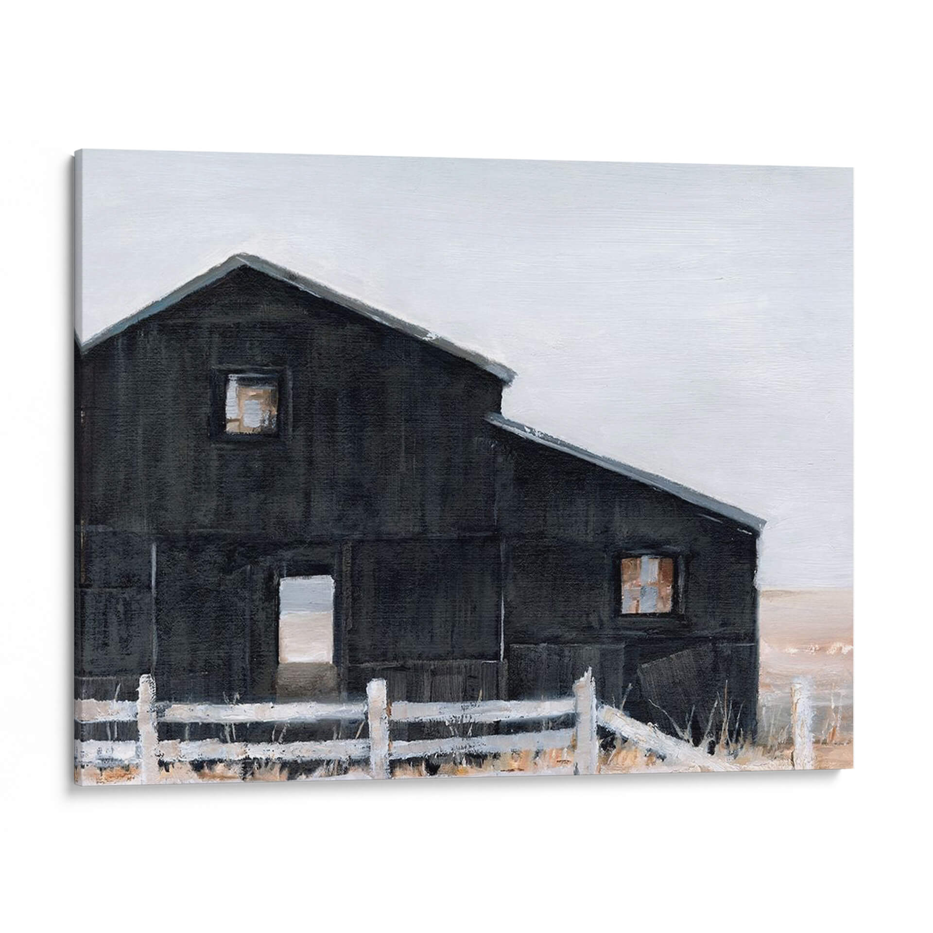 Sumérgete en la evocadora atmósfera del 'Granero Negro I', una obra de arte que captura la esencia de la vida rural con un toque contemporáneo. Este cuadro decorativo presenta un granero de color negro profundo, imponente y sereno, bajo un cielo despejado y etéreo en tonos grises y blancos. La textura de la madera del granero se percibe a través de pinceladas audaces, mientras que las ventanas emiten una luz tenue que insinúa historias pasadas. Un cercado blanco rústico en primer plano añade un contraste encantador y define la conexión con la tierra. La paleta de colores se centra en tonos oscuros y neutros, con sutiles toques de blanco y ocres suaves, creando una sensación de calma y introspección. El estilo pictórico, con influencias del impresionismo y una ejecución que roza lo abstracto en ciertos detalles, dota a la pieza de profundidad y carácter. Este cuadro decorativo es ideal para añadir un punto focal de serenidad y elegancia rústica a tu sala de estar, estudio u oficina. Su diseño minimalista pero impactante lo convierte en una pieza versátil que complementa tanto decoraciones modernas como tradicionales, aportando una dosis de naturaleza y tranquilidad a cualquier espacio.