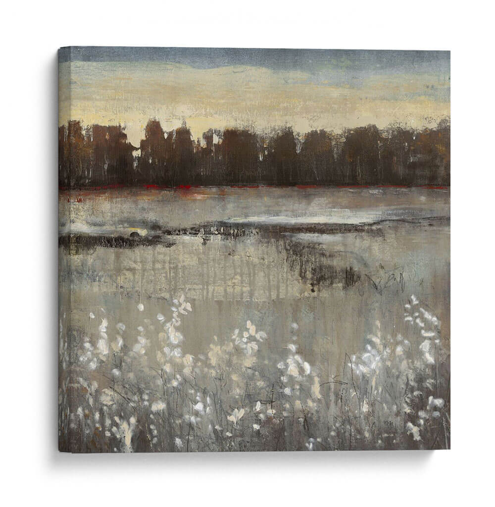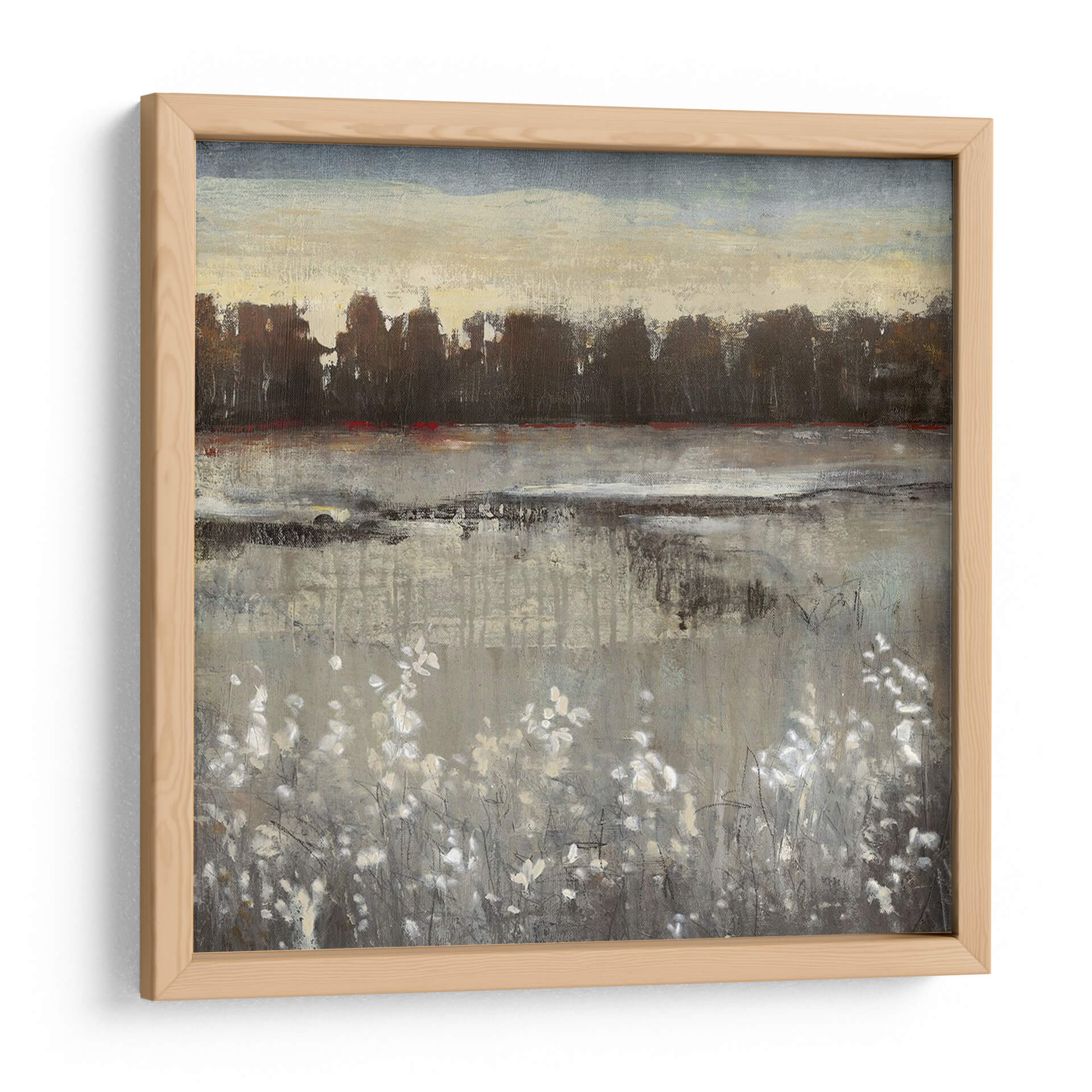 Sumérgete en la serena belleza del cuadro "Grove Distante II" de Tim O'Toole, una obra que captura la esencia etérea de un paisaje al atardecer. Esta pieza evoca una profunda sensación de calma y contemplación, transportando al espectador a un momento de quietud junto a un lago sereno, rodeado por la silueta de árboles oscuros y una vegetación delicada en primer plano. La paleta de colores, dominada por tonos tierra, grises suaves y toques de luz dorada y bermellón, crea una atmósfera melancólica y a la vez acogedora. Las pinceladas texturizadas y el estilo semi-abstracto invitan a la interpretación, haciendo de cada mirada una experiencia única. "Grove Distante II" es ideal para añadir un toque de sofisticación y tranquilidad a cualquier espacio, ya sea un salón moderno, un estudio o un dormitorio que busque un refugio de paz. Su composición equilibrada y su aura contemplativa lo convierten en una adición valiosa para coleccionistas y amantes del arte que aprecian la belleza sutil de la naturaleza y la expresión artística contemporánea.
