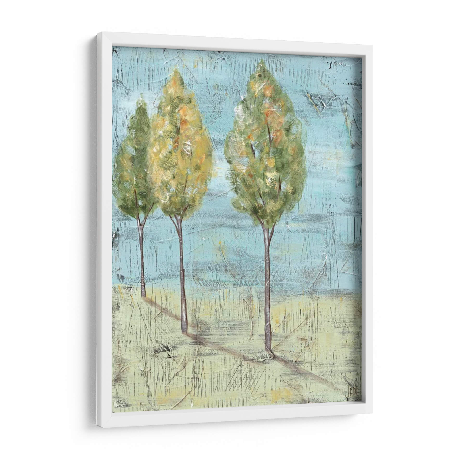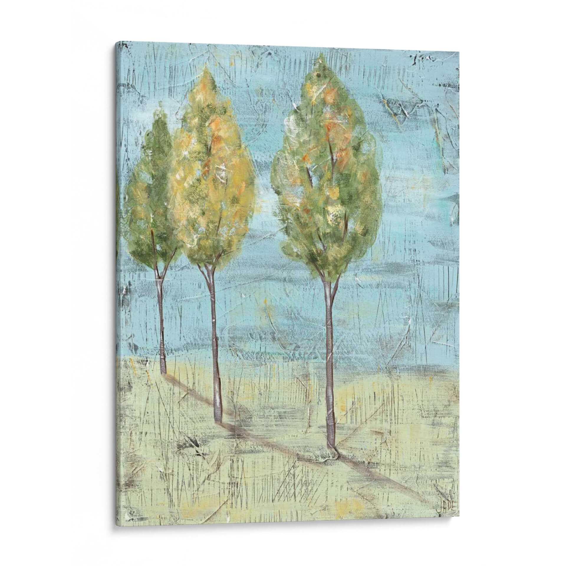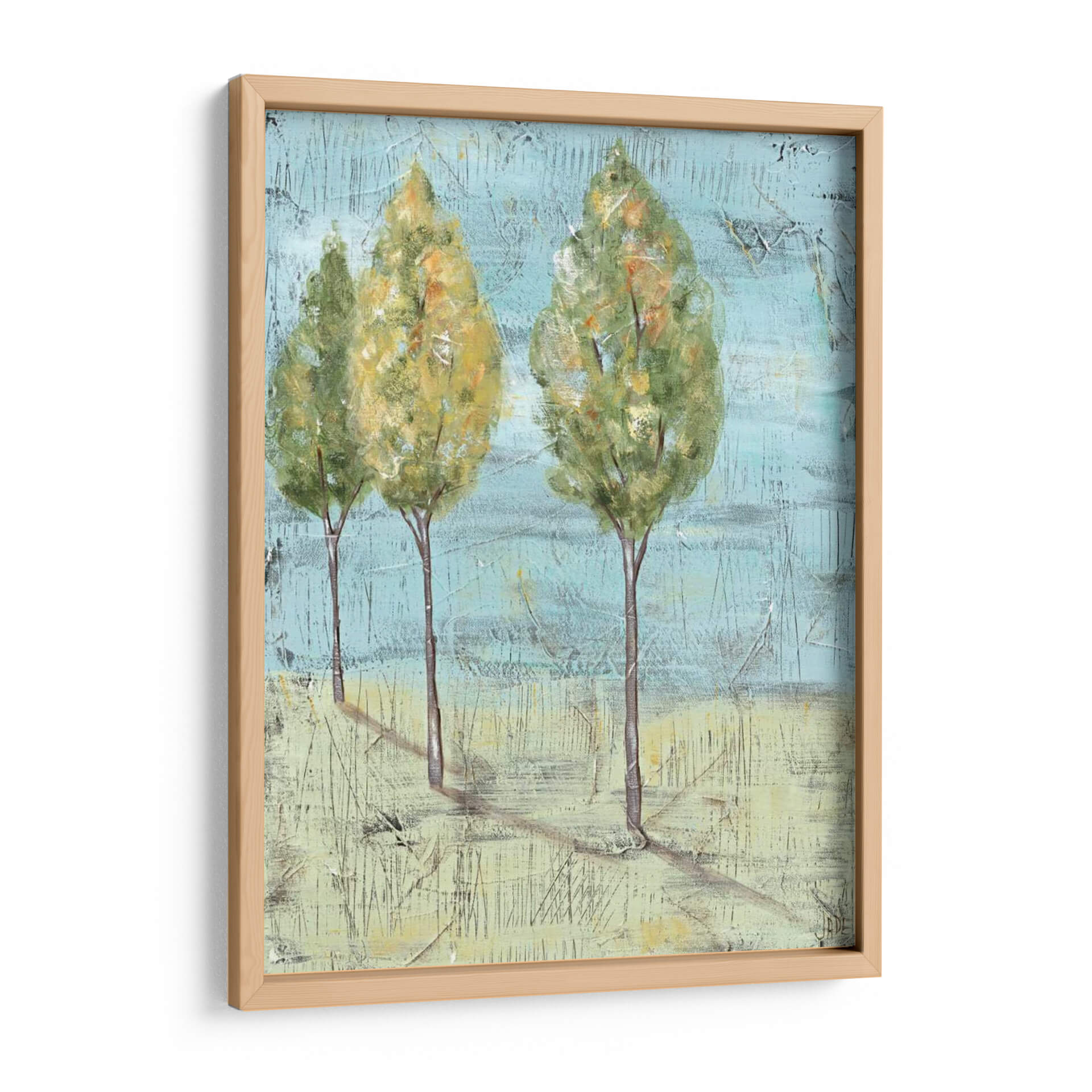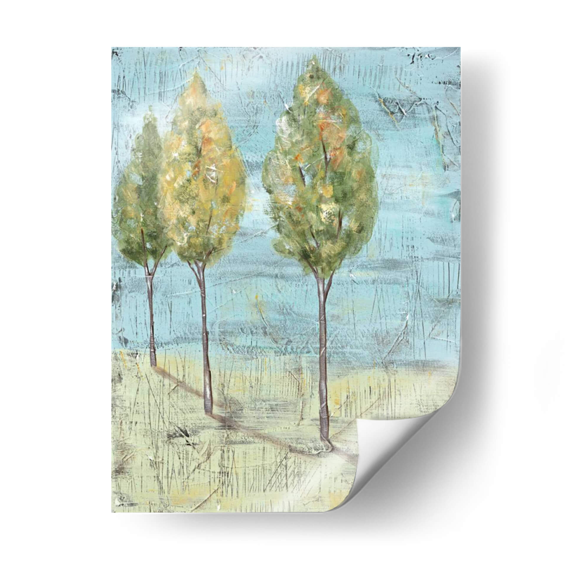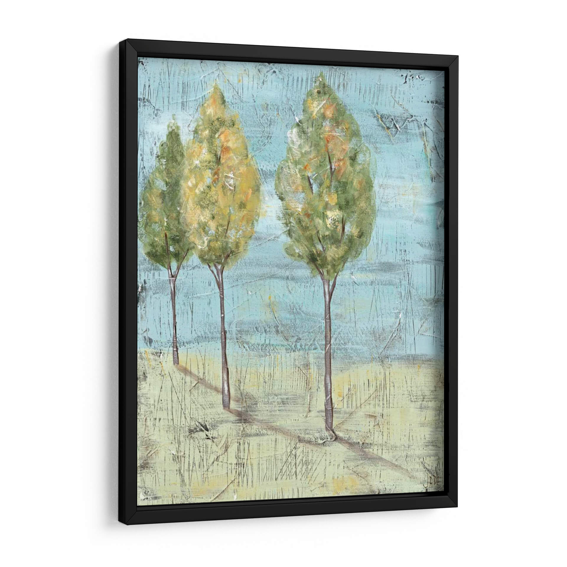 Sumérgete en la serenidad del paisaje con "Grove I", una obra de arte contemporáneo de Jade Reynolds. Este cuadro decorativo captura la esencia de un bosquecillo en un día tranquilo, con árboles estilizados que se alzan contra un cielo en tonos azules y celestes. La paleta de colores, dominada por verdes suaves, amarillos cálidos y azules etéreos, crea una atmósfera de calma y reflexión, perfecta para transformar cualquier espacio en un refugio de paz. La textura rica y las pinceladas visibles añaden profundidad y carácter, invitando al espectador a perderse en los detalles. Ideal para salones, dormitorios o estudios, este cuadro abstracto es una invitación a la contemplación y una adición elegante a la decoración moderna. Su composición equilibrada y su aire atemporal lo convierten en una pieza versátil que complementa una amplia gama de estilos decorativos, desde el minimalista hasta el bohemio. "Grove I" no es solo una obra de arte, es una ventana a la tranquilidad natural que aporta vida y color a tu hogar.