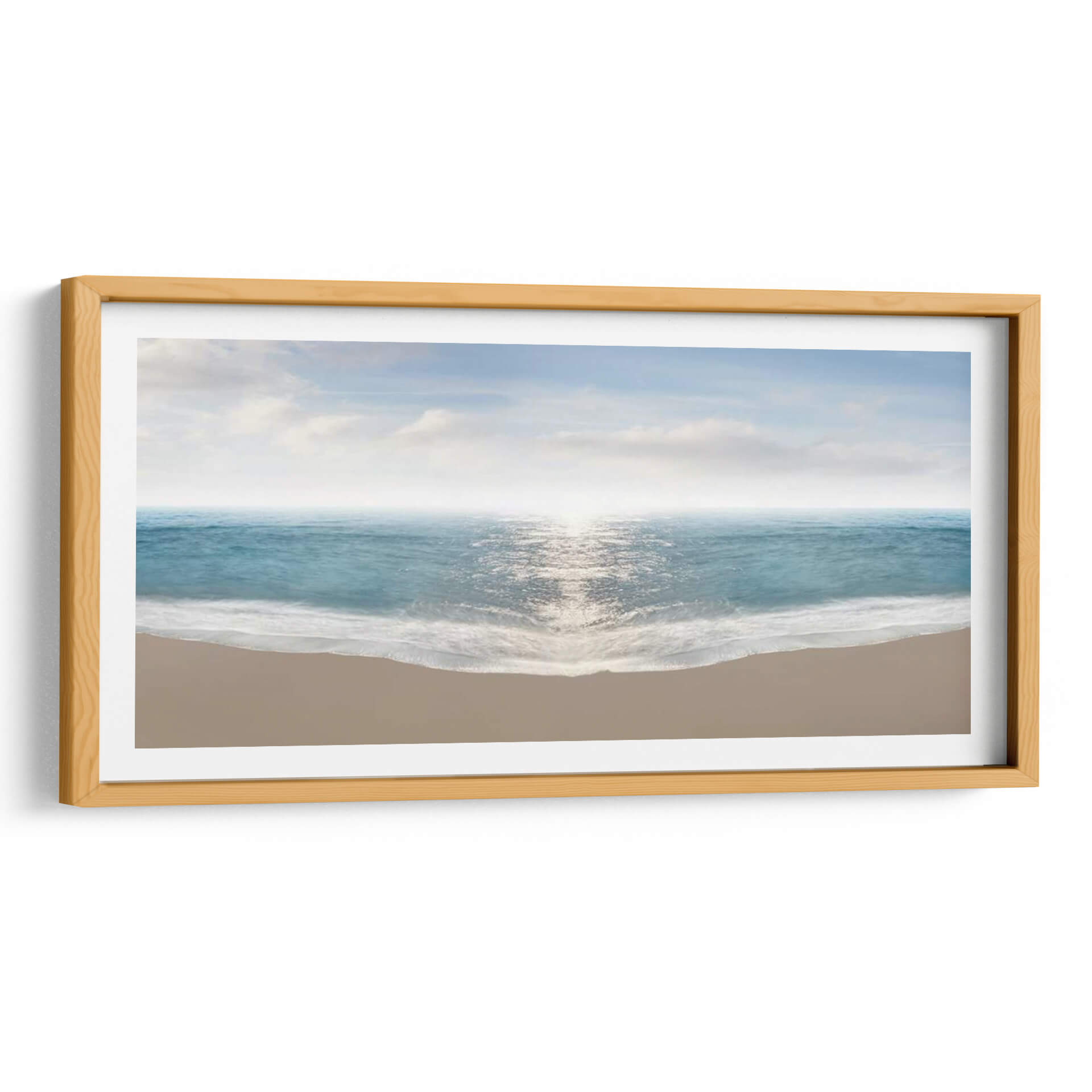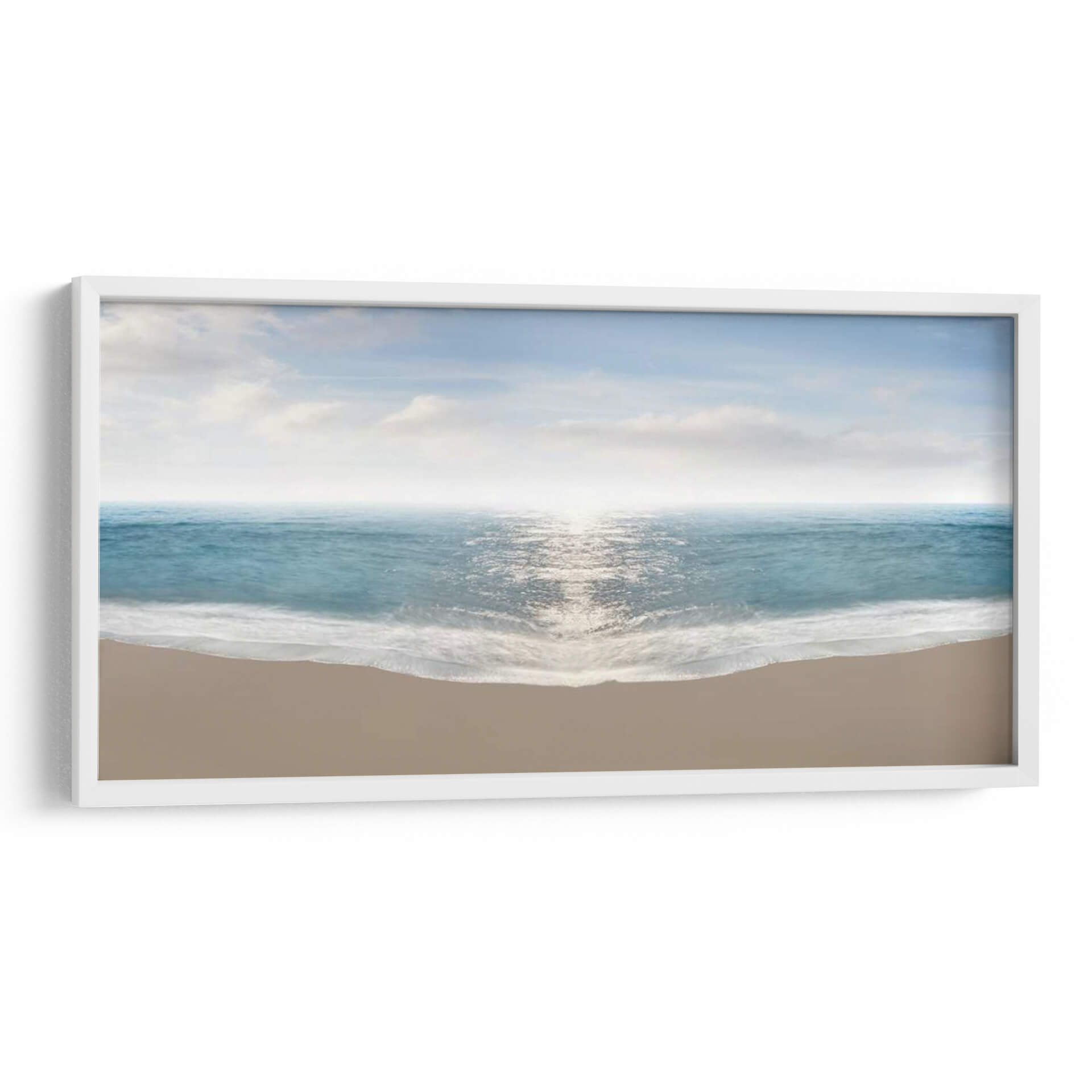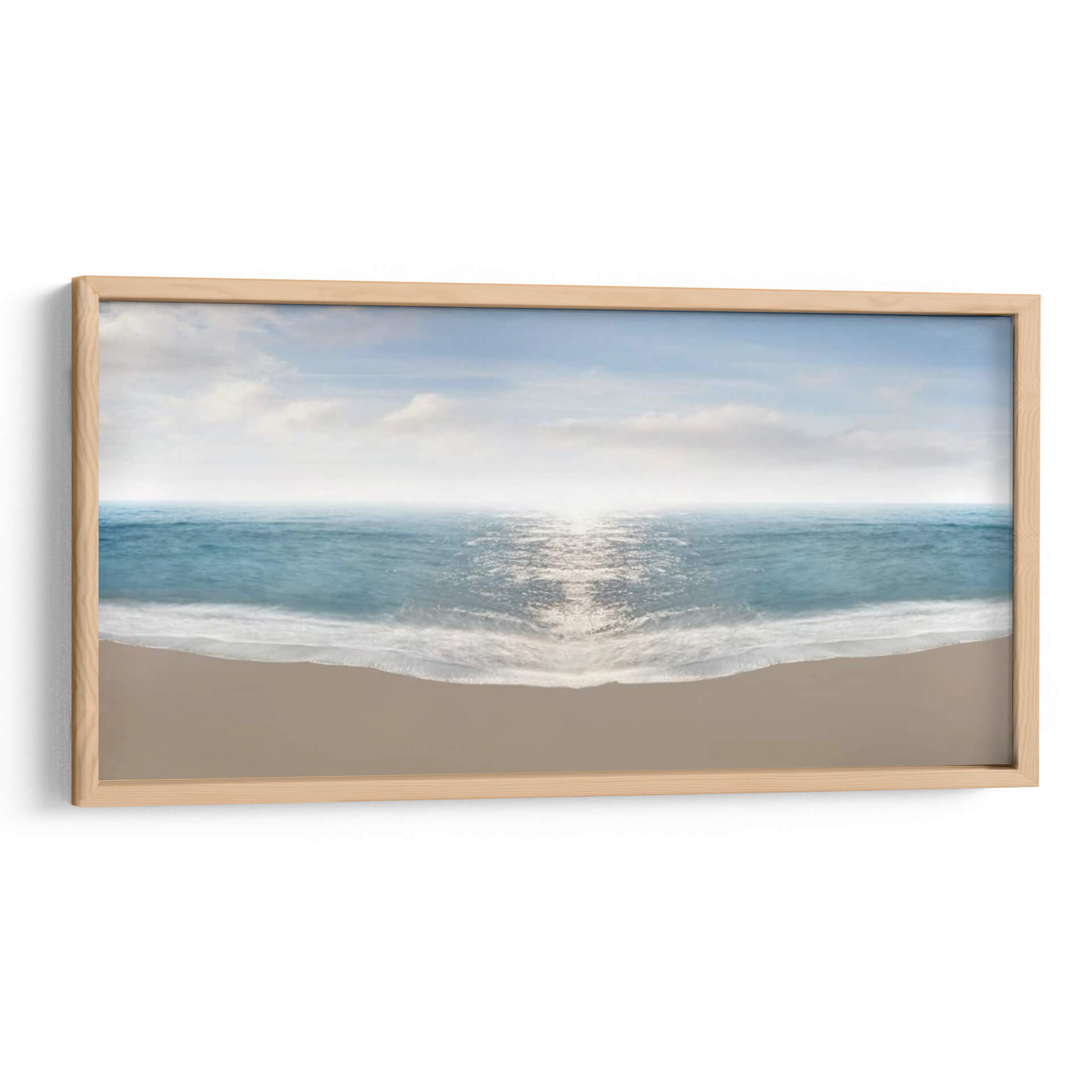 Sumérgete en la serenidad del océano con "Hamptons III", una obra de arte que captura la inmensidad y la calma de la costa. Este cuadro decorativo presenta una vista panorámica de la playa, donde las suaves olas rompen en la orilla con delicadeza, reflejando la luz del sol en un mar de tonalidades azules y turquesas vibrantes. El horizonte se difumina en una bruma luminosa, separando el mar del cielo despejado, salpicado por nubes etéreas que añaden profundidad y una sensación de amplitud. La arena dorada en primer plano proporciona una base terrenal y cálida, creando un contraste sereno con la frescura del agua. El estilo de James McLoughlin evoca una atmósfera de paz y contemplación, ideal para espacios que buscan transmitir tranquilidad y conexión con la naturaleza. Este cuadro es perfecto para añadir un toque de escapismo y belleza natural a tu salón, dormitorio o cualquier rincón que desees transformar en un oasis de calma. Su composición equilibrada y su paleta de colores armoniosa lo convierten en una pieza versátil que complementa una amplia gama de estilos decorativos, desde el moderno hasta el costero, aportando una sensación de amplitud y luminosidad a cualquier ambiente.