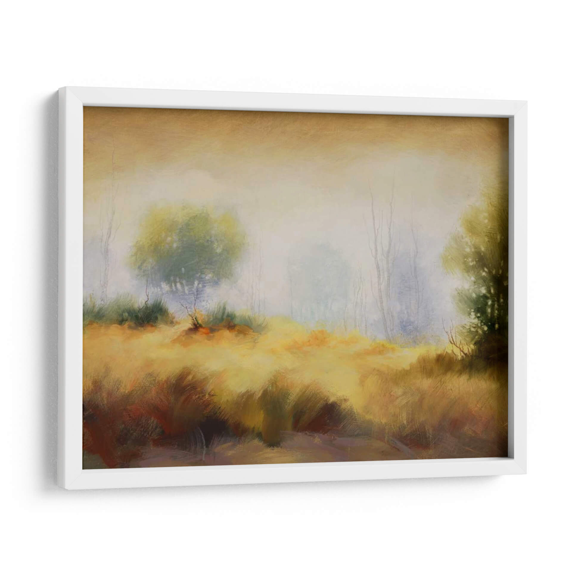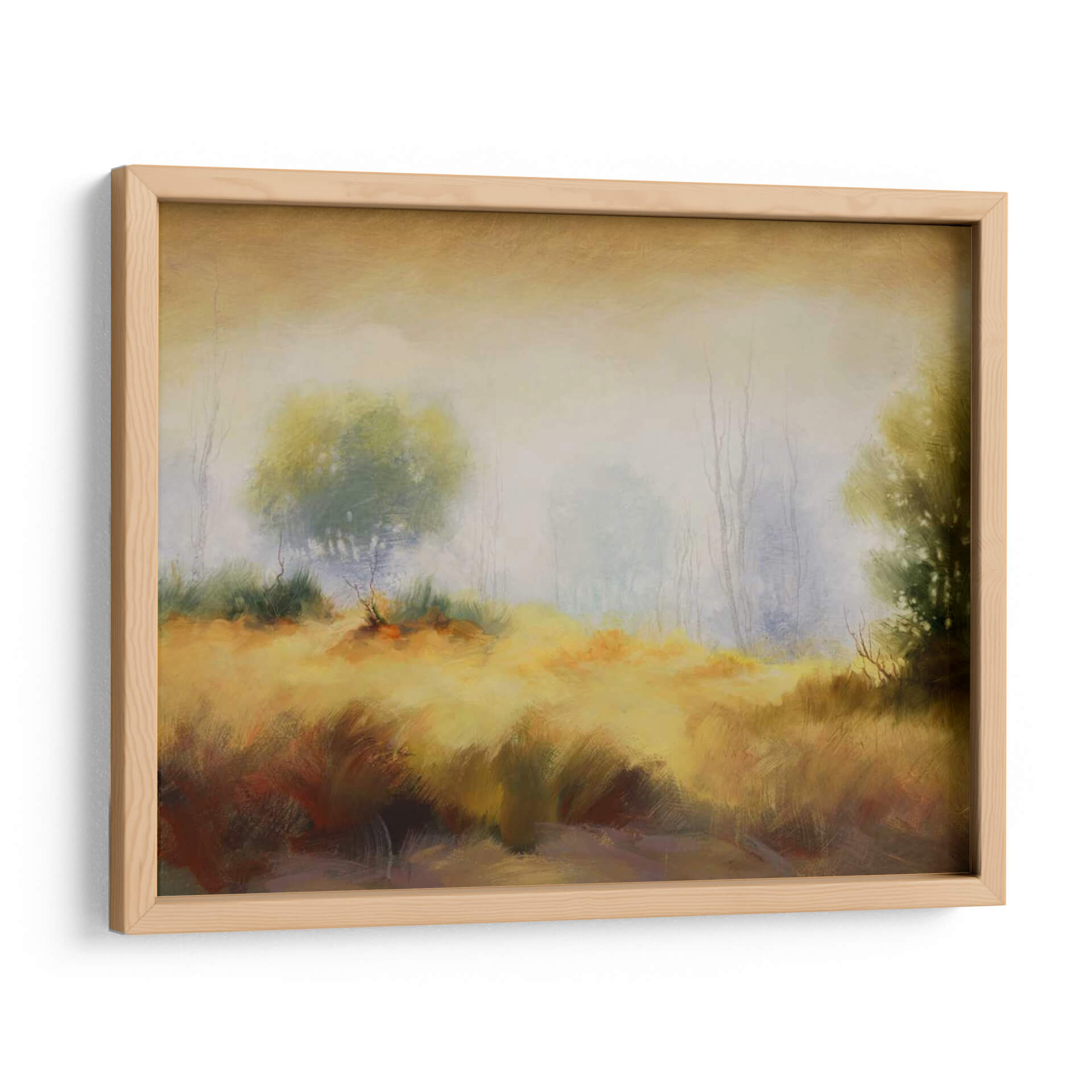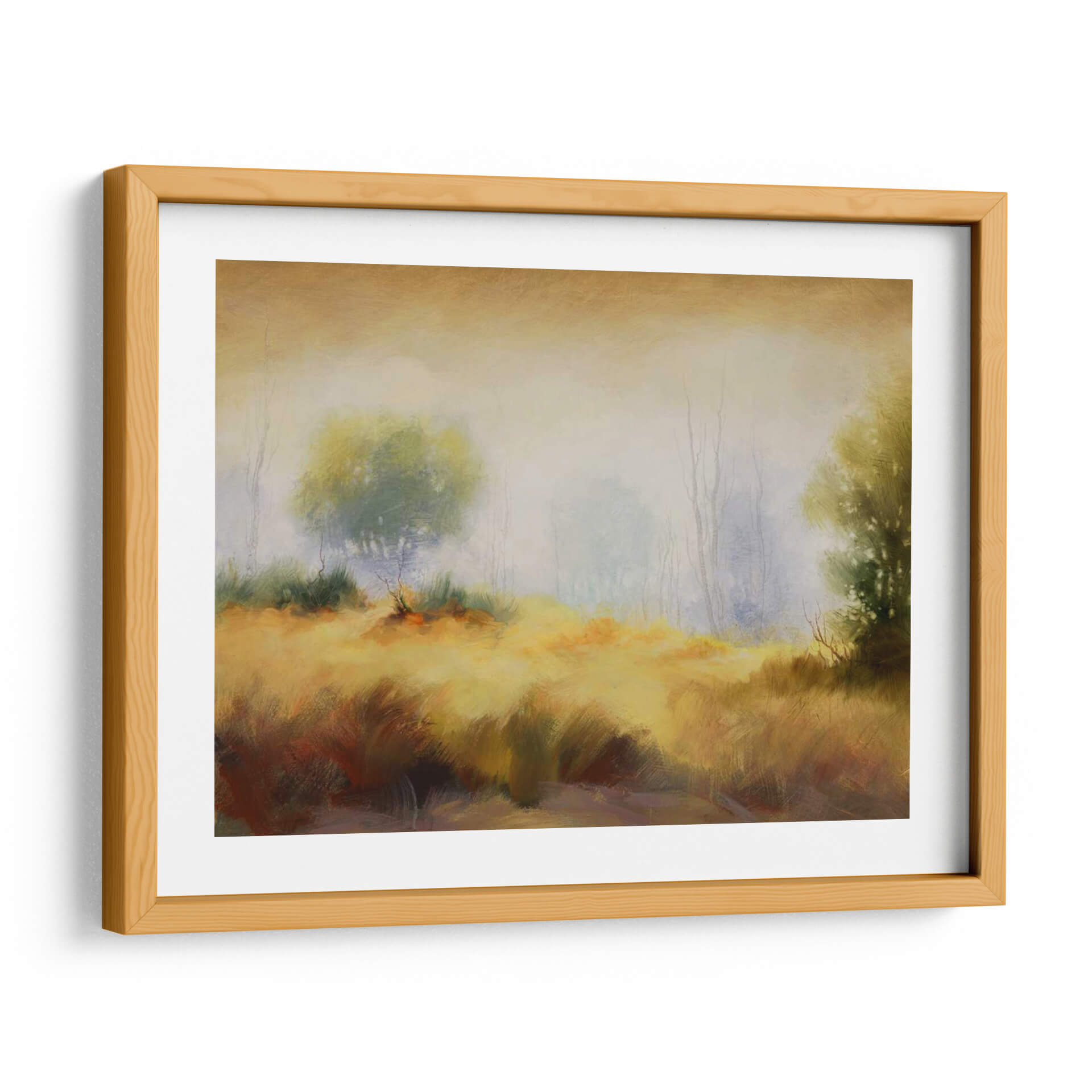 Sumérgete en la serena belleza de "Hinterland 10", una obra de arte que evoca la quietud y la majestuosidad de un paisaje natural bañado por una luz etérea. Este cuadro decorativo captura un momento de paz profunda, con pinceladas sueltas y atmosféricas que sugieren la profundidad de un bosque y la calidez de un campo dorado. La paleta de colores, dominada por tonos ocres, amarillos vibrantes y verdes suaves, crea una atmósfera envolvente y acogedora, ideal para infundir tranquilidad en cualquier espacio. La composición, con árboles difuminados por la bruma y la hierba que parece danzar con la brisa, invita a la contemplación y a la evasión. "Hinterland 10" es más que una simple imagen; es una ventana a la naturaleza que aporta calma y sofisticación a tu hogar u oficina. Perfecto para quienes buscan arte contemporáneo que conecte con la esencia de la naturaleza y aporte un toque de serenidad y estilo a sus paredes, transformando cualquier habitación en un santuario de paz.