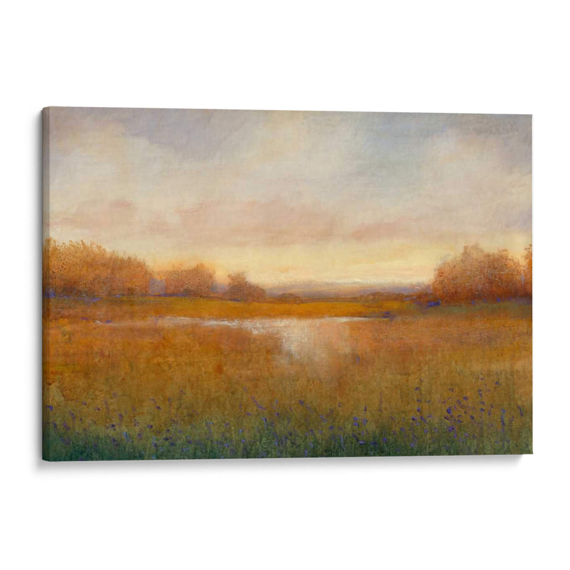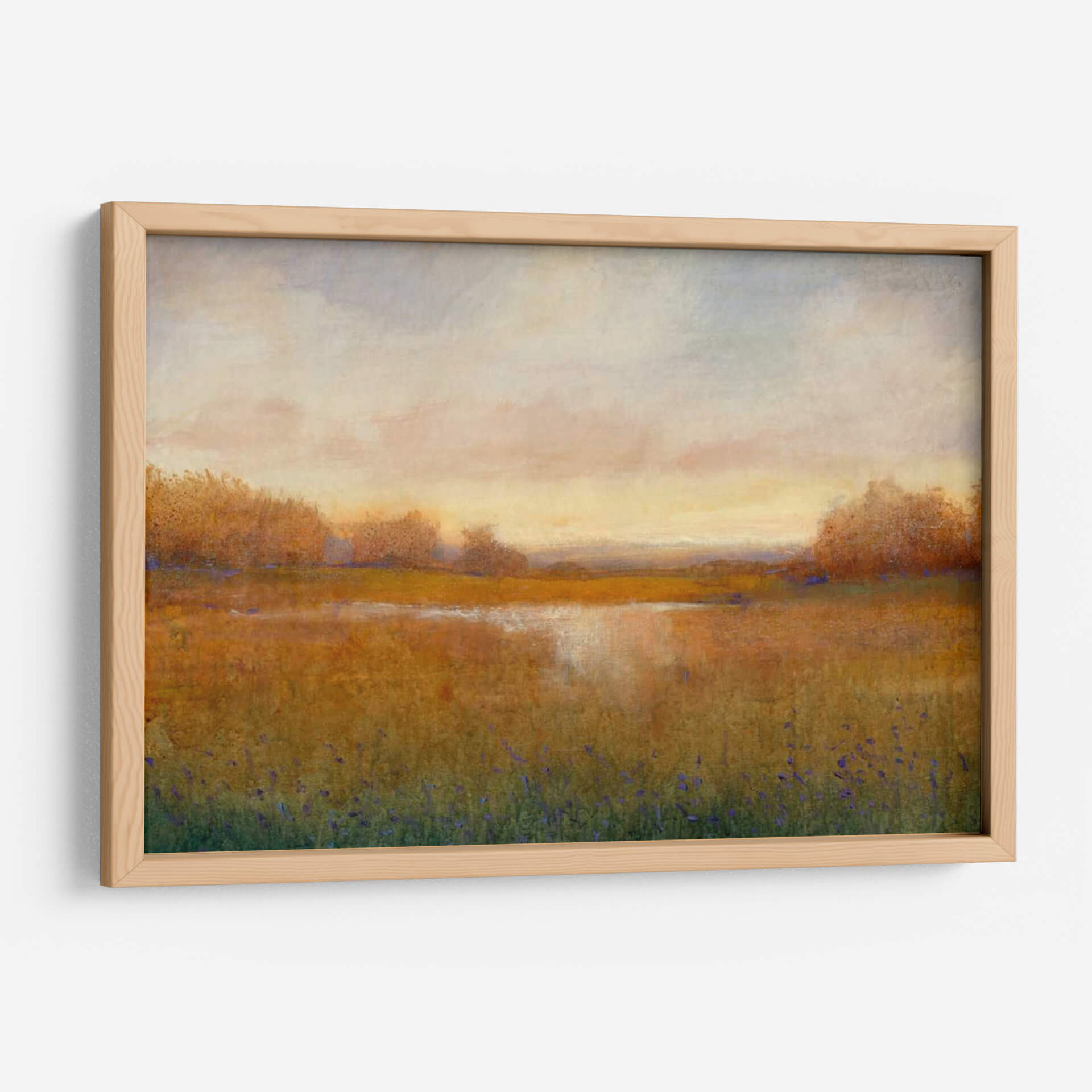 Sumérgete en la serenidad del paisaje bañado por la luz del atardecer con "Hora Dorada II", una obra de arte que captura la calidez y la tranquilidad de un momento efímero. Los tonos ocres y dorados, junto con sutiles toques de azul y lavanda, crean una atmósfera etérea que invita a la contemplación. Las pinceladas evocan la textura de la hierba alta y la suavidad de las nubes, mientras que el reflejo del cielo en el agua añade profundidad y realismo a la escena. Este cuadro decorativo es perfecto para transformar cualquier espacio, aportando una sensación de paz y conexión con la naturaleza. Ideal para salones, dormitorios o estudios, "Hora Dorada II" se convierte en un punto focal que inspira calma y bienestar, añadiendo un toque de sofisticación contemporánea a tu decoración. Su estilo evocador y su paleta de colores cálidos lo hacen versátil para integrarse en diversos estilos de interiores, desde el moderno hasta el rústico.