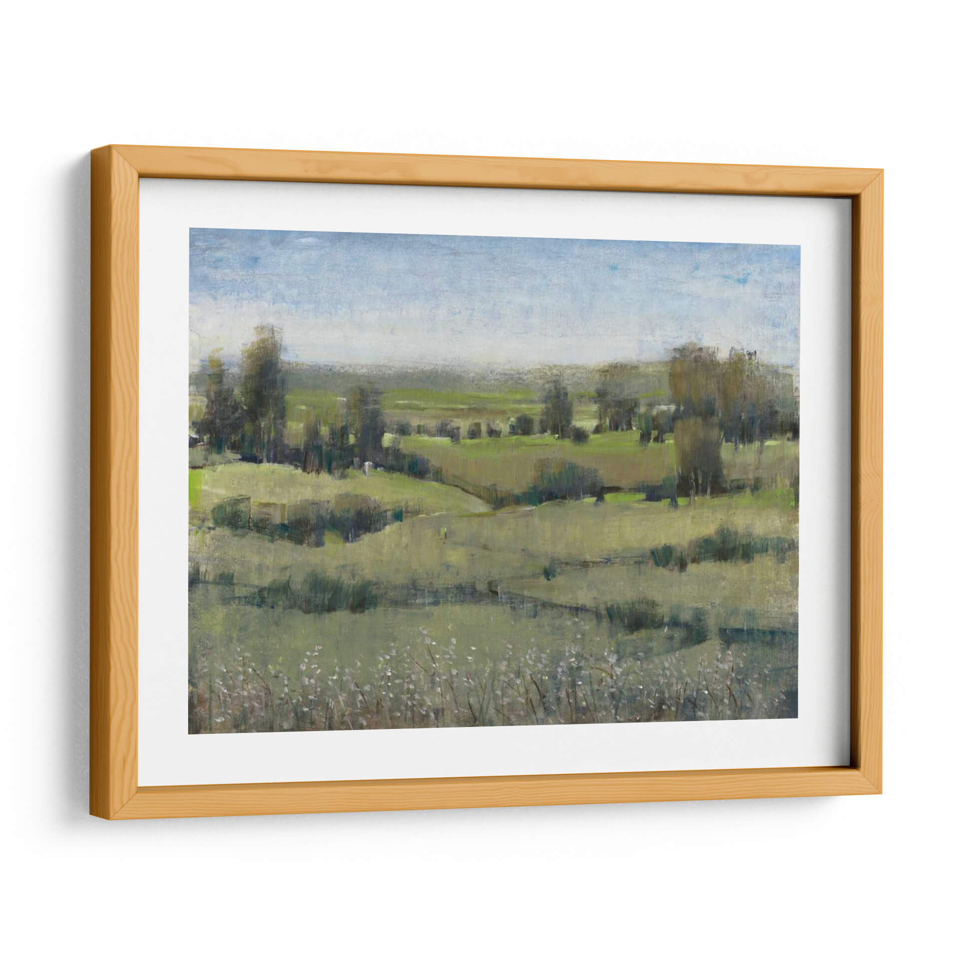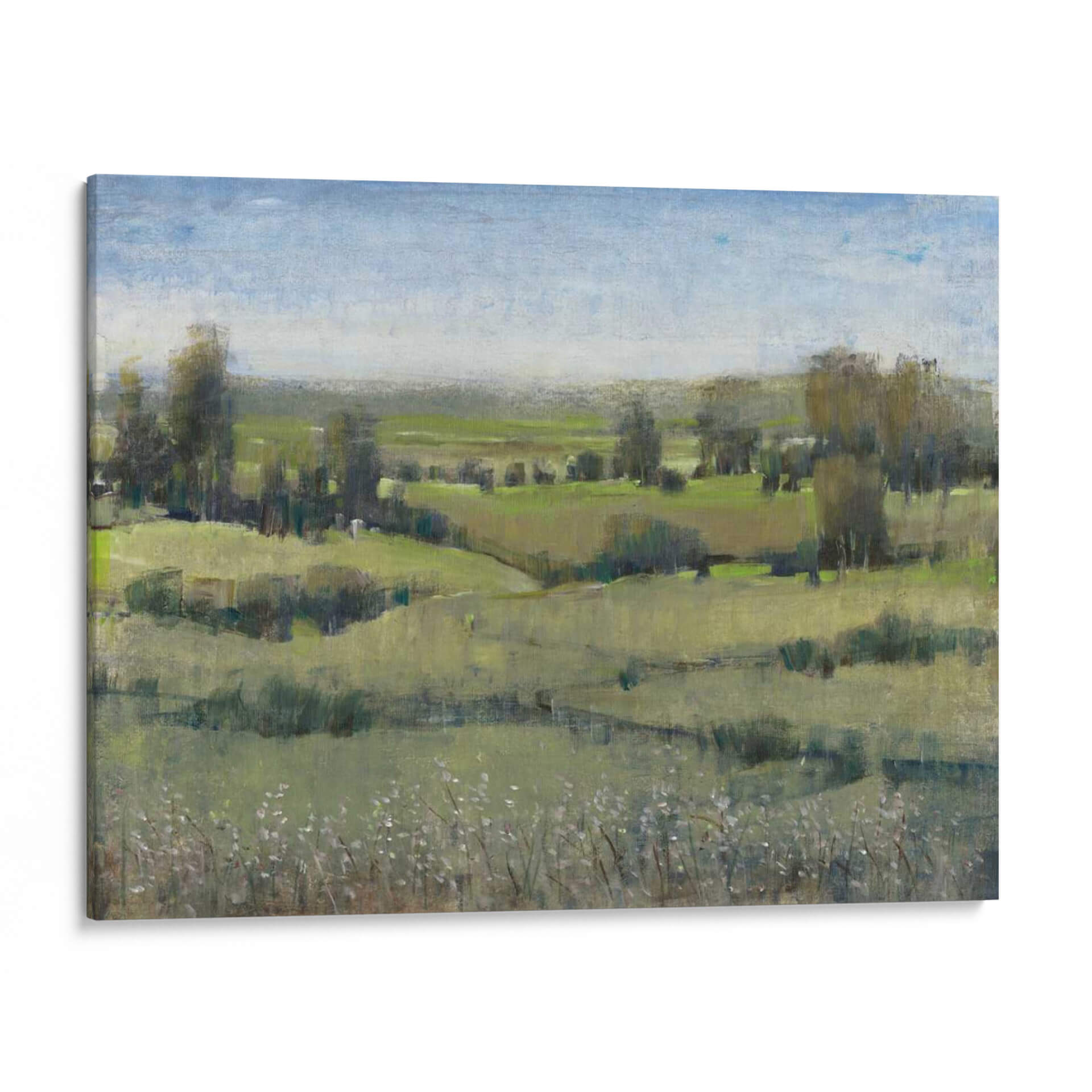 Transporta tu espacio a la serenidad de un nuevo amanecer con "Horizonte De La Mañana II", una obra de arte evocadora del artista Tim OToole. Este cuadro decorativo captura la esencia sutil y pacífica de un paisaje campestre al despuntar el día. A través de pinceladas sueltas y una paleta de colores que transita del azul claro del cielo a los verdes suaves y terrosos del campo, la obra invita a la contemplación. La composición, que se adentra en la profundidad del paisaje con colinas ondulantes y siluetas de árboles dispersos, crea una sensación de amplitud y tranquilidad. Las texturas sugeridas por la técnica pictórica añaden calidez y un toque orgánico, haciendo que esta pieza sea ideal para aquellos que buscan infundir calma y armonía en su hogar u oficina. "Horizonte De La Mañana II" es más que una decoración; es una ventana a un momento de paz, perfecta para salones, dormitorios o estudios que anhelan una conexión con la naturaleza y un respiro visual del ajetreo diario. Un cuadro que habla de esperanza y renovación, ideal para quienes aprecian el arte contemporáneo con alma.