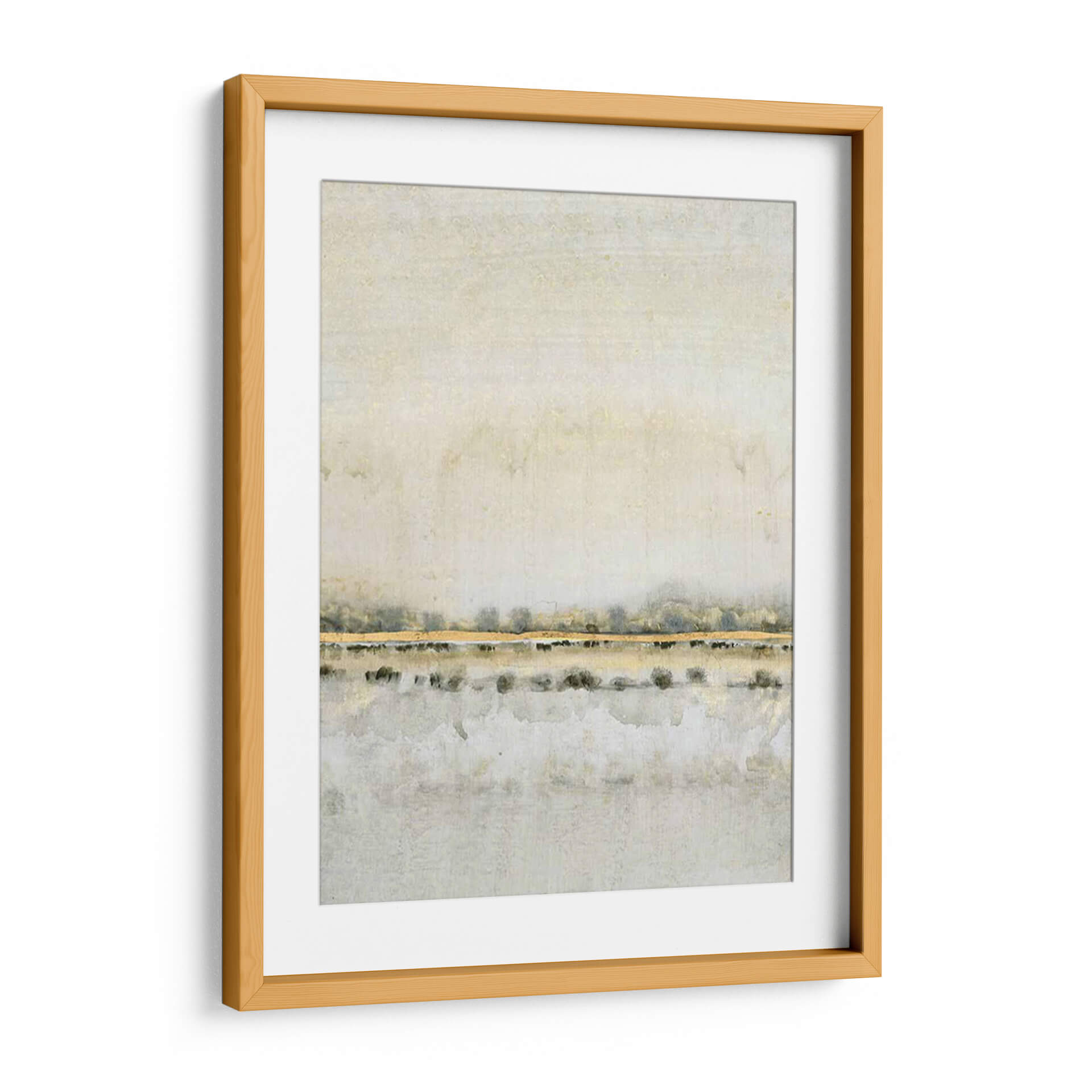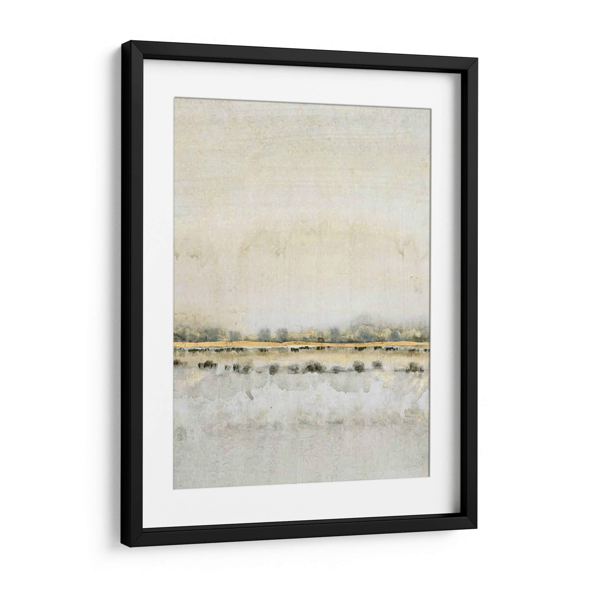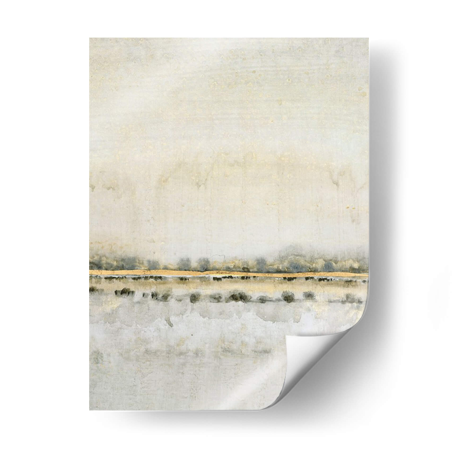 Sumérgete en la serenidad etérea de "Horizonte Dorado II", una obra de arte contemporáneo que captura la sutileza de un paisaje al amanecer o atardecer. El artista Tim O'Toole utiliza una paleta de colores suaves, dominada por tonos grises pálidos, cremas y toques sutiles de dorado y ocre, creando una atmósfera de calma y reflexión. La composición, con sus líneas horizontales y la presencia de una banda dorada distintiva, evoca la vastedad de un horizonte sobre un cuerpo de agua tranquilo, reflejando la escena con delicadeza. Las texturas sutiles y las pinceladas evocan un estilo abstracto y atmosférico, perfecto para quienes buscan añadir un toque de sofisticación minimalista a su hogar u oficina. Este cuadro decorativo es ideal para espacios que buscan un punto focal sereno pero intrigante, aportando una sensación de paz y elegancia atemporal. Su diseño abstracto permite que se integre armoniosamente en diversas decoraciones, desde interiores modernos hasta ambientes más tradicionales, invitando a la contemplación y al disfrute visual.